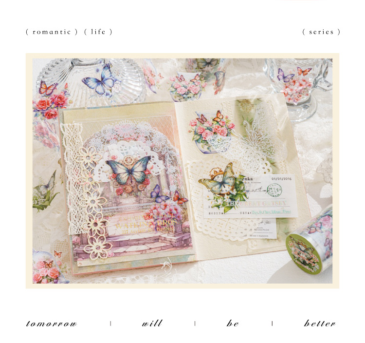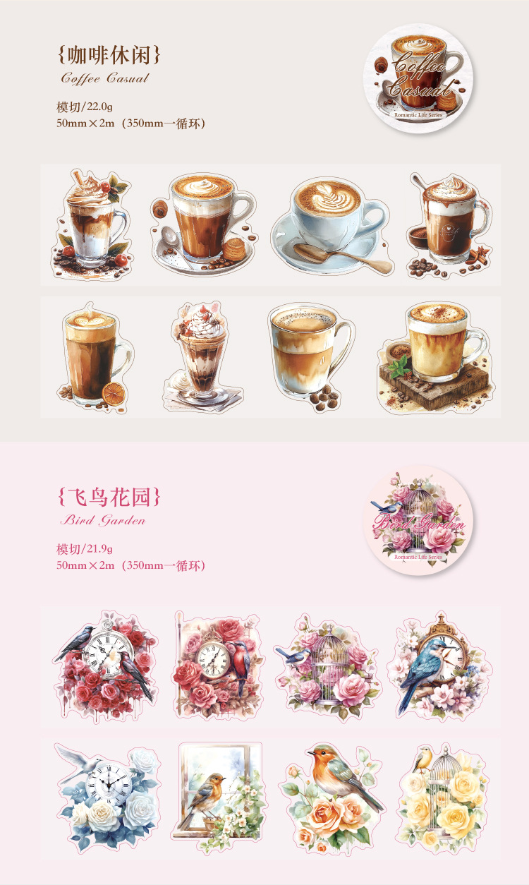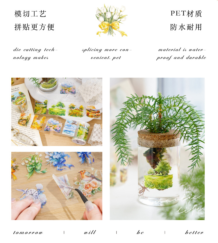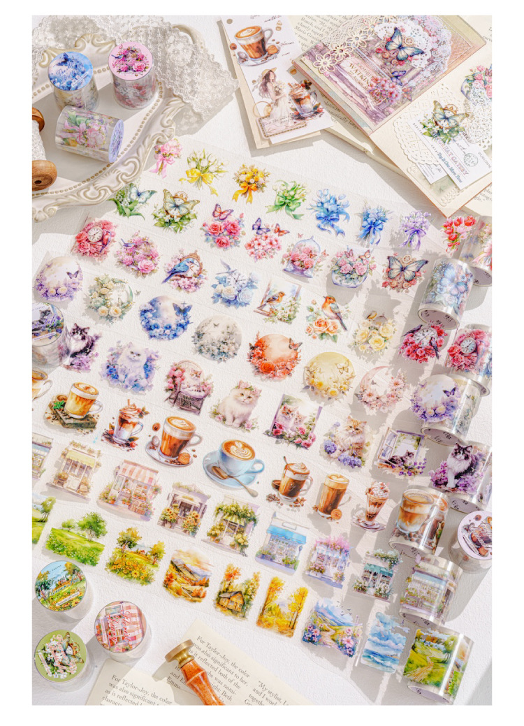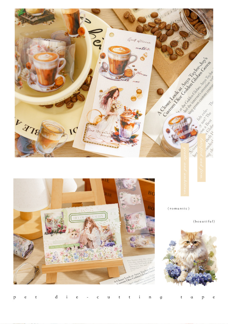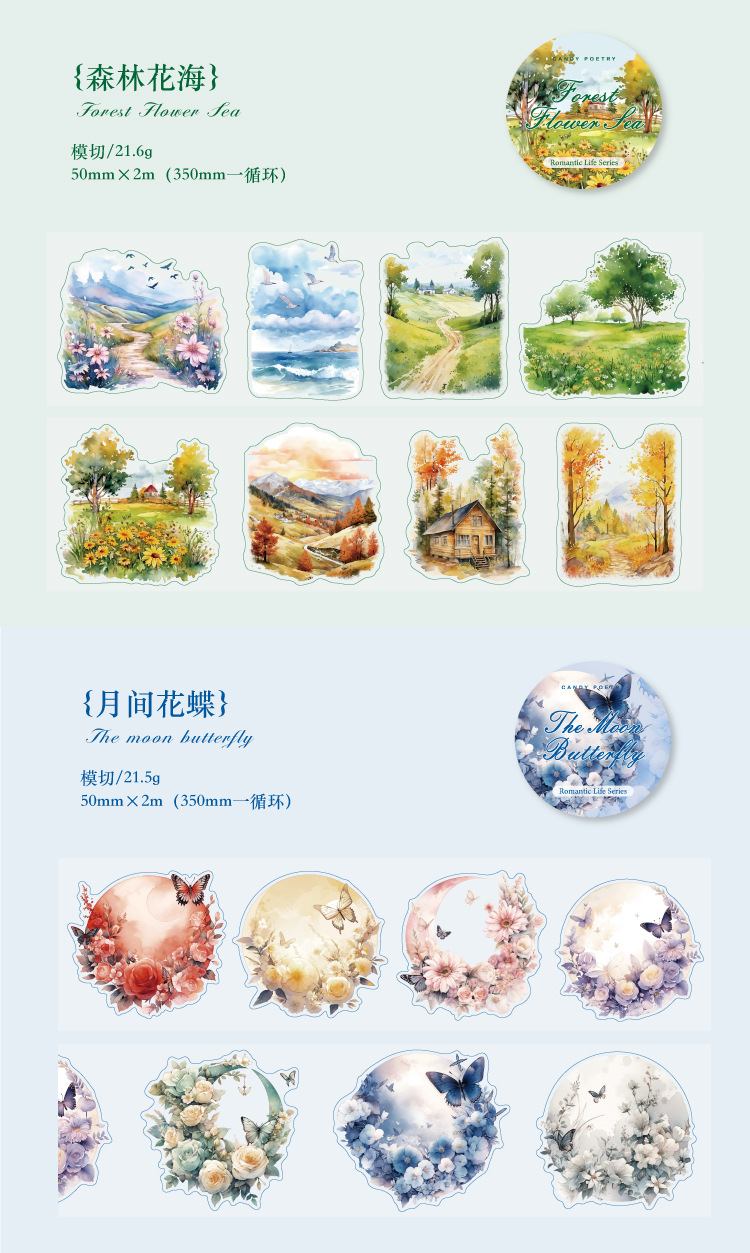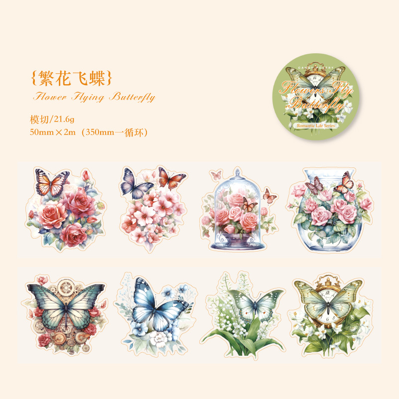 설탕 시 모양의 PET 테이프 로맨틱 라이프 시리즈 핸드북 DIY 장식 콜라주 식물 베이스 소재 8 스타일스토어 가기