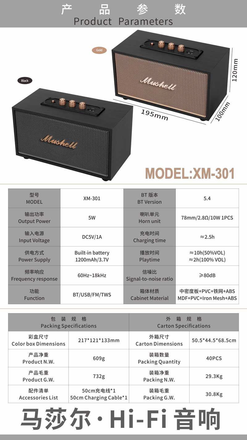 국경 간 도매 XM-301 레트로 블루투스 스피커 나무 휴대용 hifi 오디오 홈 야외 서브 우퍼스토어 가기