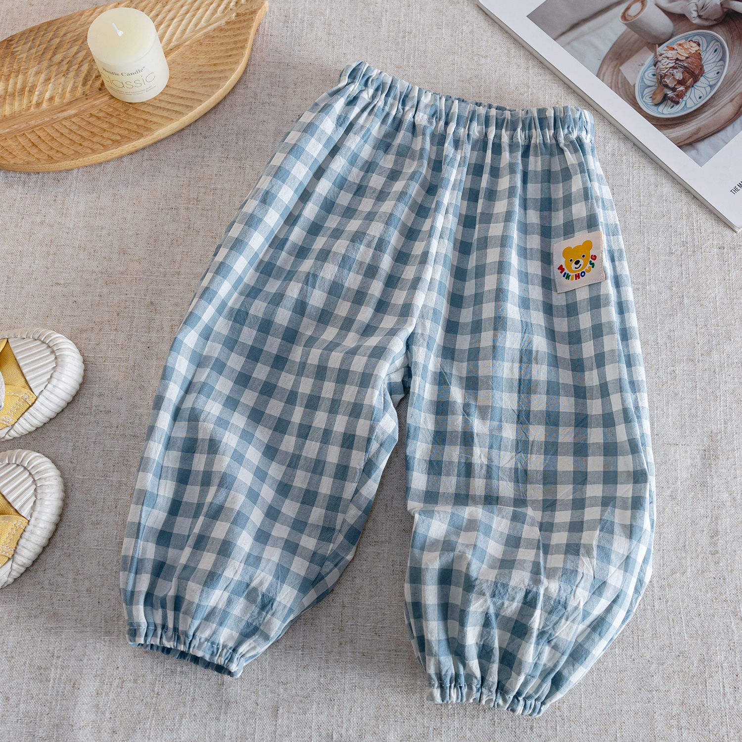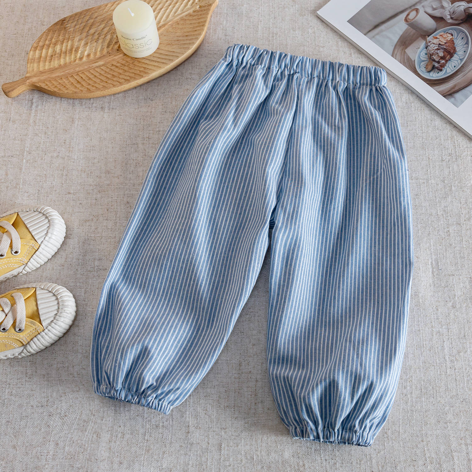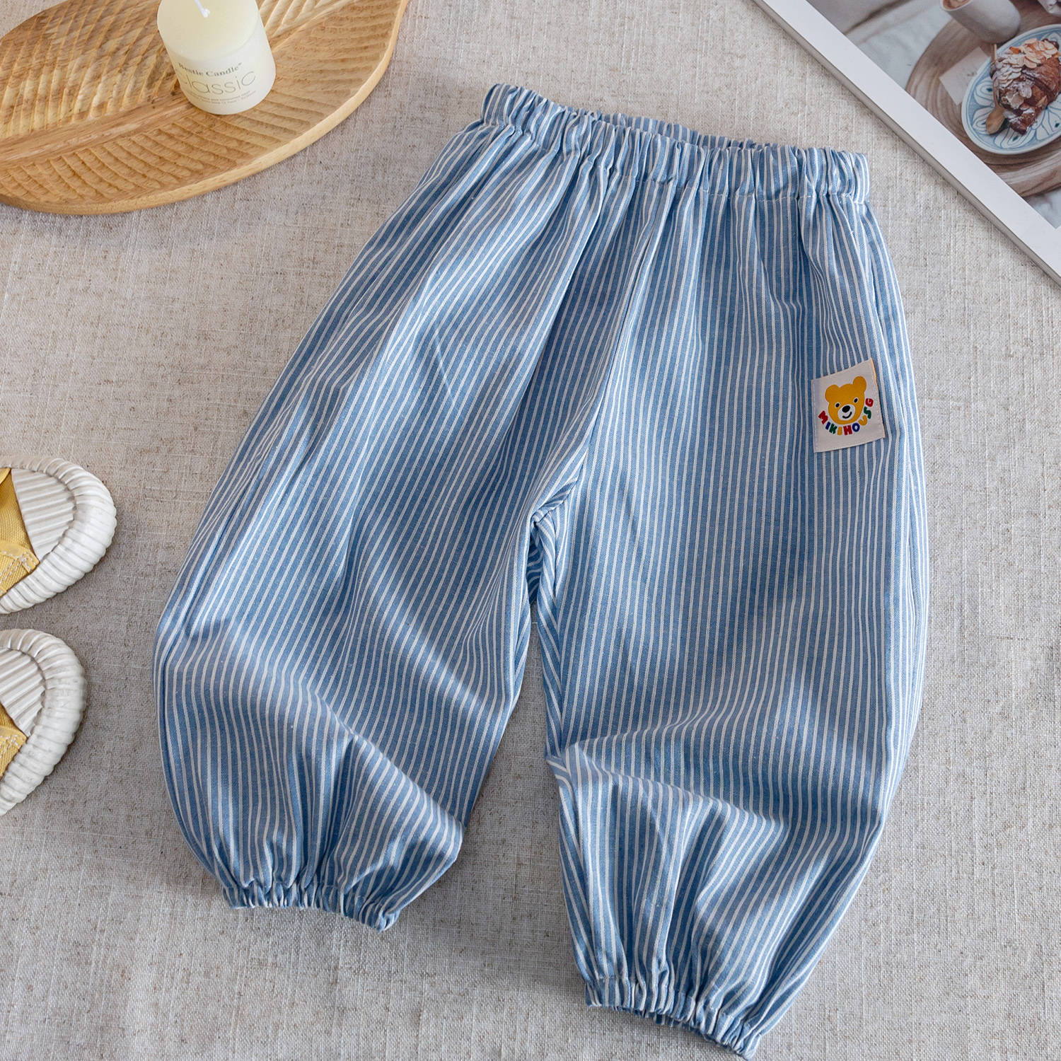 아동용 바지 여름 얇은 소년 캐주얼 바지 일본 만화 다목적 줄무늬 격자 무늬 모기 방지 바지 아기 바지