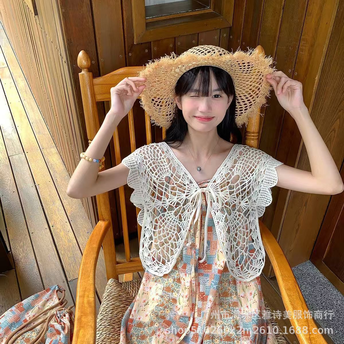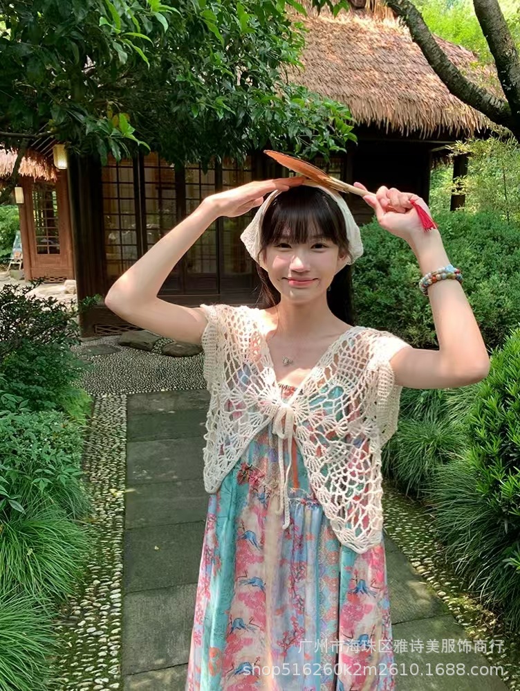 여름 새로운 달콤하고 다재다능한 디자인 조끼 여성의 느슨하고 상쾌한 나비 직조 중공 틈새 탑스토어 가기