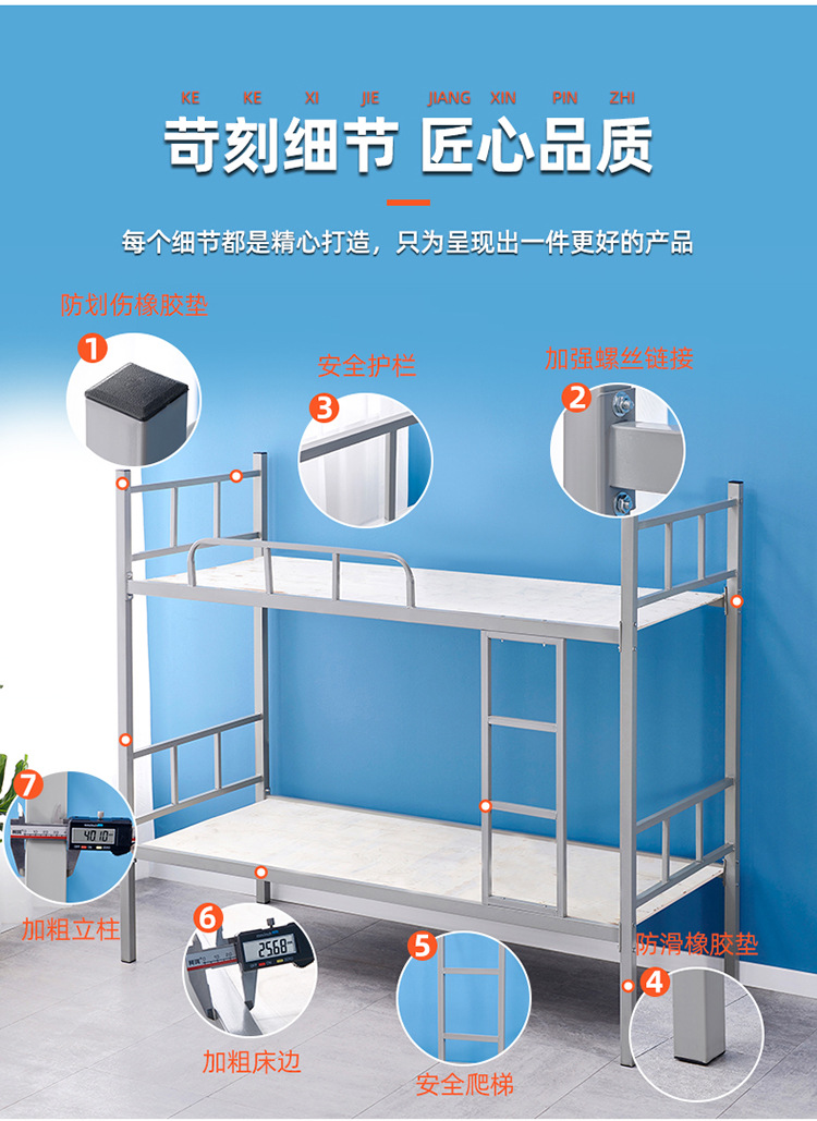 2층 철제 침대, 직원 기숙사 침대, 2층 싱글 학생용 하이 및 로우 침대, 2층 철제 프레임 침대, 철제 건설 현장 두꺼워짐