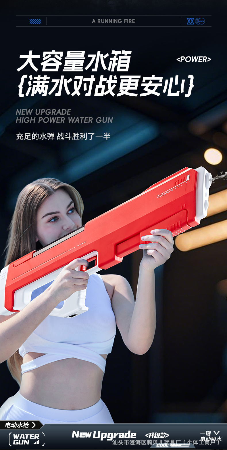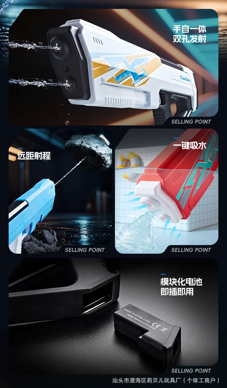 새로운 국경 간 흡수성 장난감 물총 자동 전기 연속 발사 어린이 해변 물 장난감 총