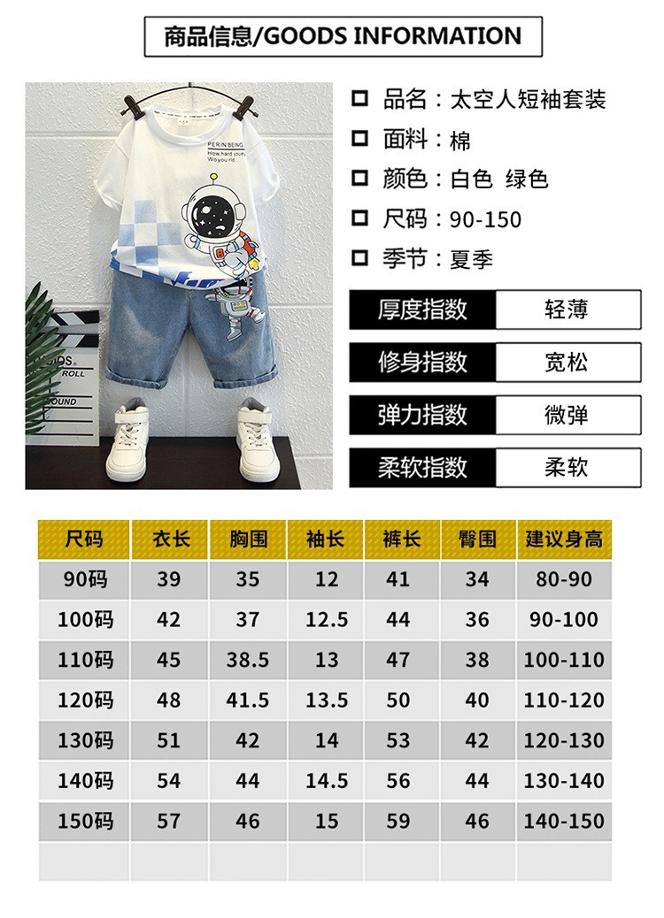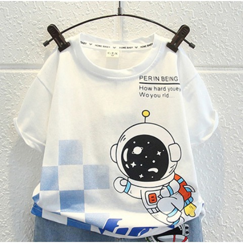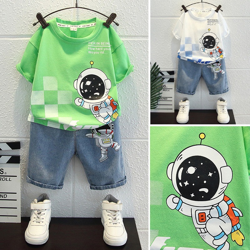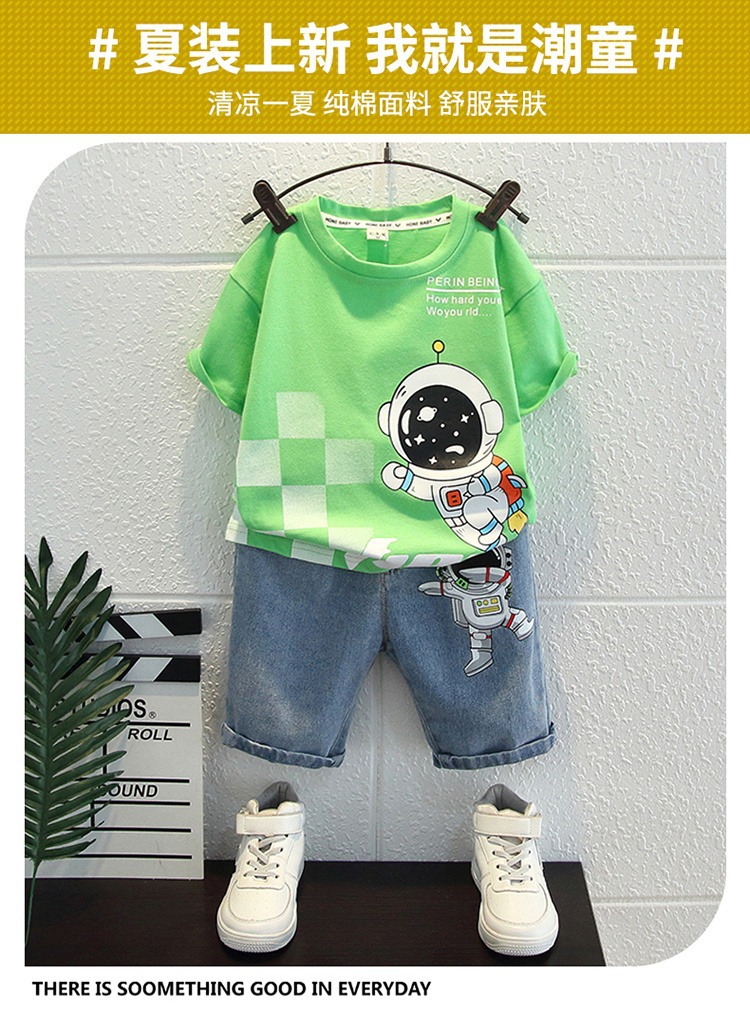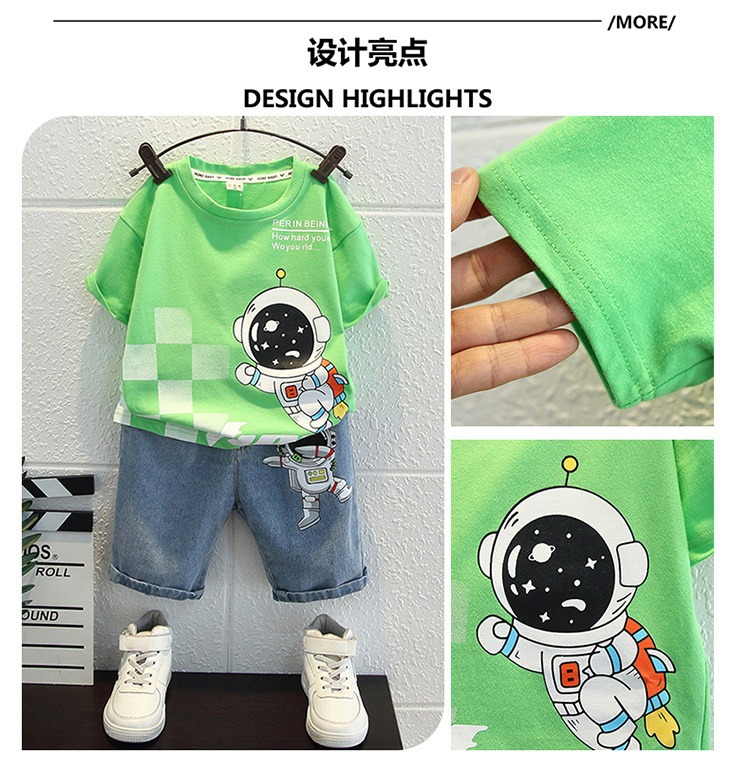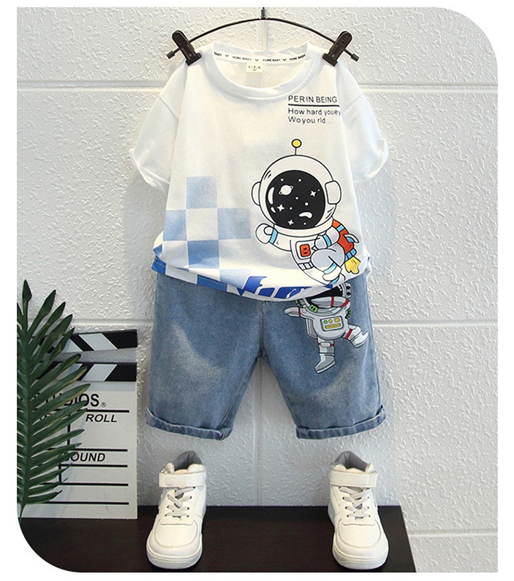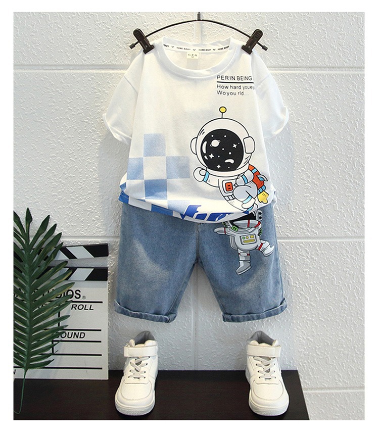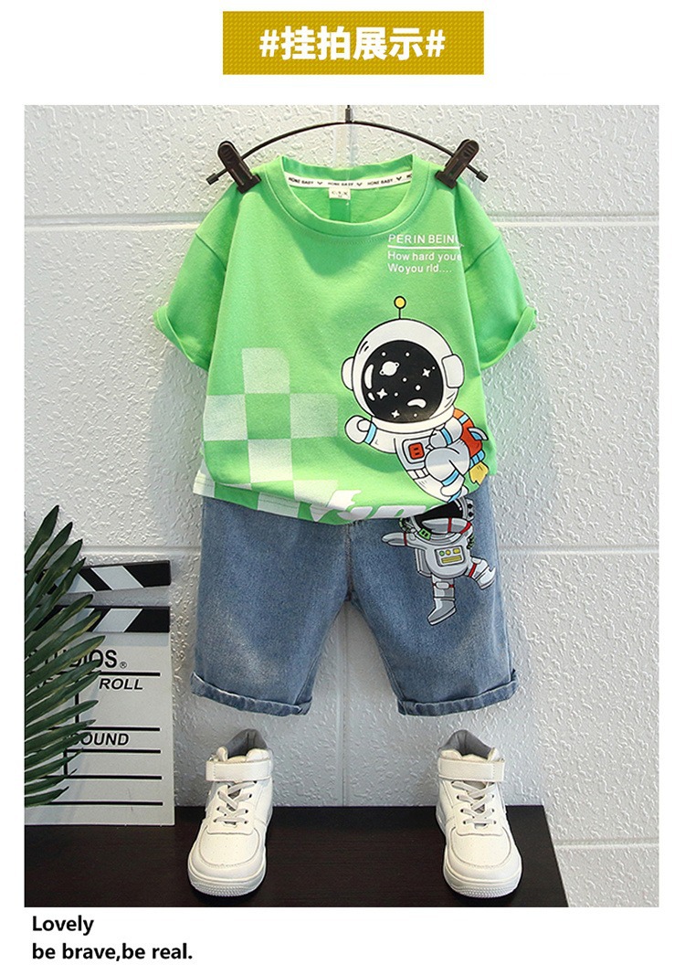 어린이 여름 소년 반팔 반바지 통기성 투피스 스포츠 및 레저 라운드 넥 우주 비행사 맞춤형 티셔츠 세트스토어 가기