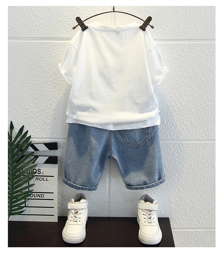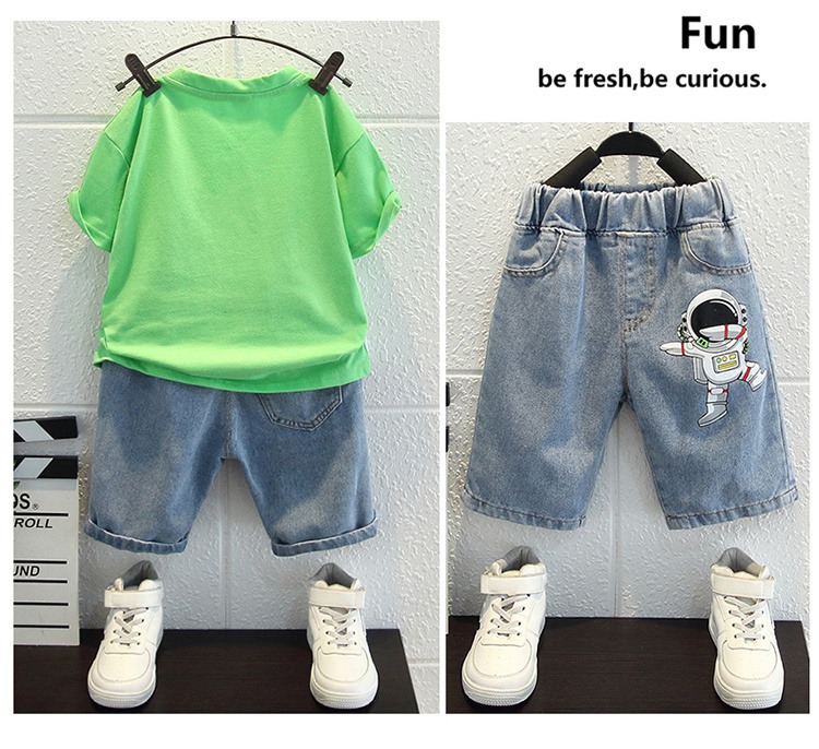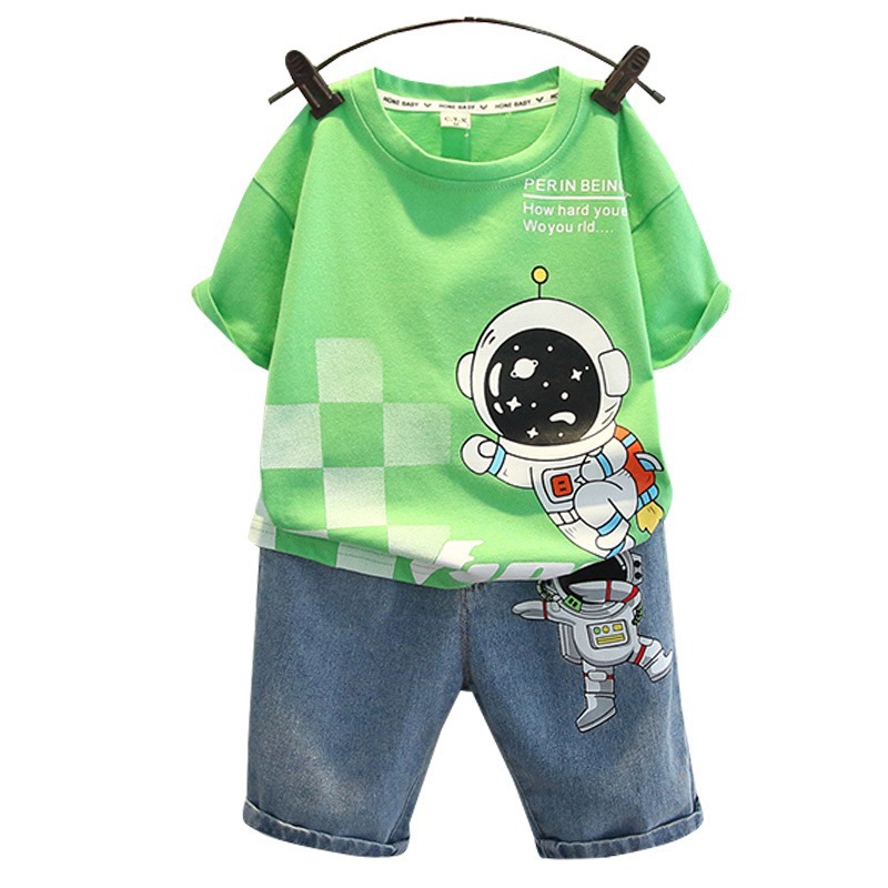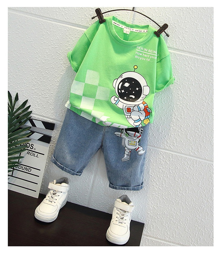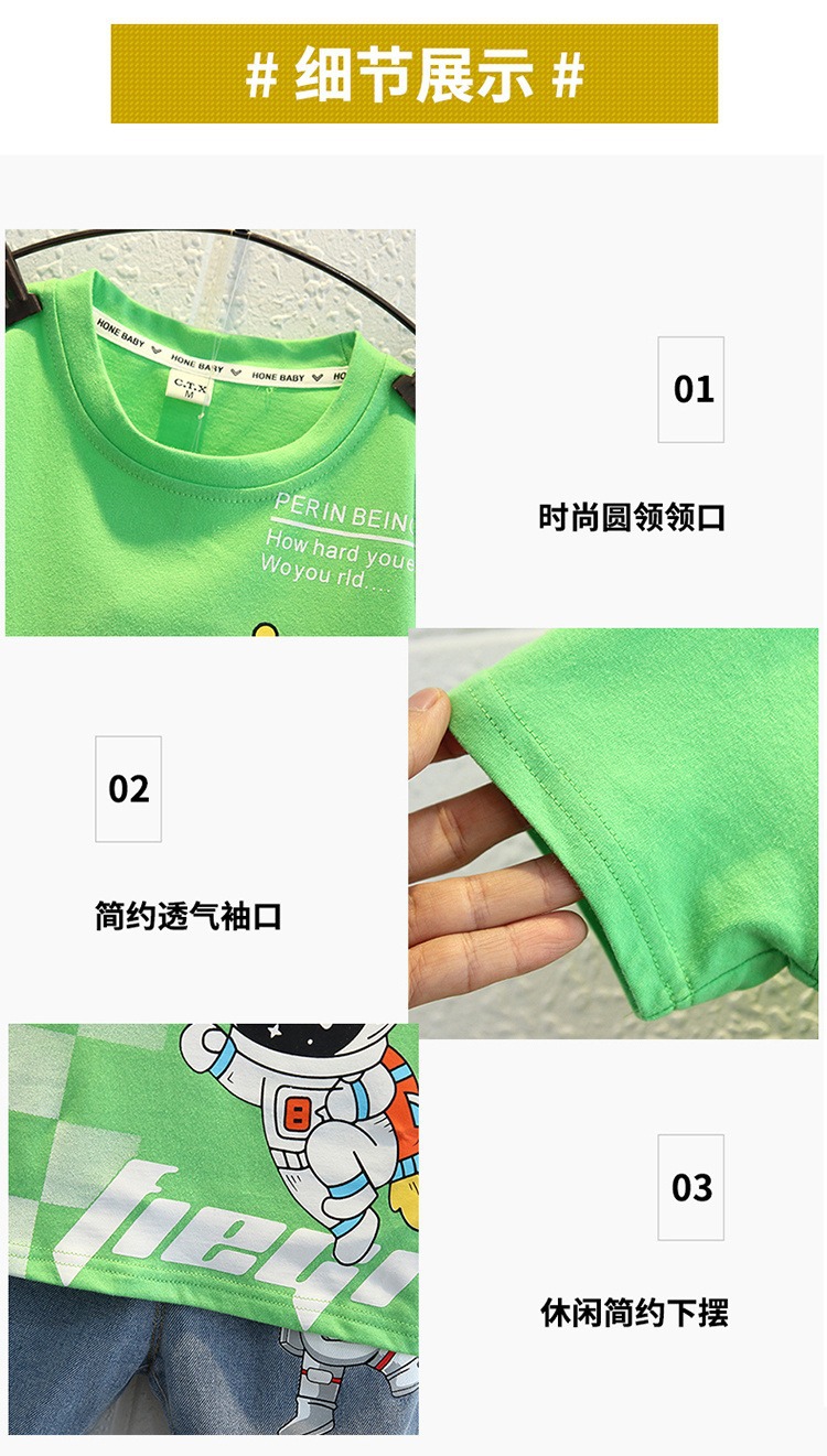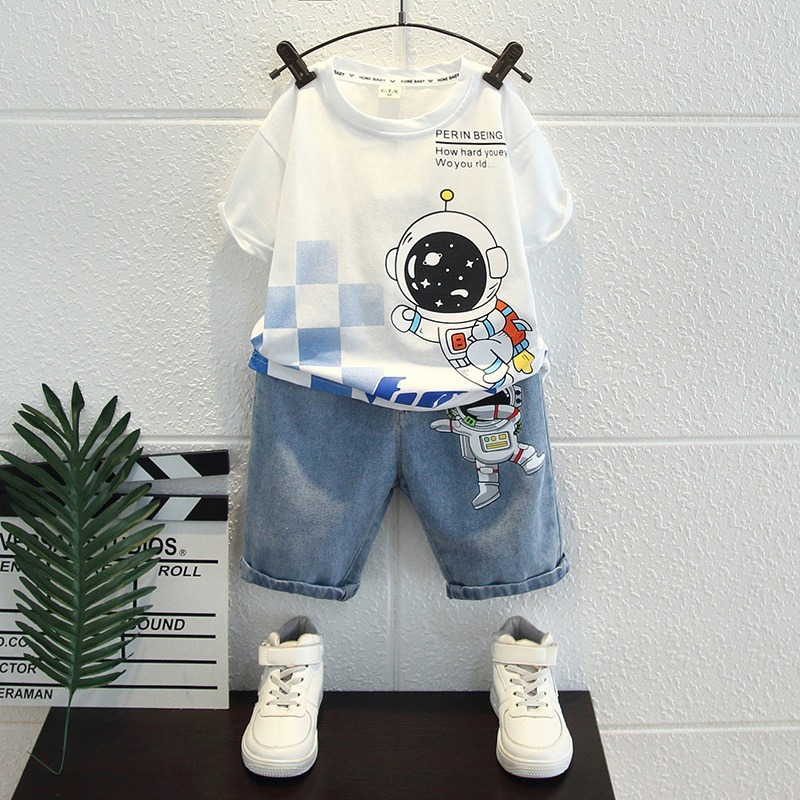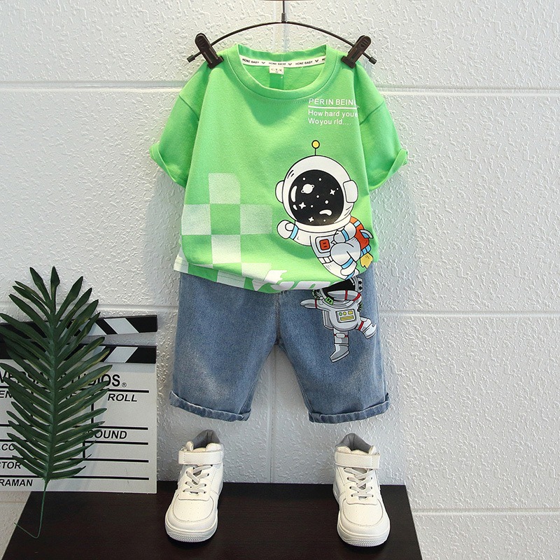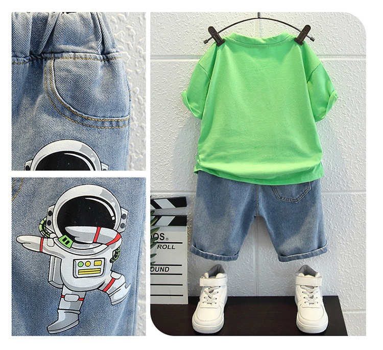 어린이 여름 소년 반팔 반바지 통기성 투피스 스포츠 및 레저 라운드 넥 우주 비행사 맞춤형 티셔츠 세트스토어 가기