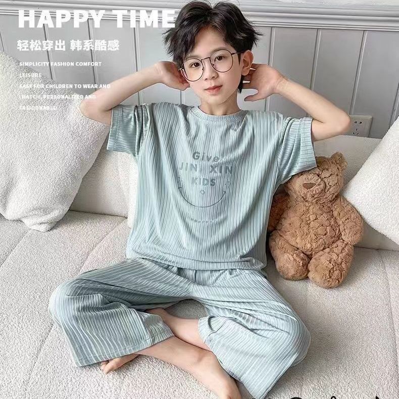 • 남아용 스마일리 얼음 실크 잠옷 8X5 세트 [라이트 블루]