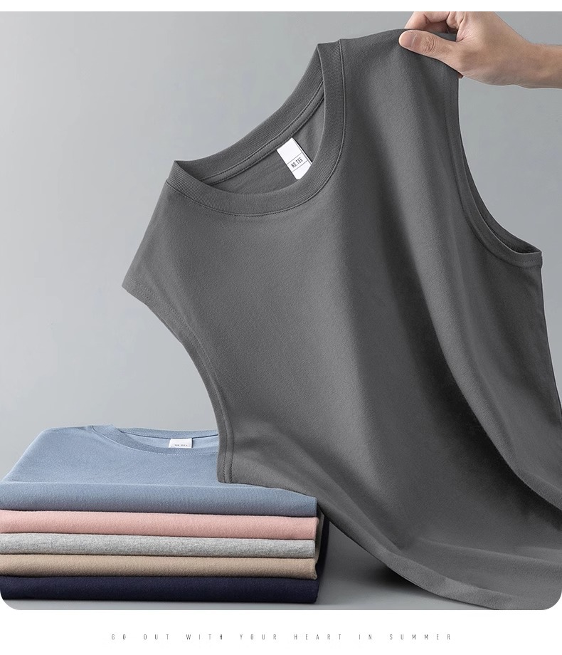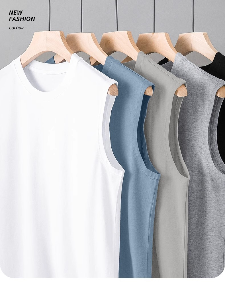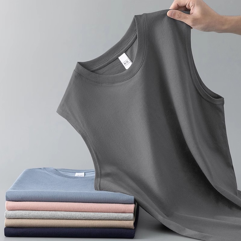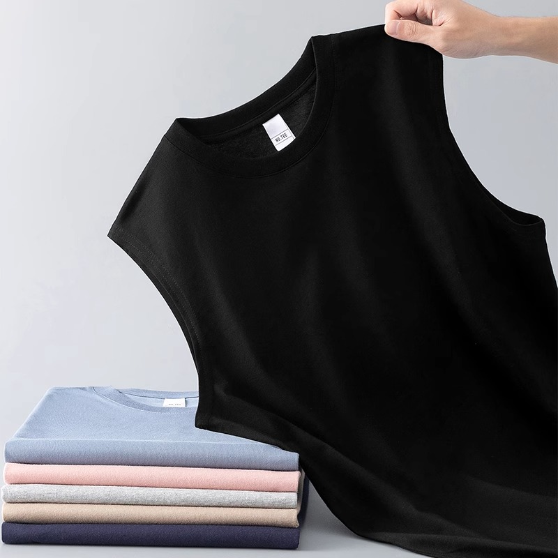 순수 코튼 민소매 티셔츠 남성 스포츠 조끼 여름 얇은 느슨한 겉옷 농구 장애물 조끼 넓은 어깨 피트니스스토어 가기