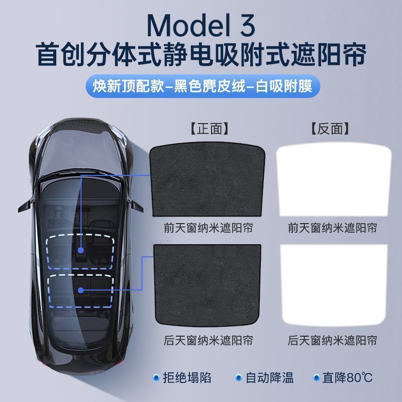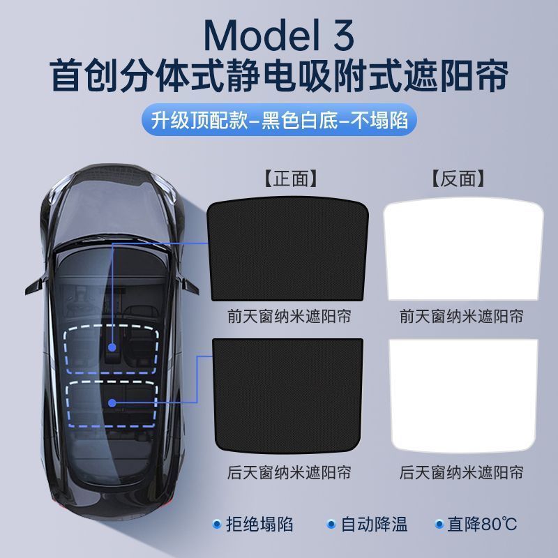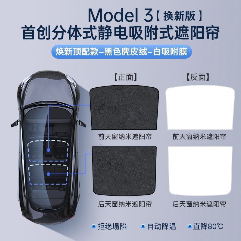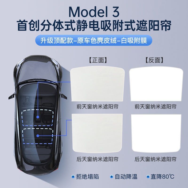 Tesla modely sunshade에 적합 새 버전 model3 스웨이드 정전기 흡착 선 루프 태양 보호 및 단열