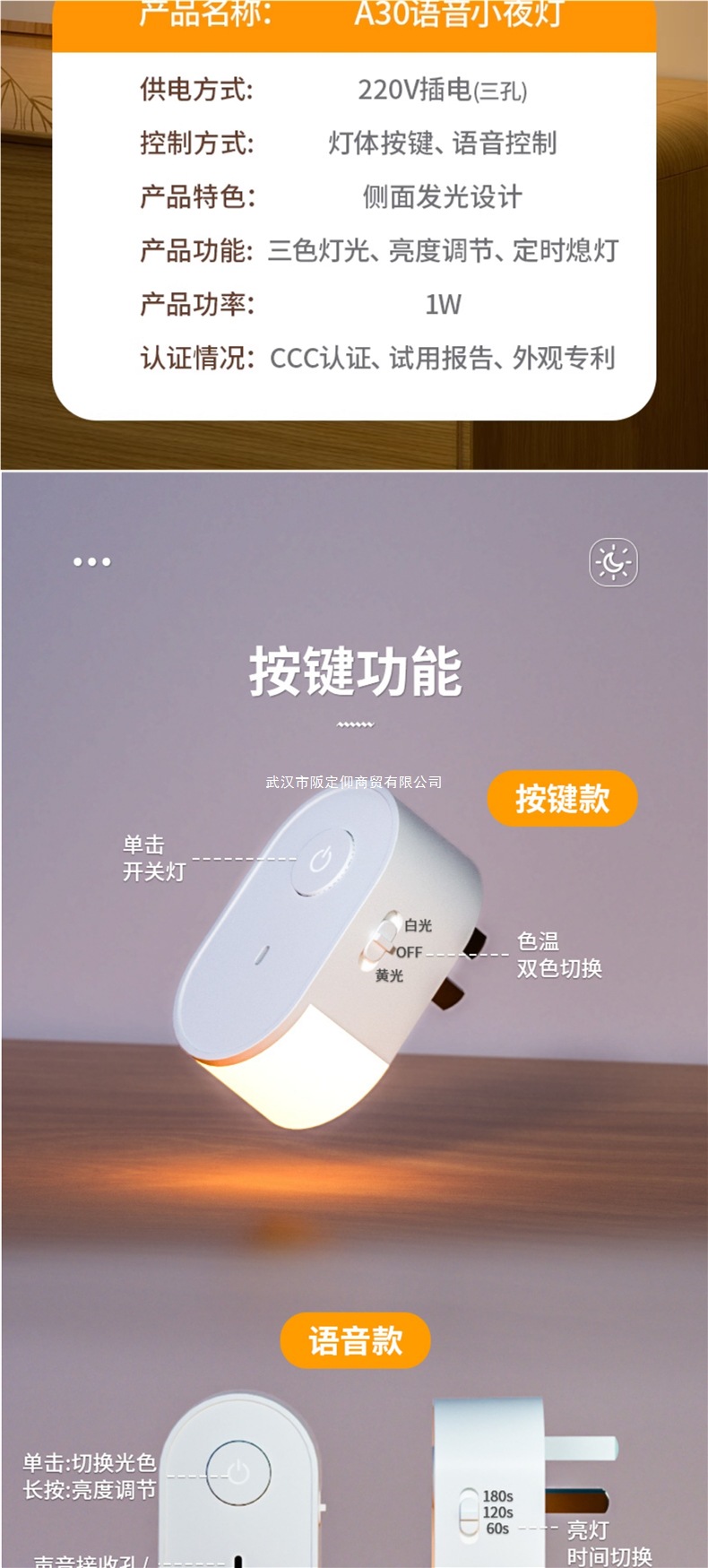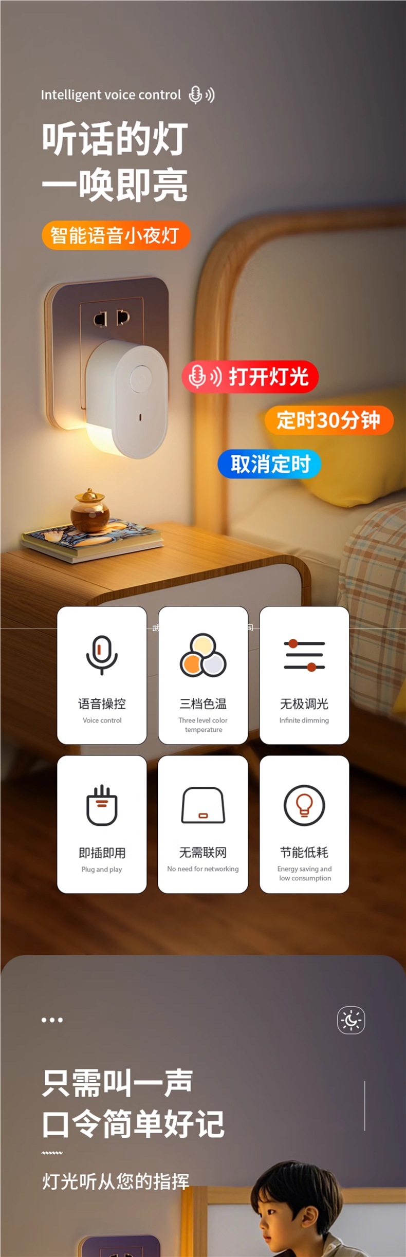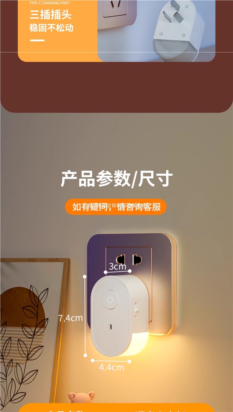 아기와 어린이 수유를 위한 침대 옆 지능형 음성 야간 조명, 눈 보호, 침실 수면, 약한 조명, 야간 음성 제어 플러그인 조명스토어 가기