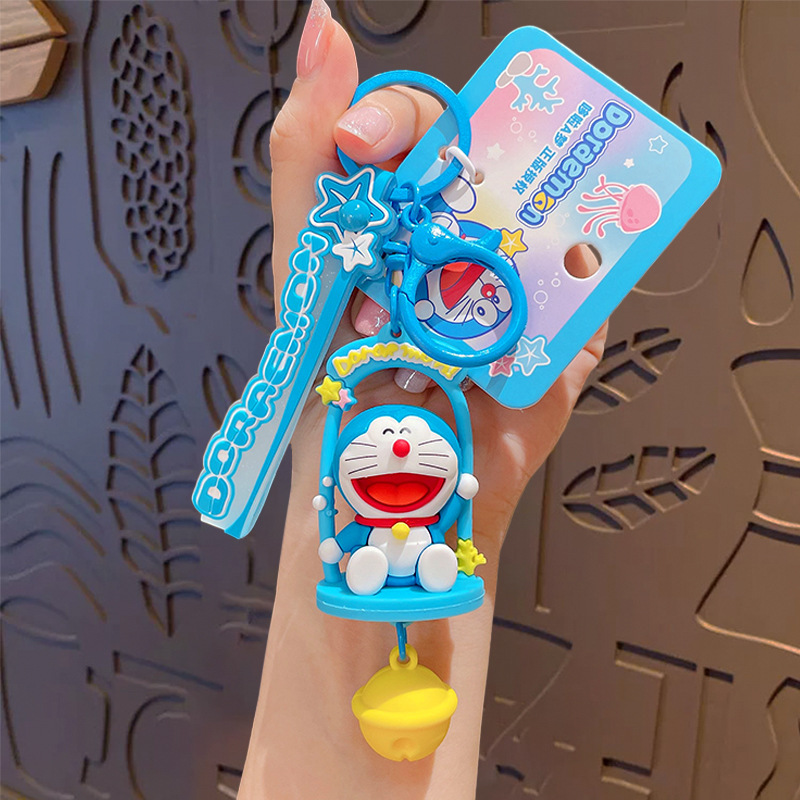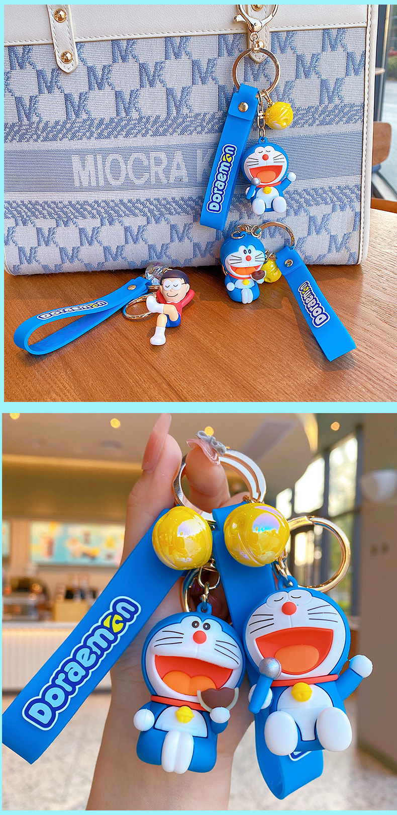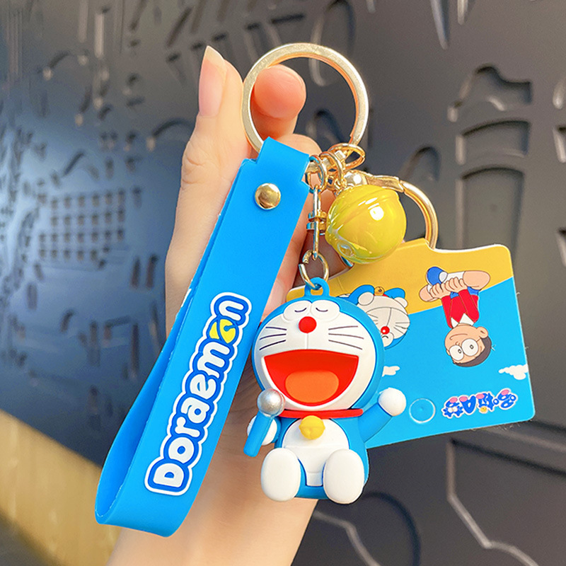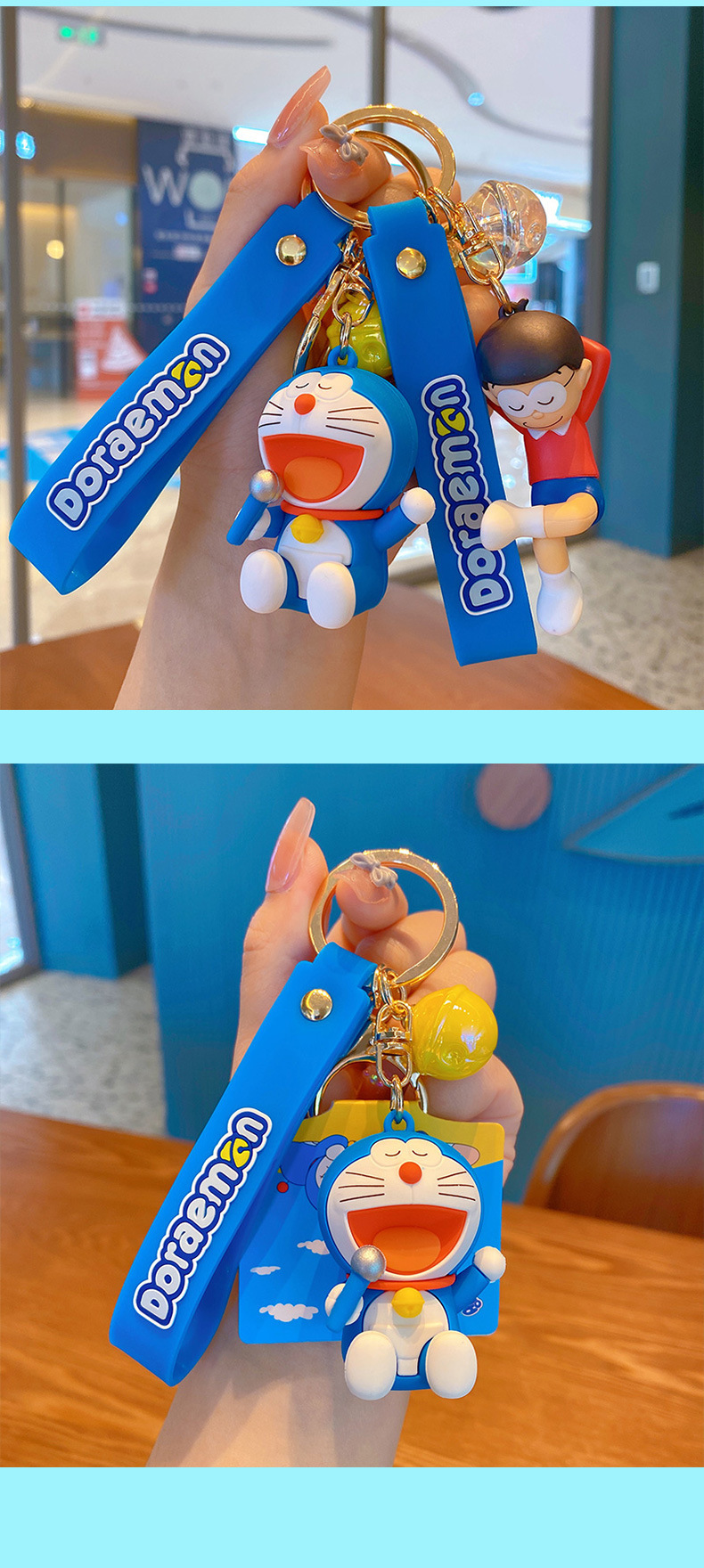 정품 만화 도라에몽 키 체인 펜던트 귀여운 자동차 열쇠 고리 가방 징글 고양이 인형 선물 도매