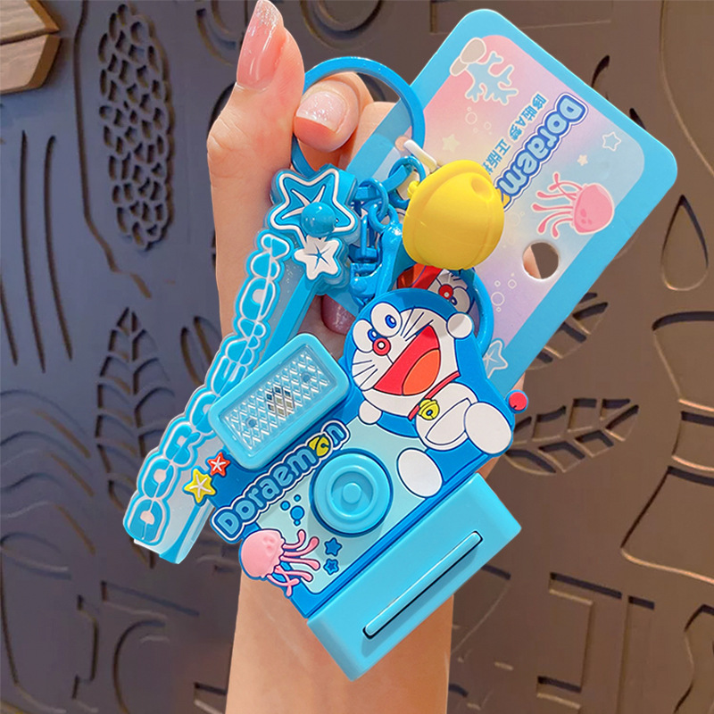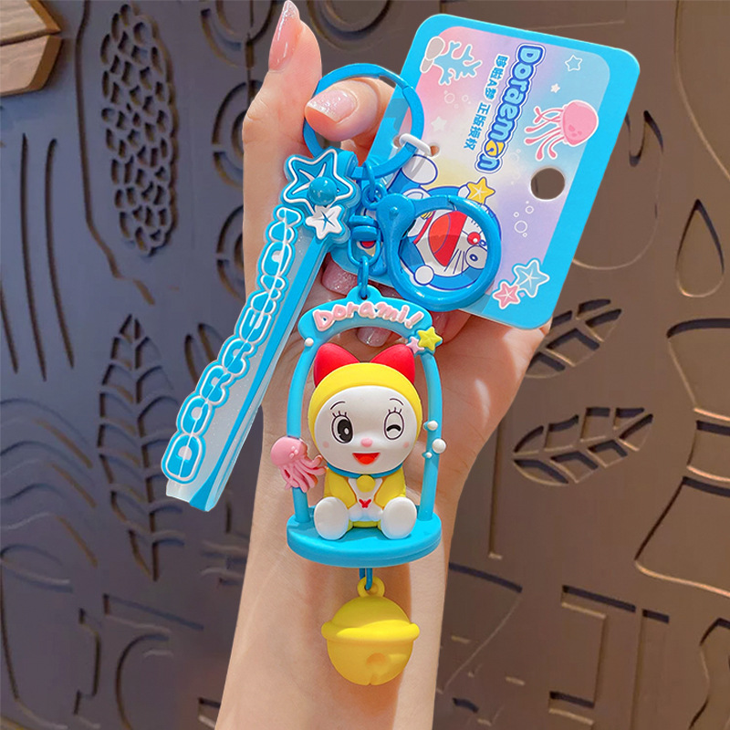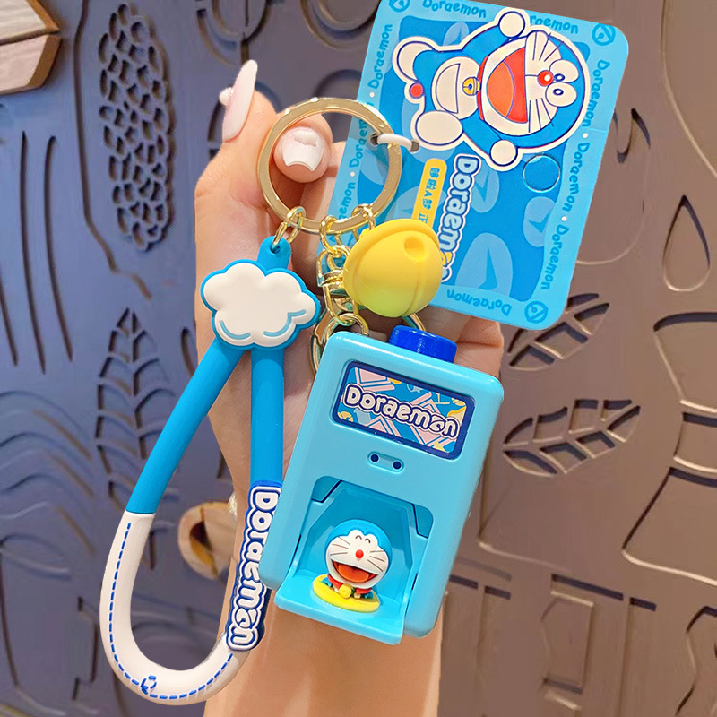 정품 만화 도라에몽 키 체인 펜던트 귀여운 자동차 열쇠 고리 가방 징글 고양이 인형 선물 도매스토어 가기