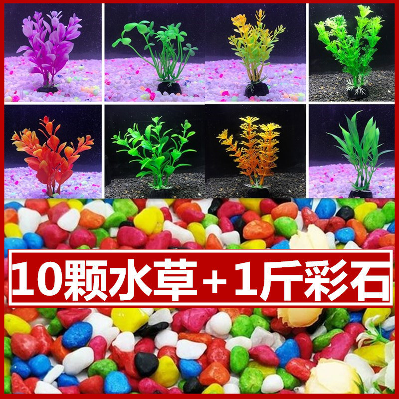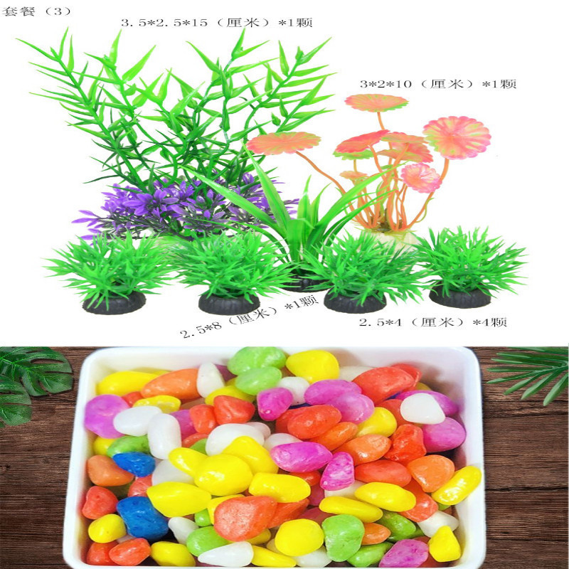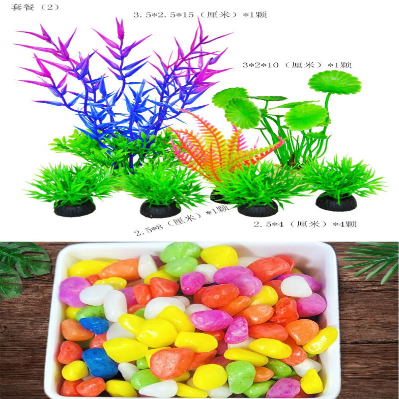 • 무작위 수생 식물 조합 패키지 + 1.0kg 다채로운 돌