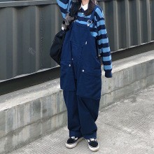 일본 복고풍 아미 카키색 점프 슈트 남성용 루즈한 서스펜더 작업복 여성용 트렌디 BF 스킬 점프 슈트스토어 가기