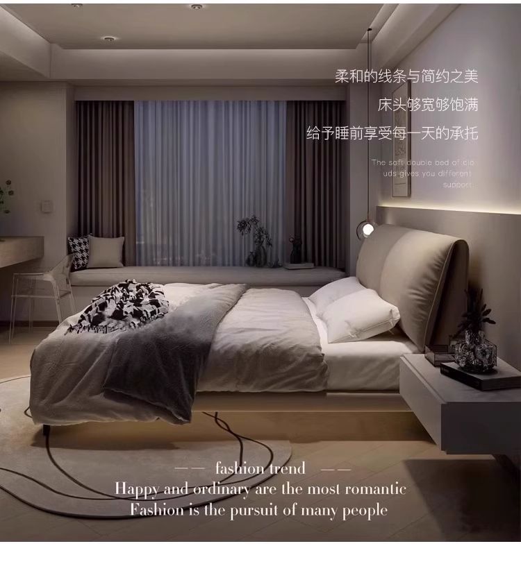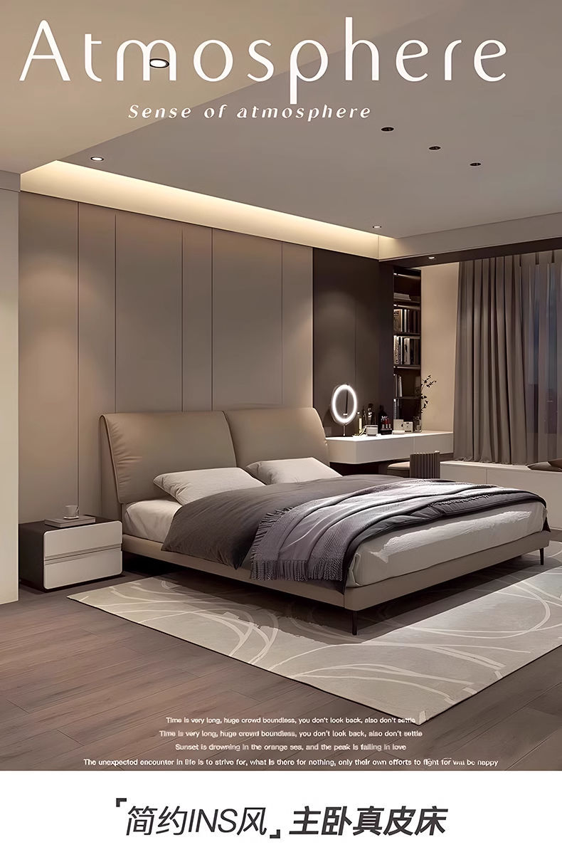 코끼리 귀 가죽 침대 라이트 럭셔리 1.8 더블 침대 모던 이탈리안 심플 마스터 침실 1.5 웨딩 침대 가죽 아트 침대스토어 가기