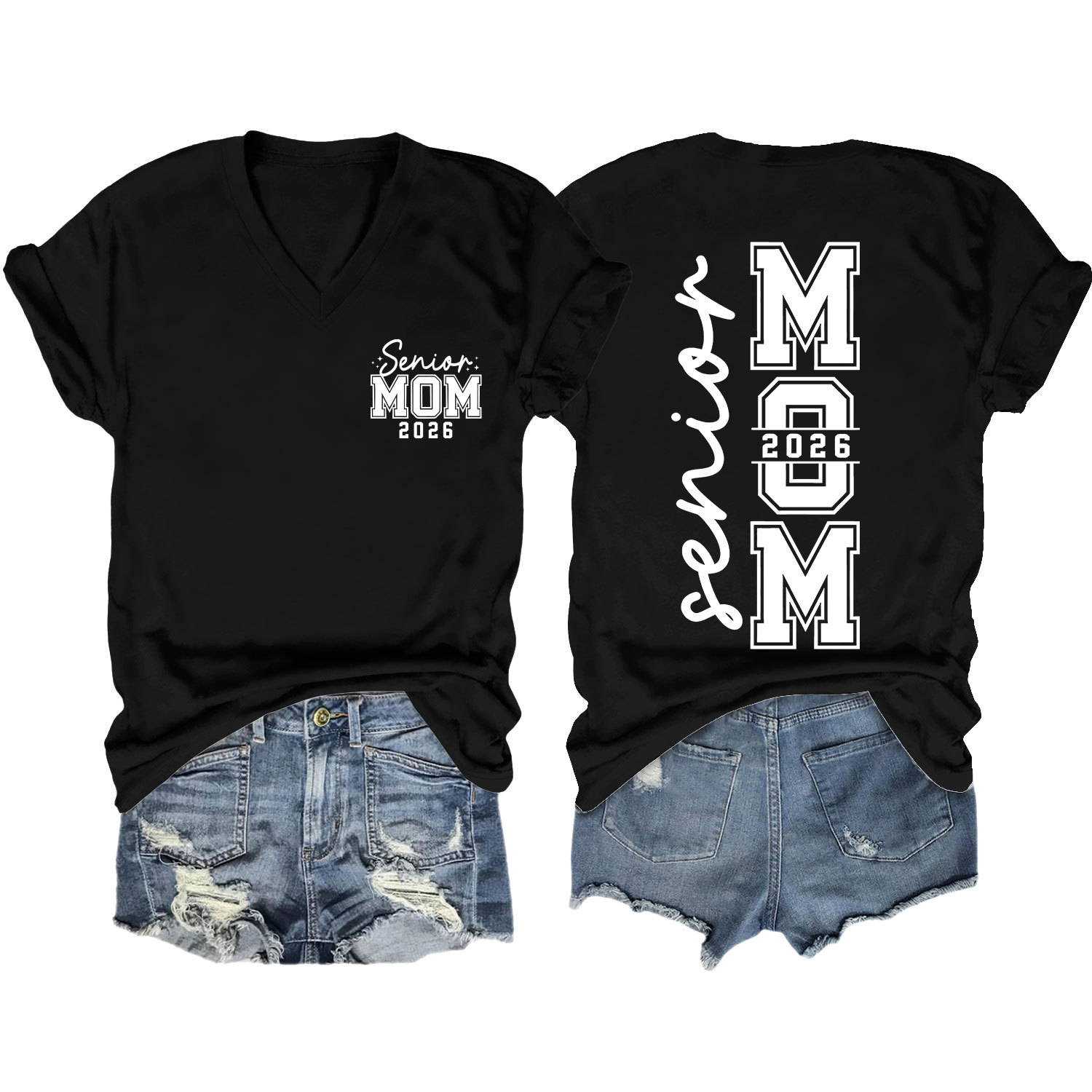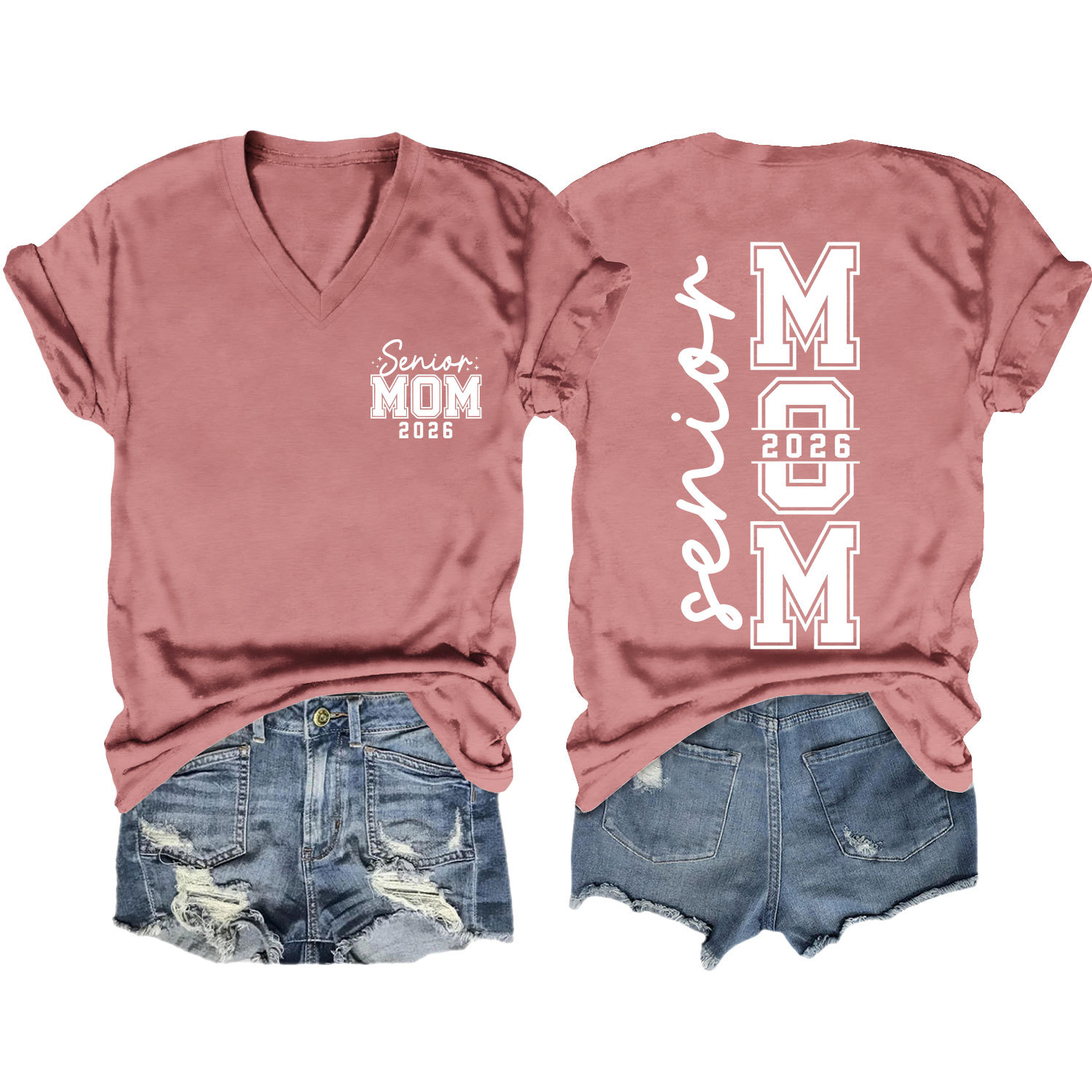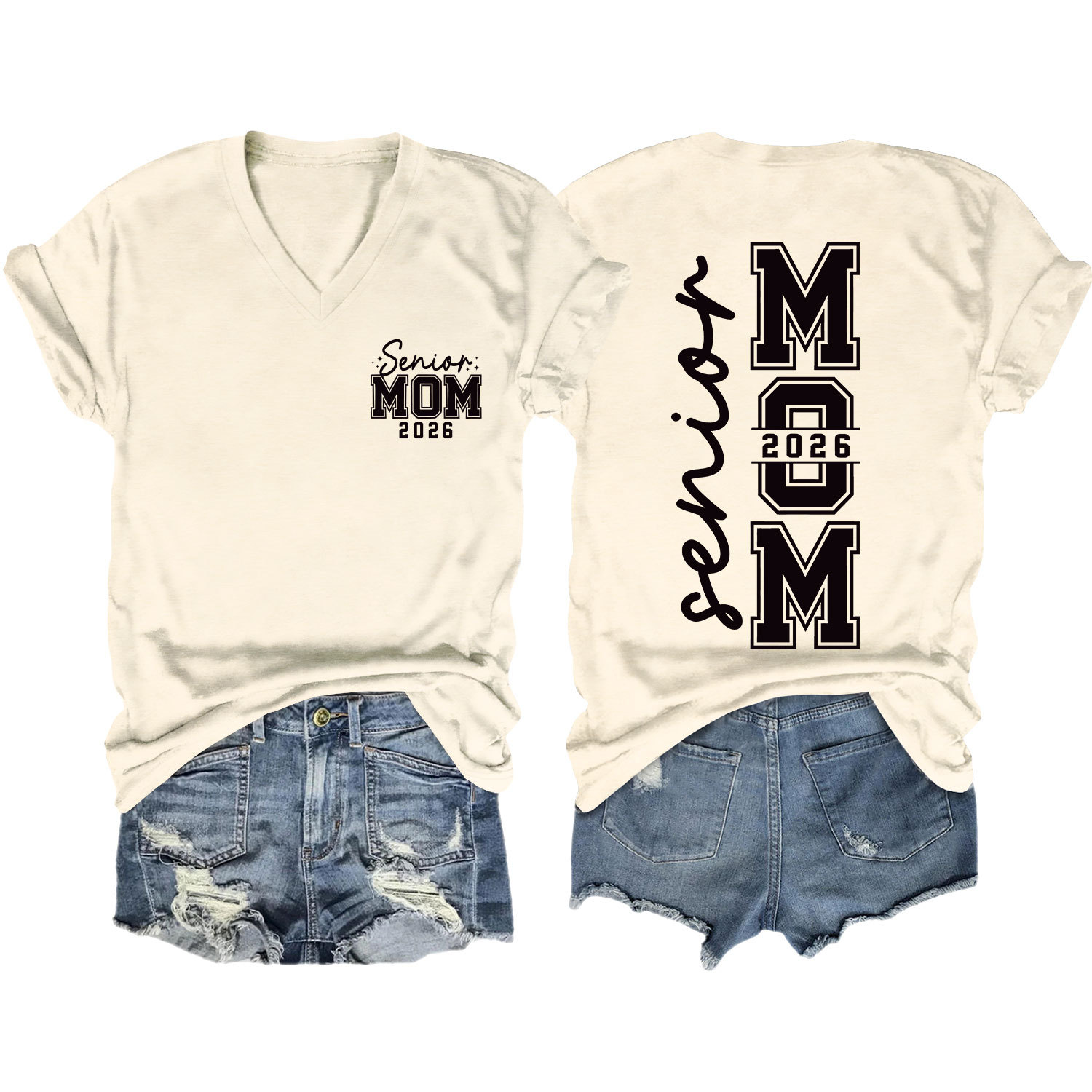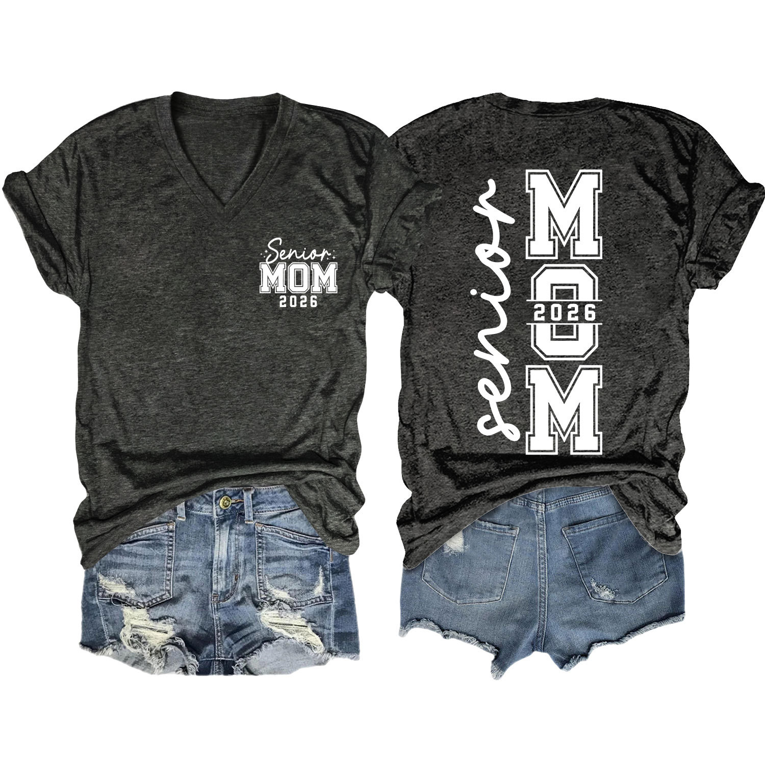 Amazon 캐주얼하고 다재다능한 여성용 이베이 독립 스테이션 시니어 엄마 2026 전면 및 후면 프린트 V 넥 반팔 티셔츠