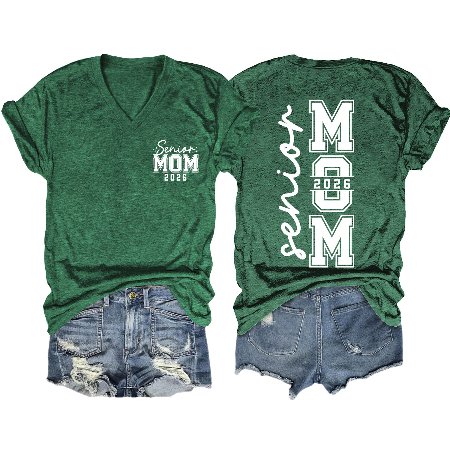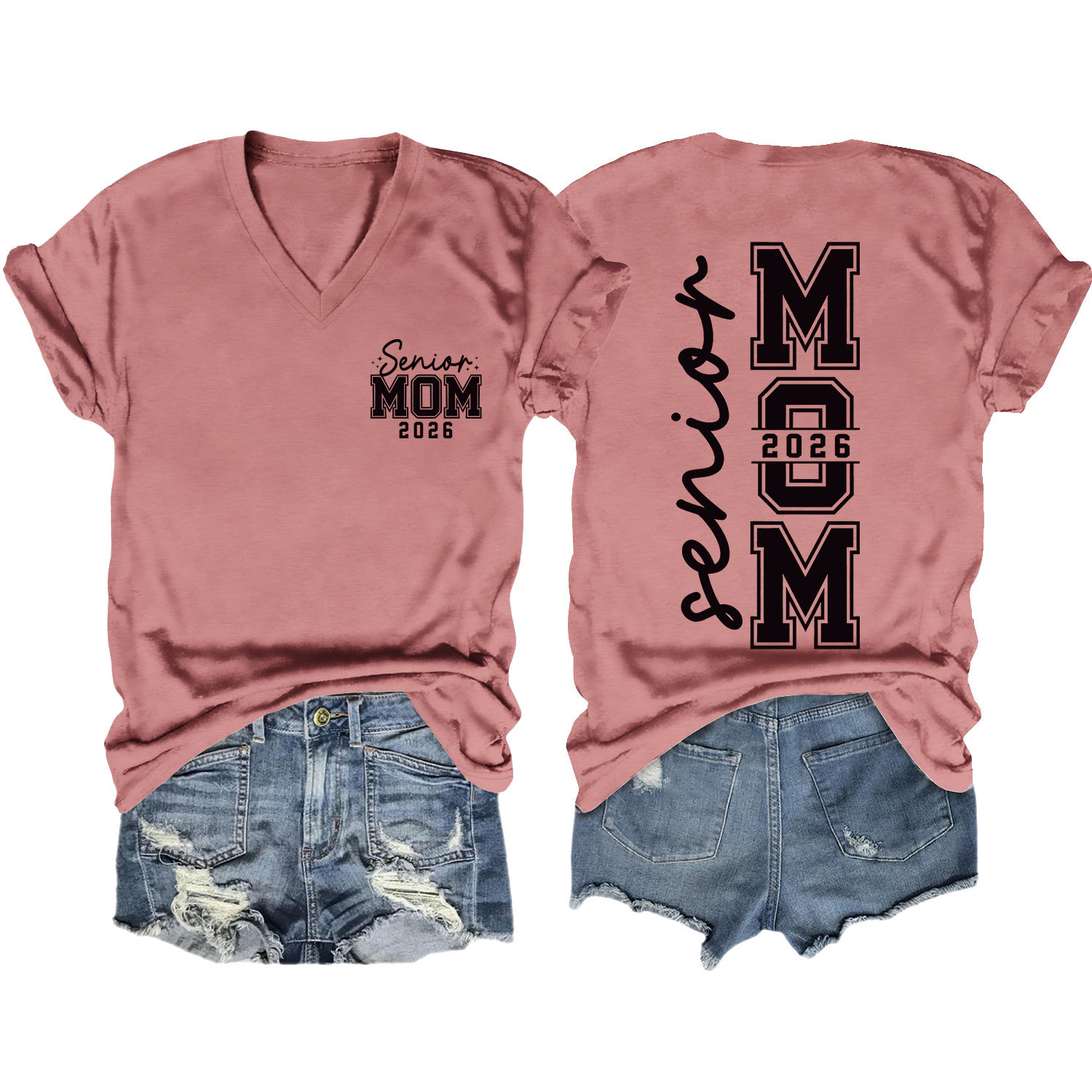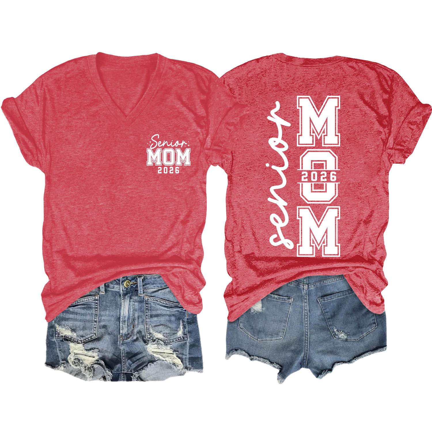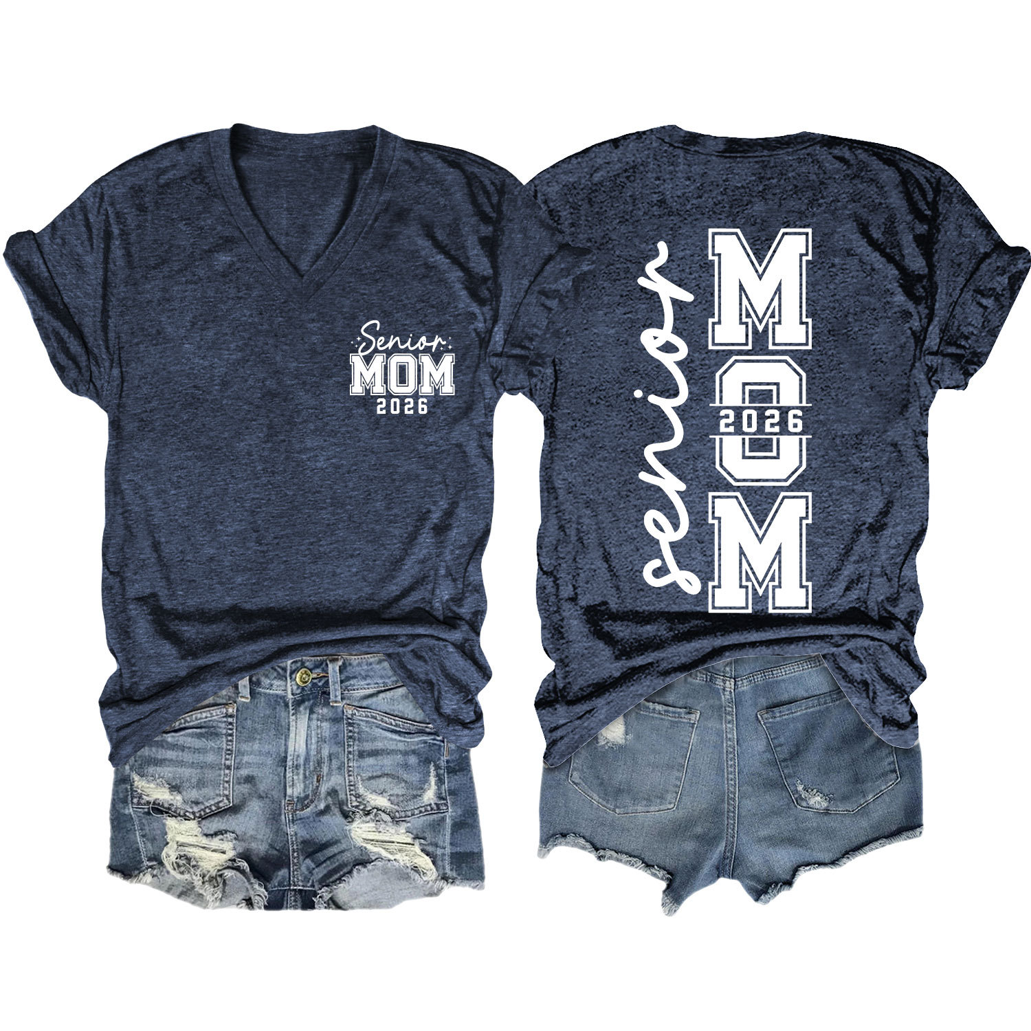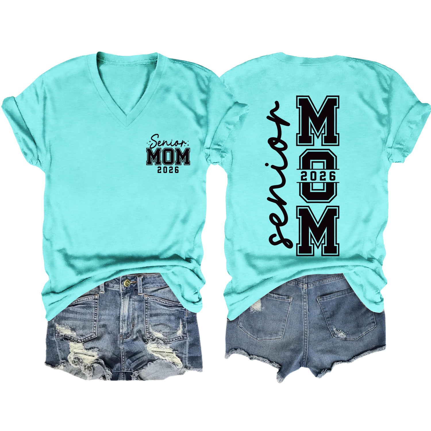 Amazon 캐주얼하고 다재다능한 여성용 이베이 독립 스테이션 시니어 엄마 2026 전면 및 후면 프린트 V 넥 반팔 티셔츠