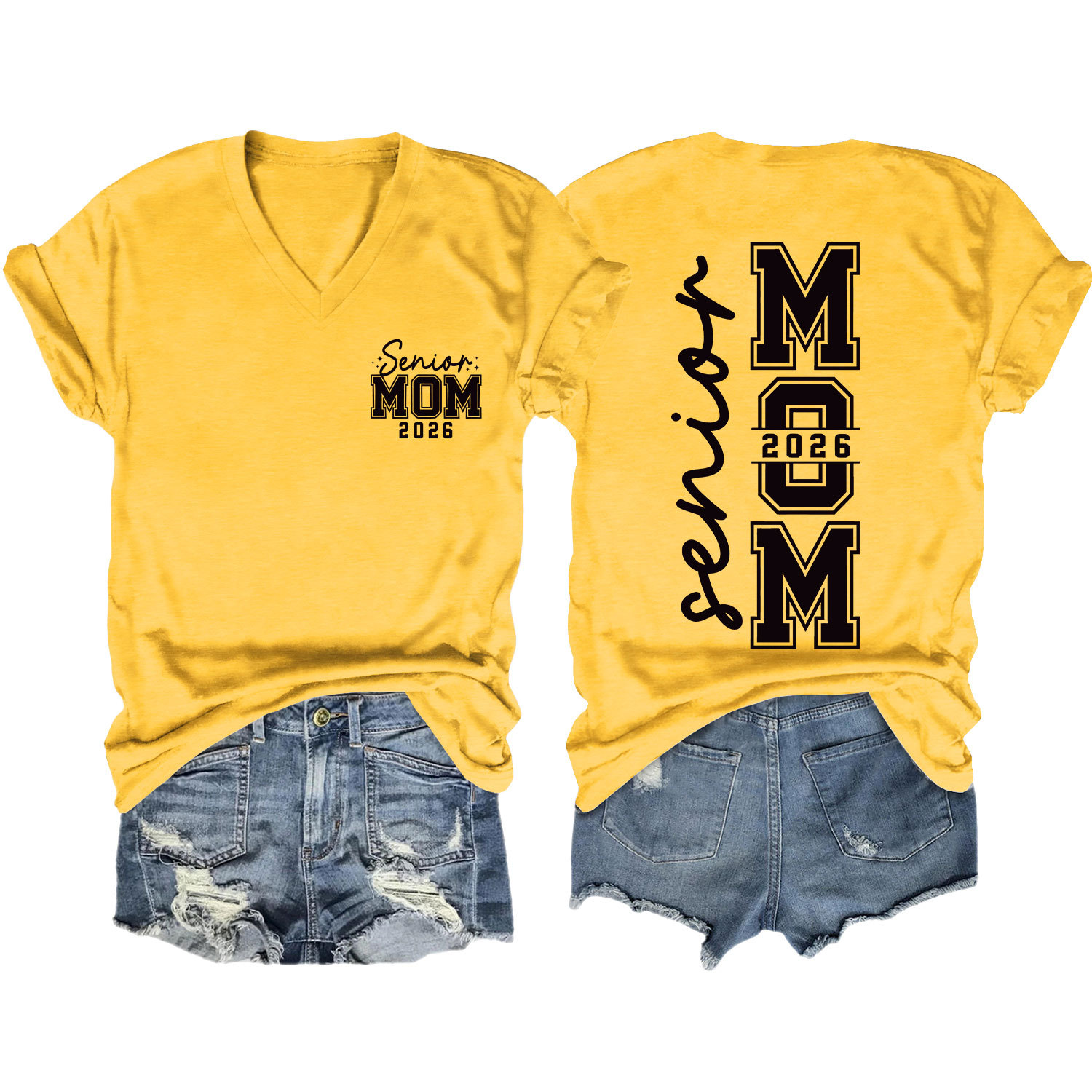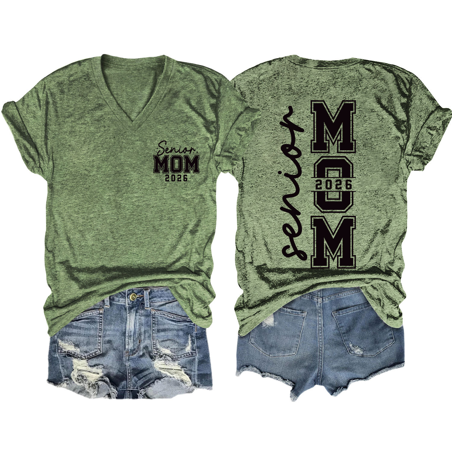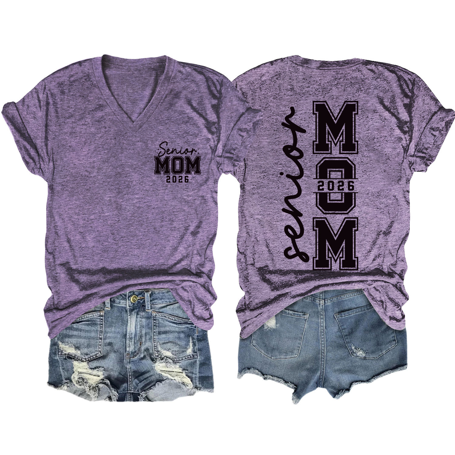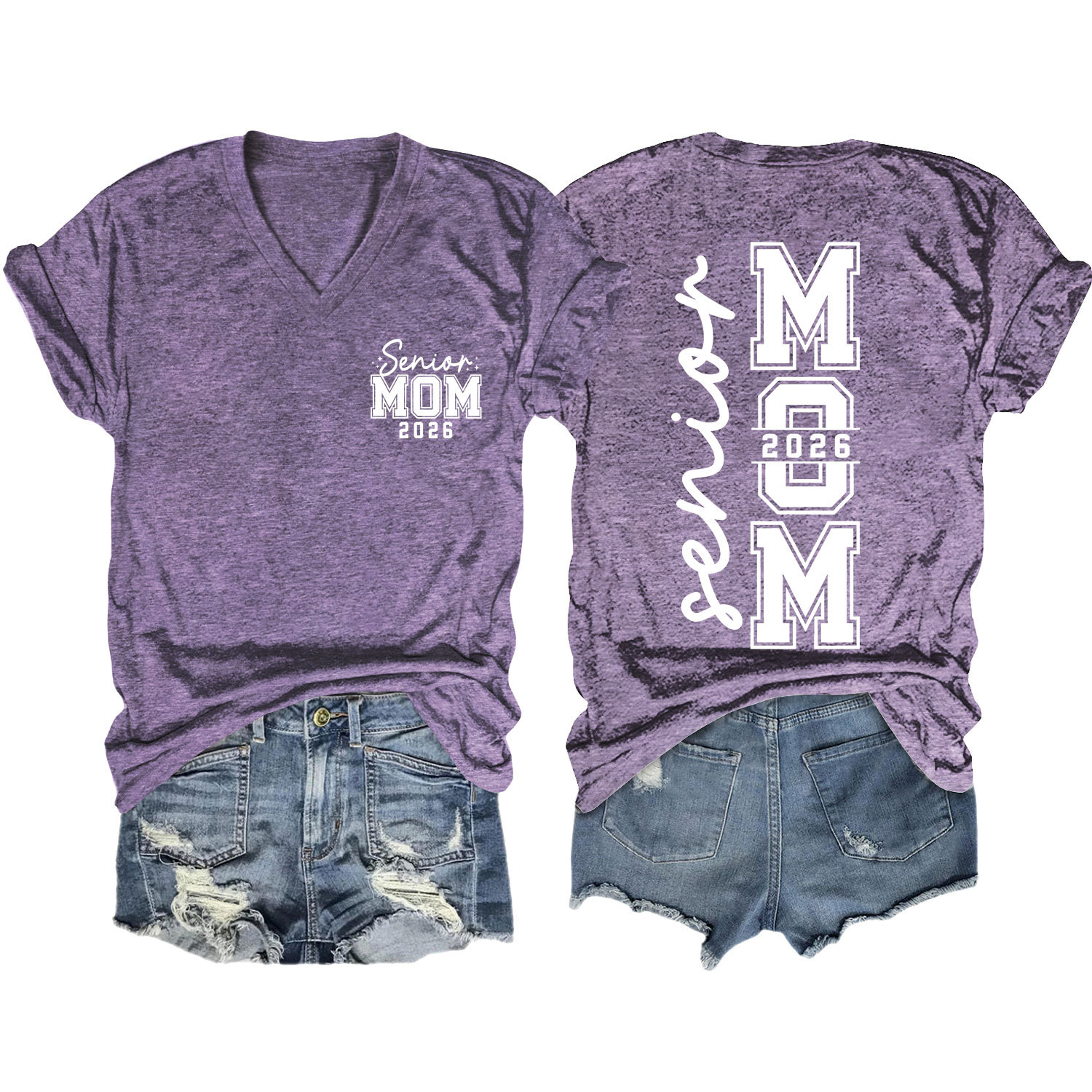 Amazon 캐주얼하고 다재다능한 여성용 이베이 독립 스테이션 시니어 엄마 2026 전면 및 후면 프린트 V 넥 반팔 티셔츠