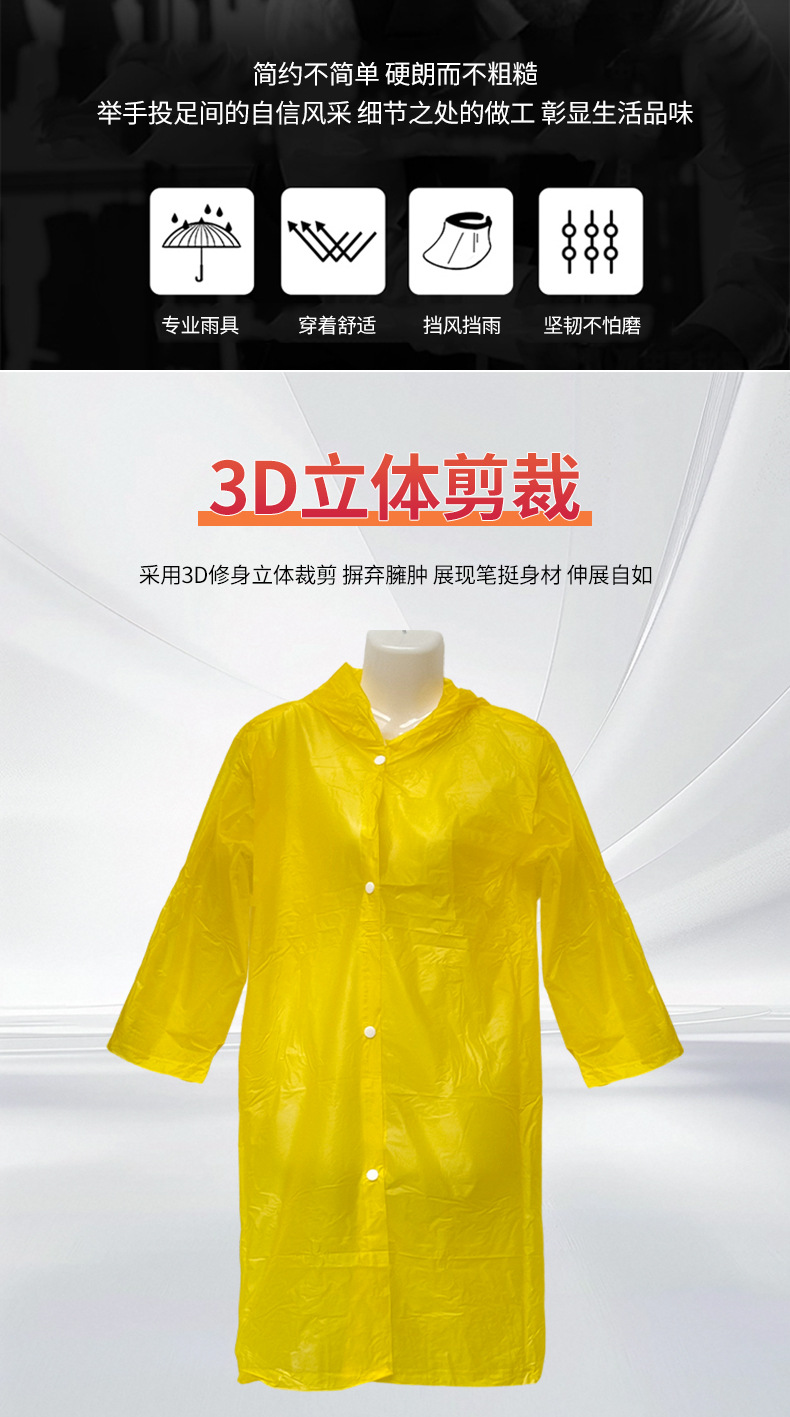두꺼운 소재, 입체적인 컷팅, 비닐 방수층, 이중 챙, 탈부착이 가능한 심플한 단색 반투명 아동용 비옷