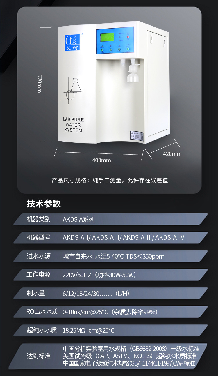 Aike 건강 관리 산업 실험실 초순수 장비 1급 물 18.25 메가 옴 실험실 초순수 기계스토어 가기