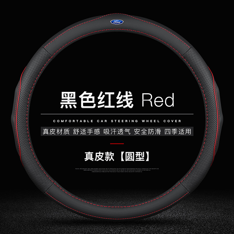 • 천연가죽(검은색 빨간색 실) D자형 포드 로고