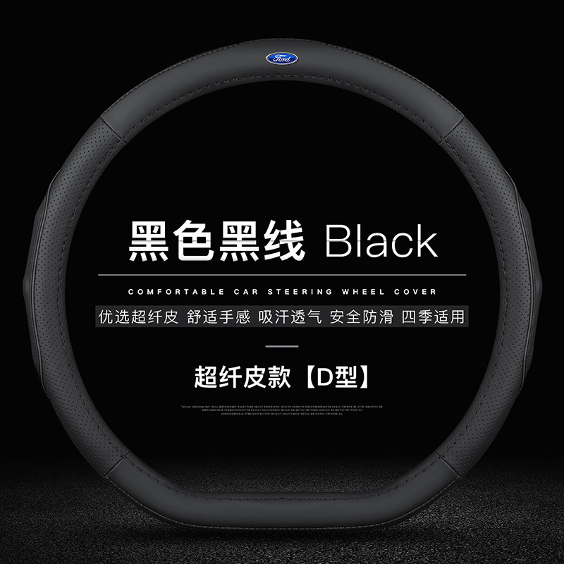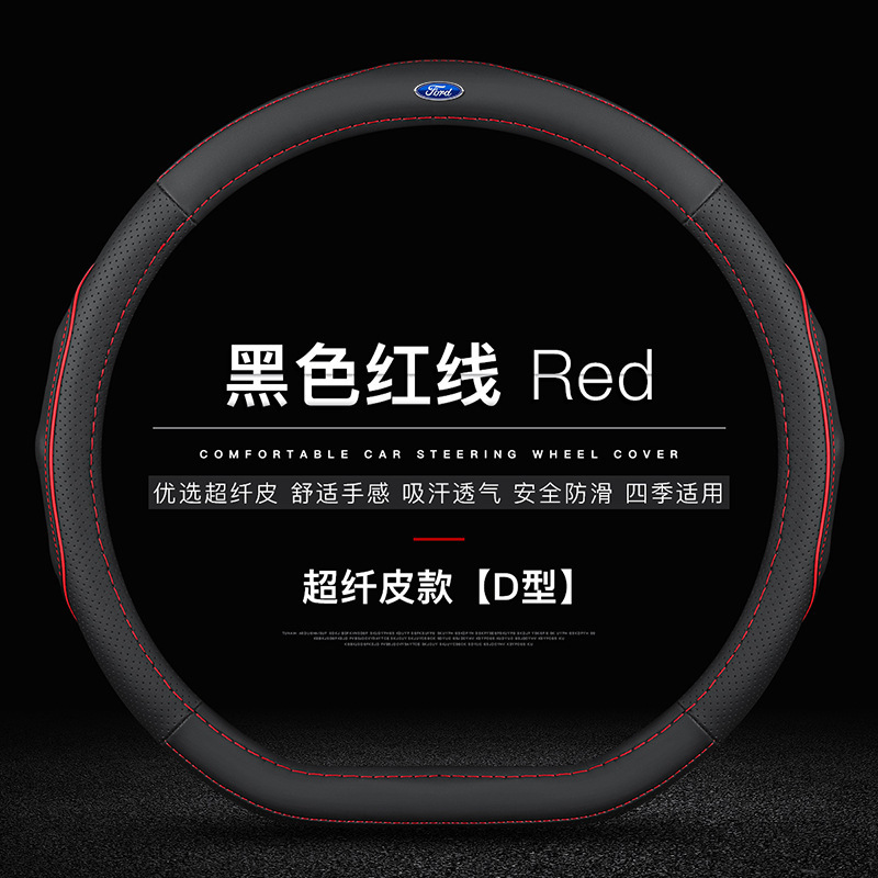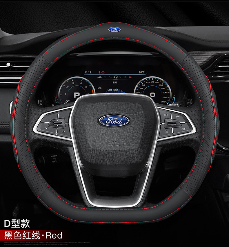 • 극세사 가죽(빨간색 실이 있는 검정색) D자형 포드 로고