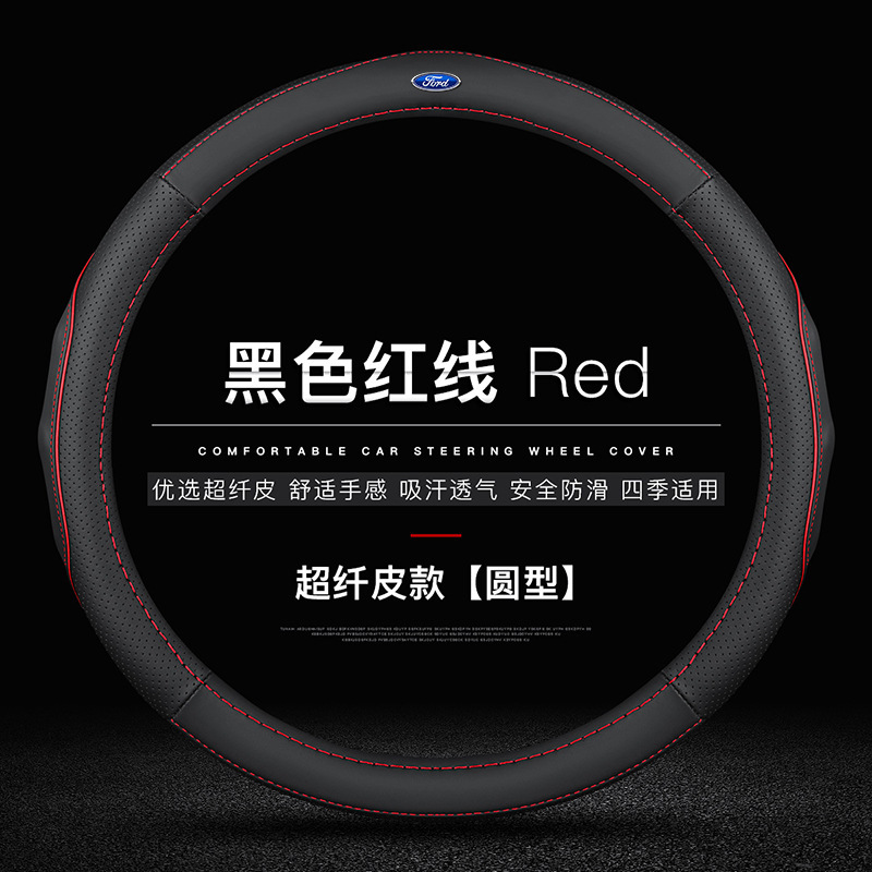 • 마이크로파이버 가죽(빨간색 실이 있는 검정색) 원형 포드 로고