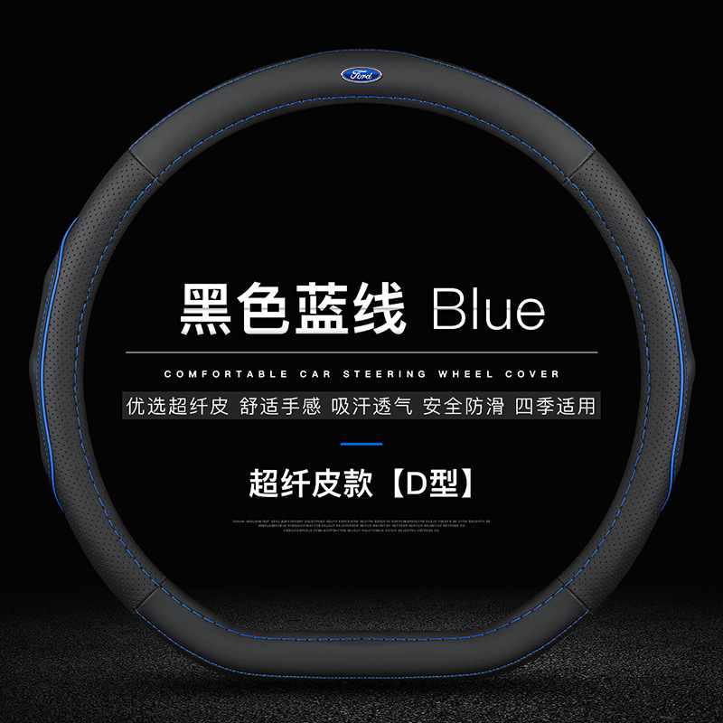 • 극세사 가죽(블랙 블루 라인) D자형 포드 로고