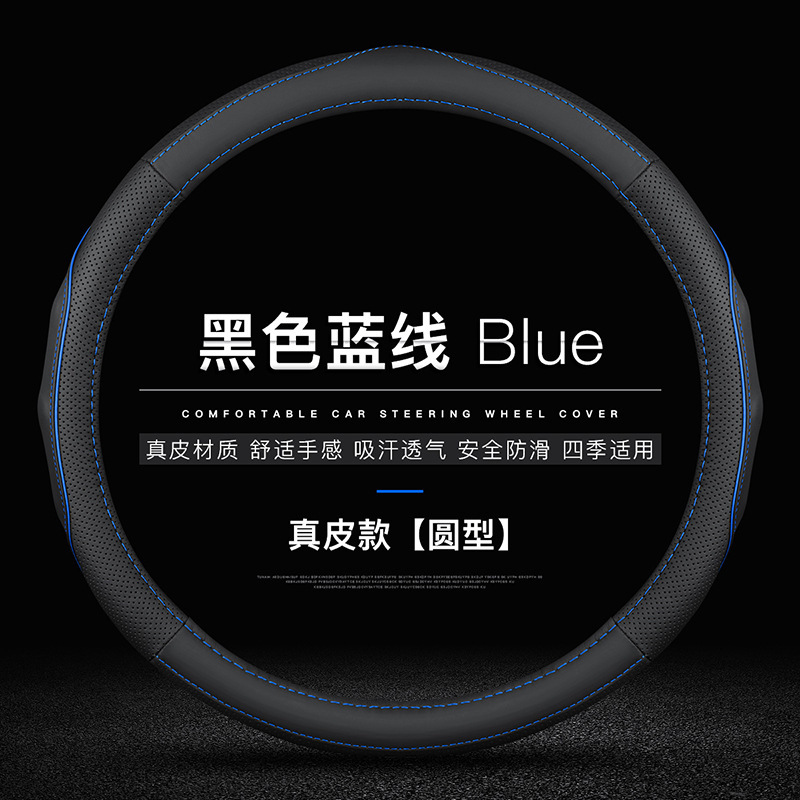 • 라벨이 없는 천연가죽(검은색 파란색 라인) 원형
