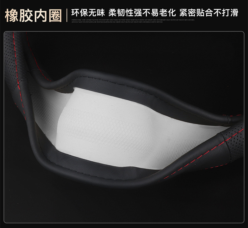 • 마이크로 화이버 가죽(빨간색 실이 있는 검정색) 라벨이 없는 D 모양