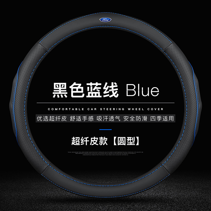 • 마이크로파이버 가죽(블랙 블루 라인) 원형 포드 로고