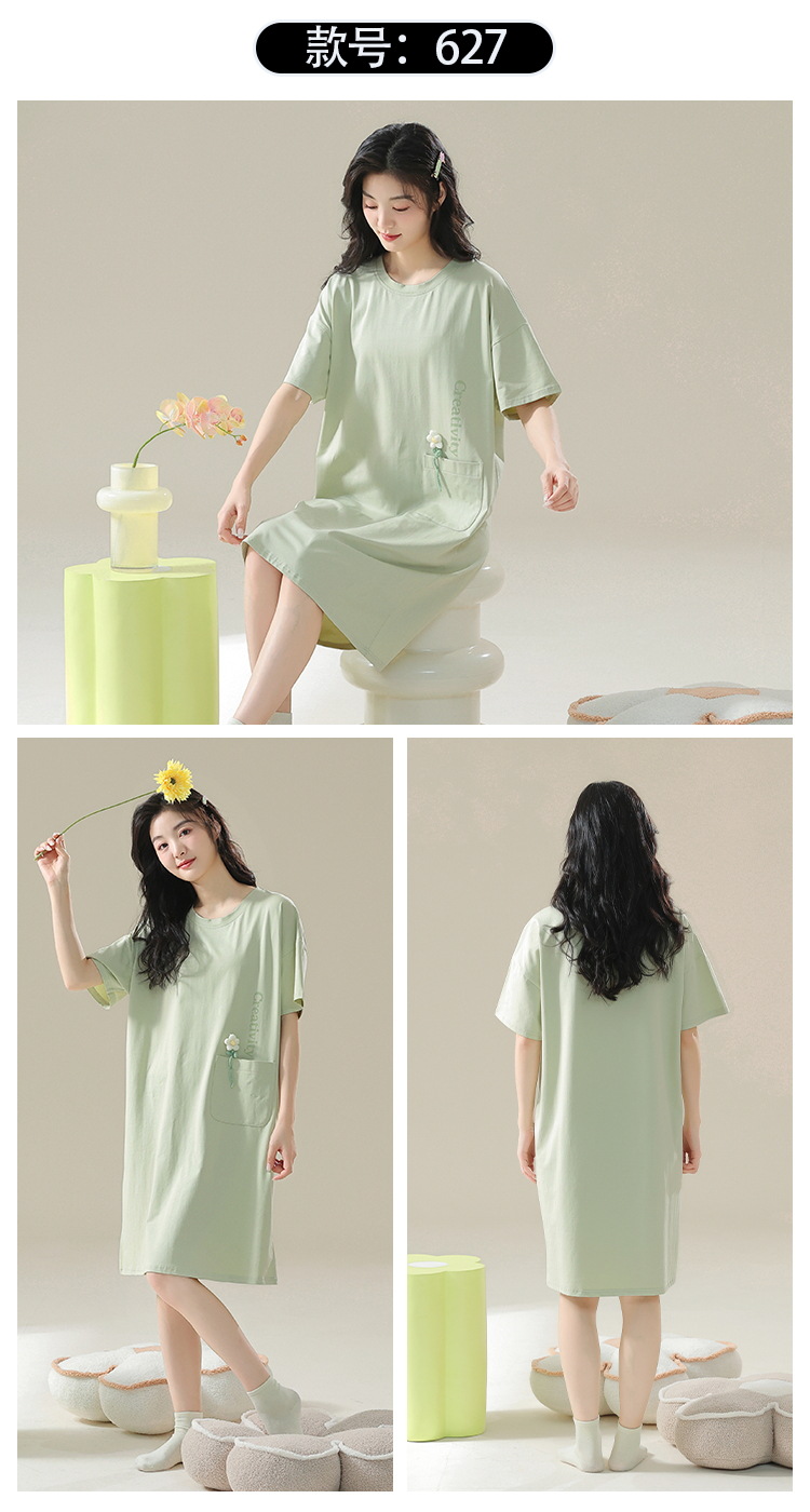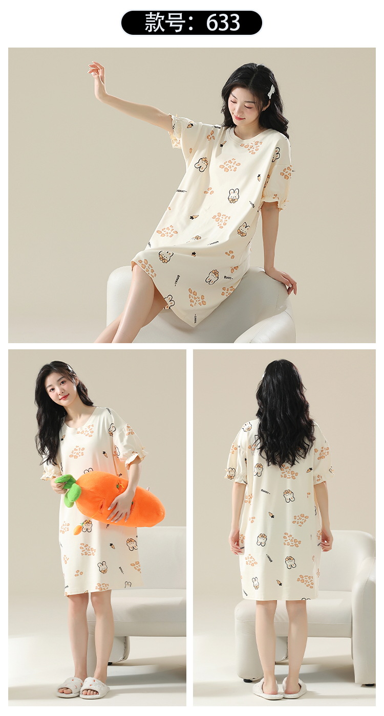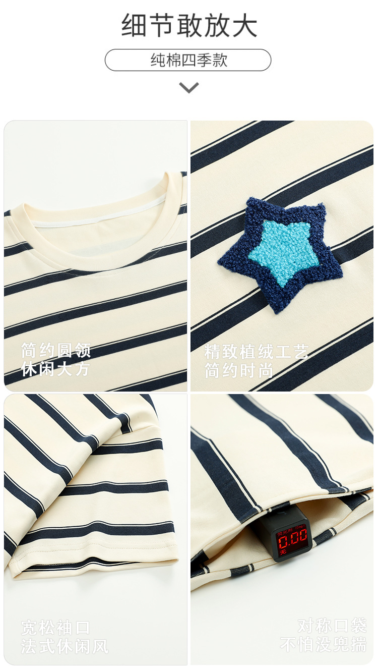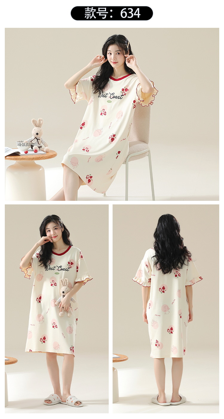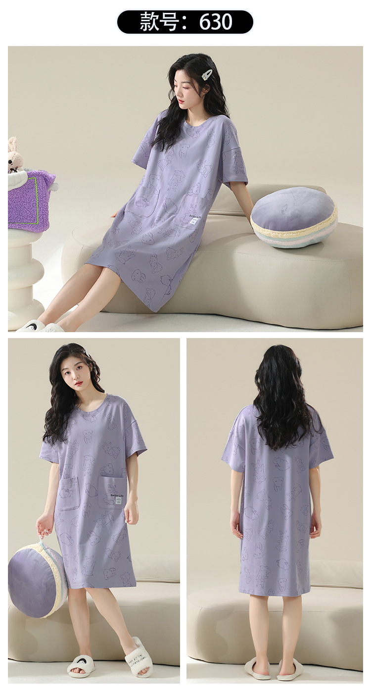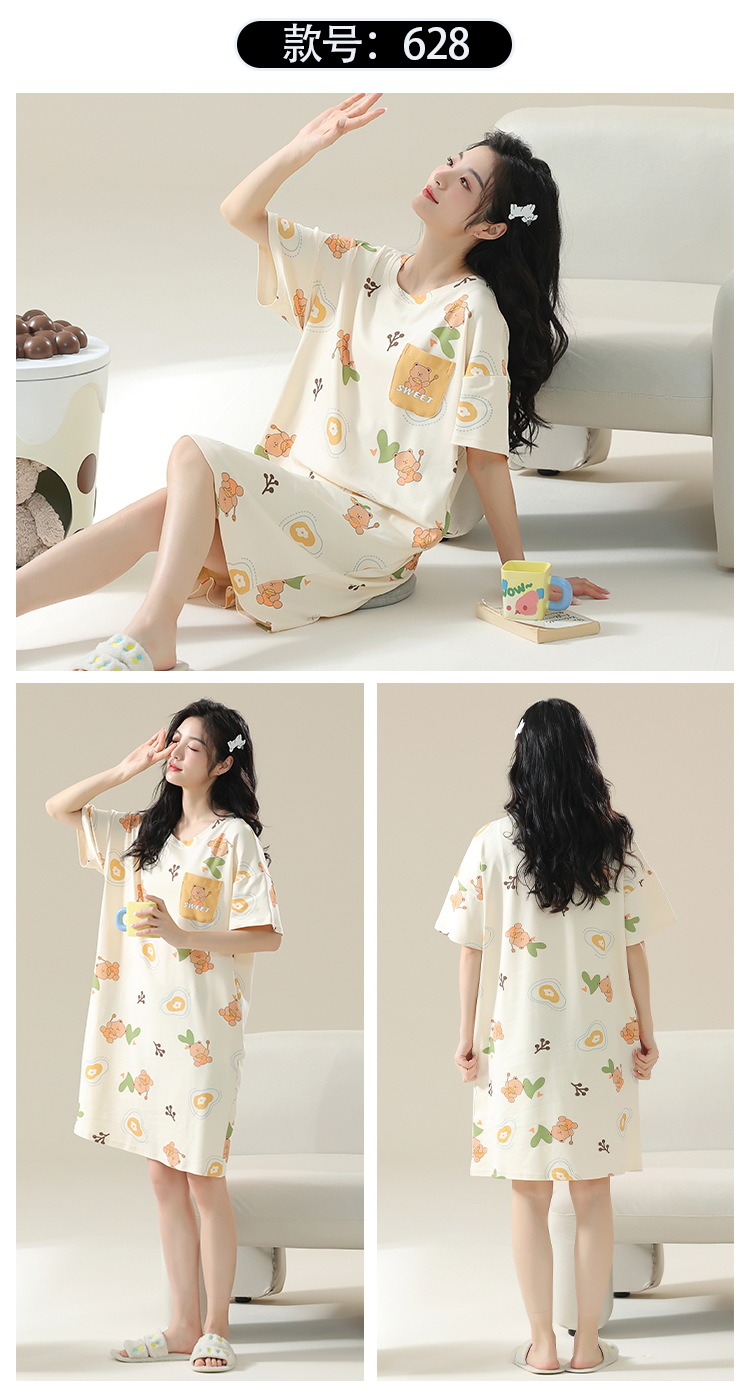 7A 항균 코튼 잠옷 여름 여성 반팔 얇은 드레스 스트라이프 웨어러블 중간 길이 플러스 사이즈 잠옷스토어 가기