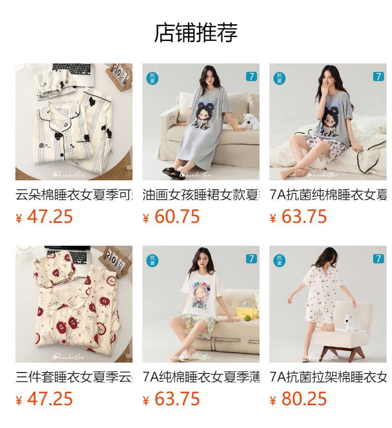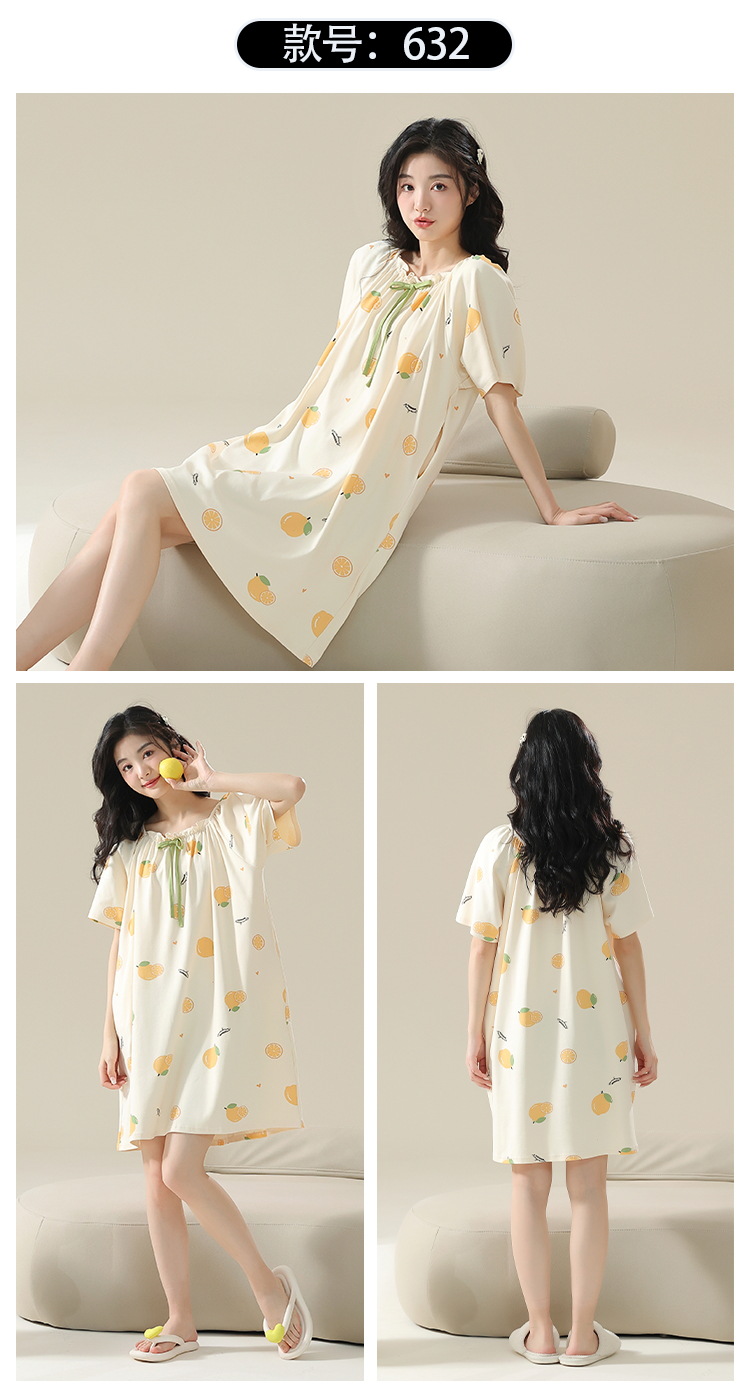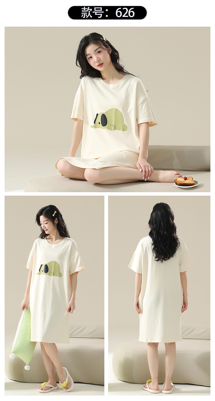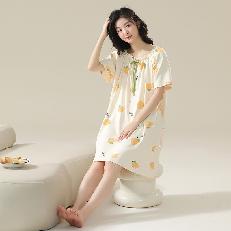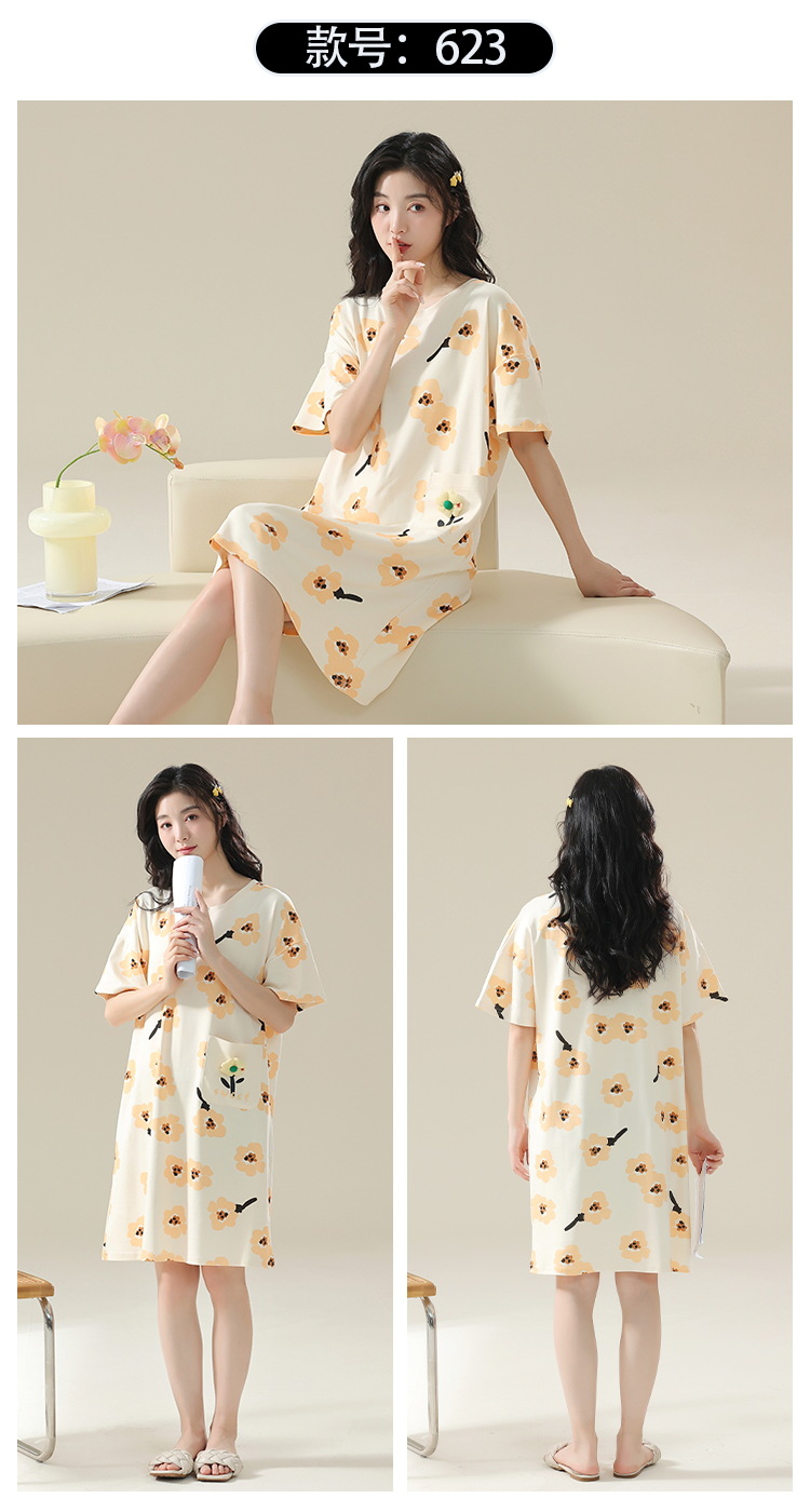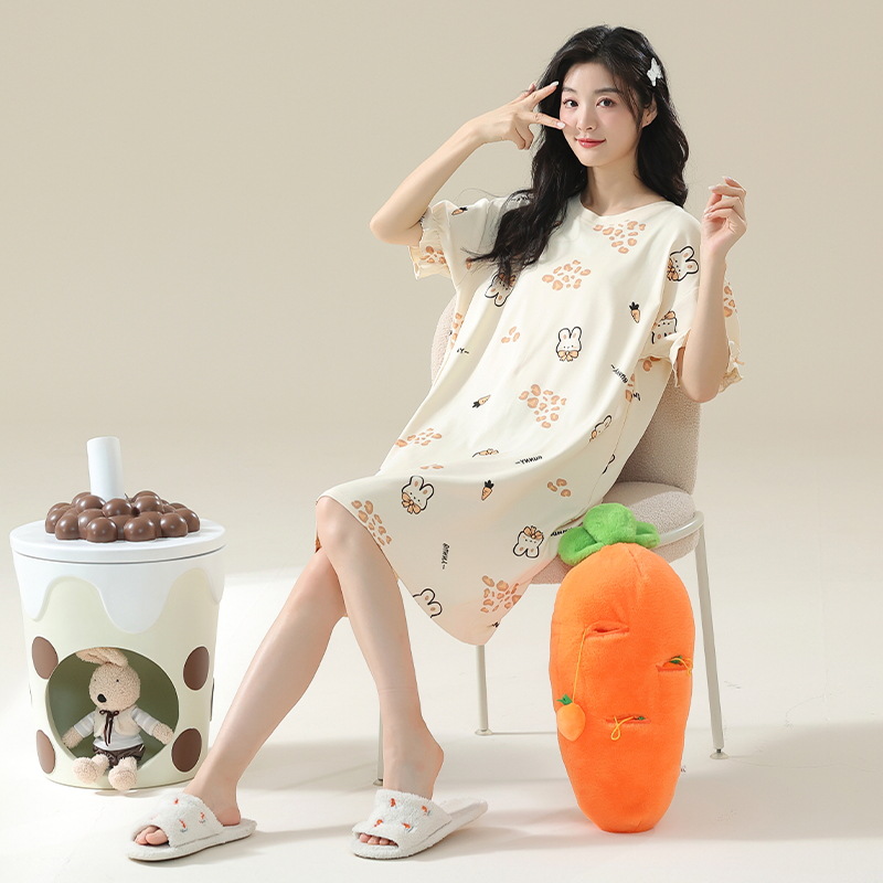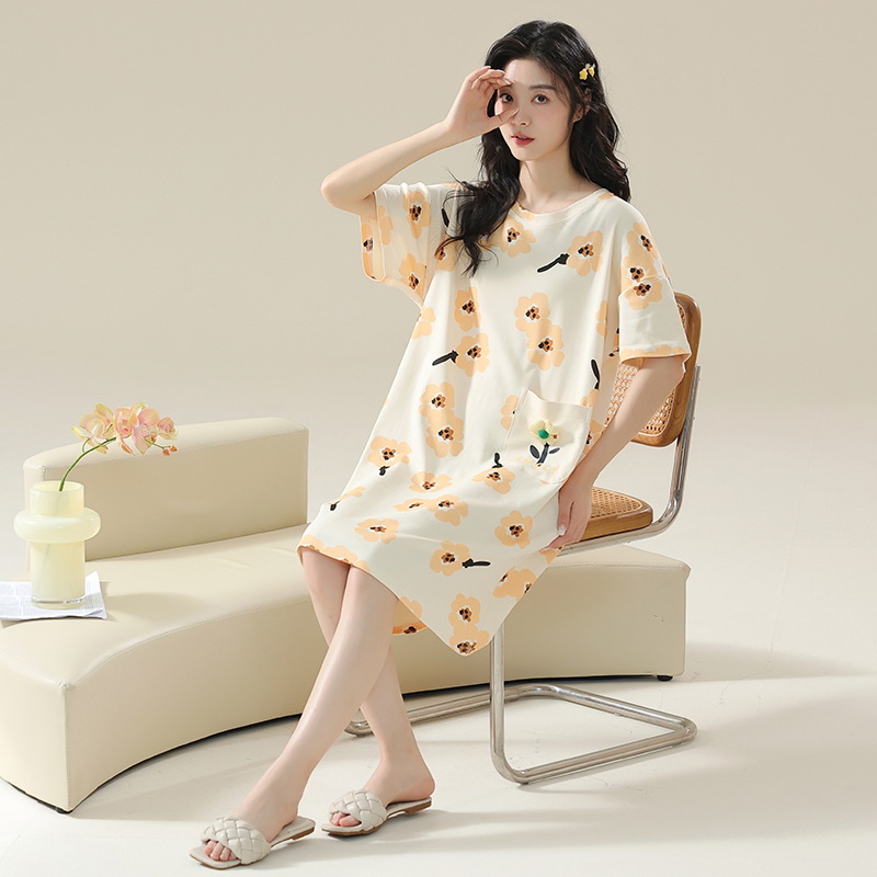 7A 항균 코튼 잠옷 여름 여성 반팔 얇은 드레스 스트라이프 웨어러블 중간 길이 플러스 사이즈 잠옷스토어 가기