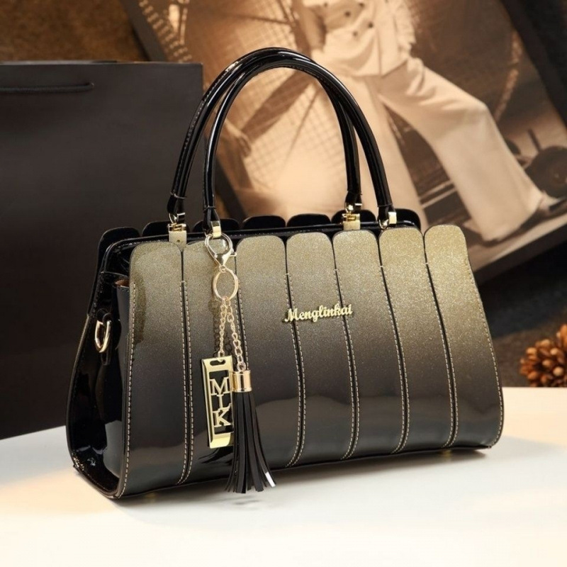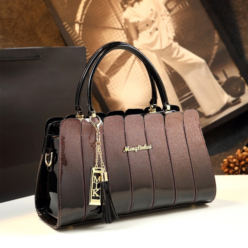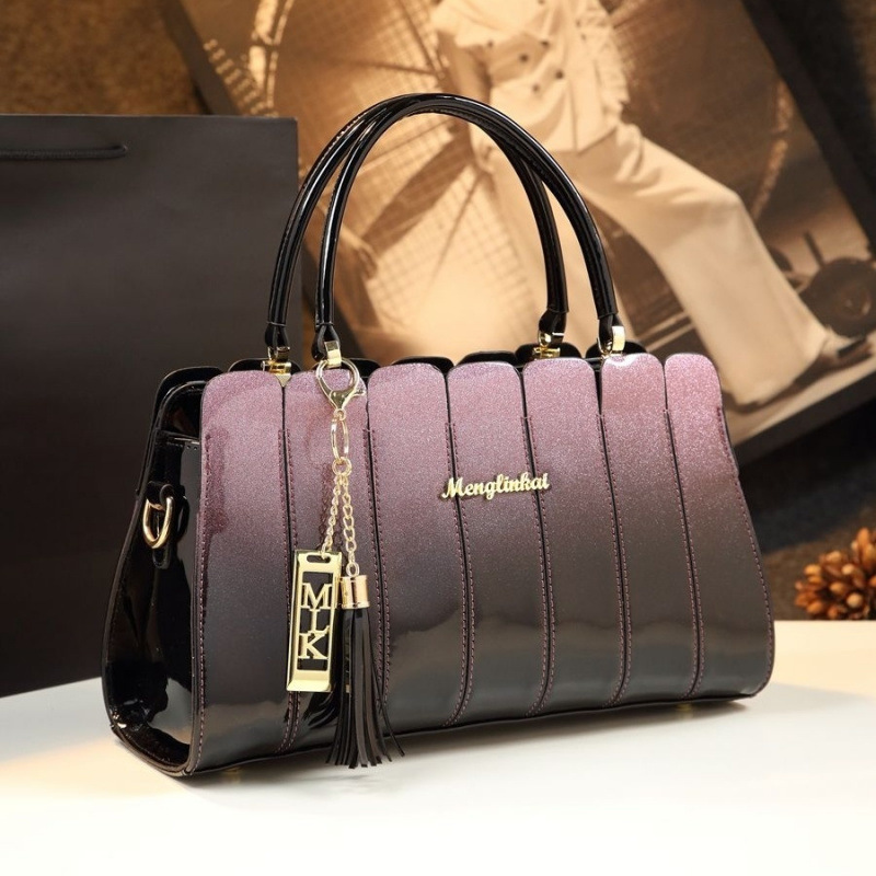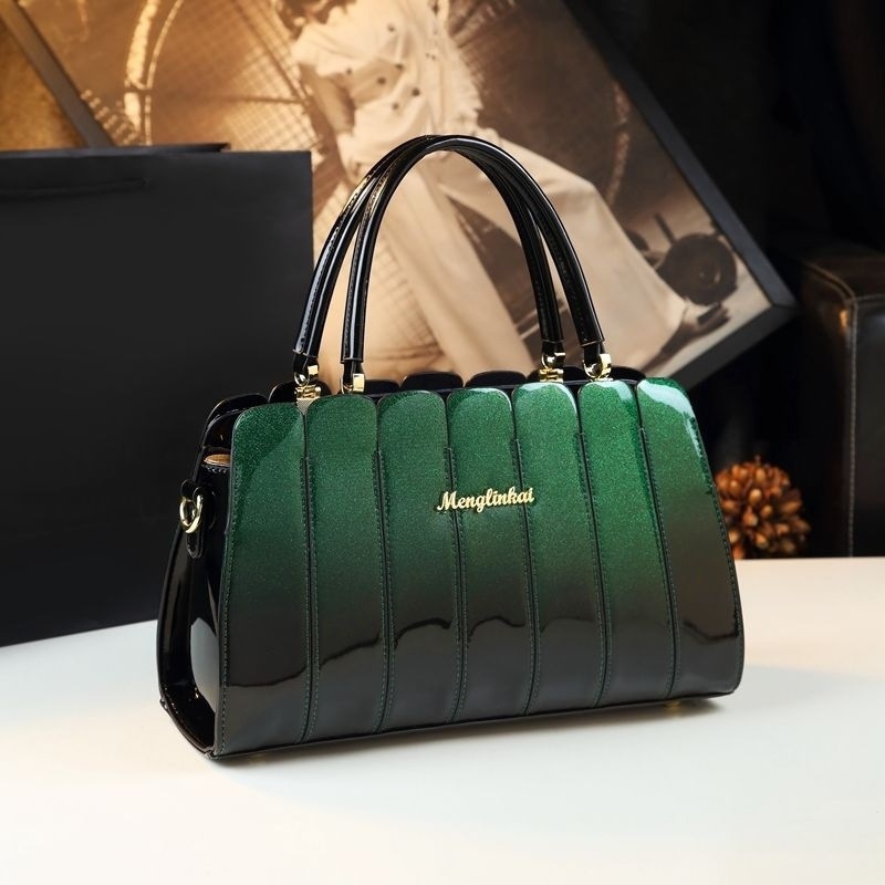 중년 여성을 위한 천연가죽 패셔너블한 핸드백, 여성용 어머니 스타일 숄더 크로스백, 심플한 컬러블록 페이턴트 가죽 가방스토어 가기