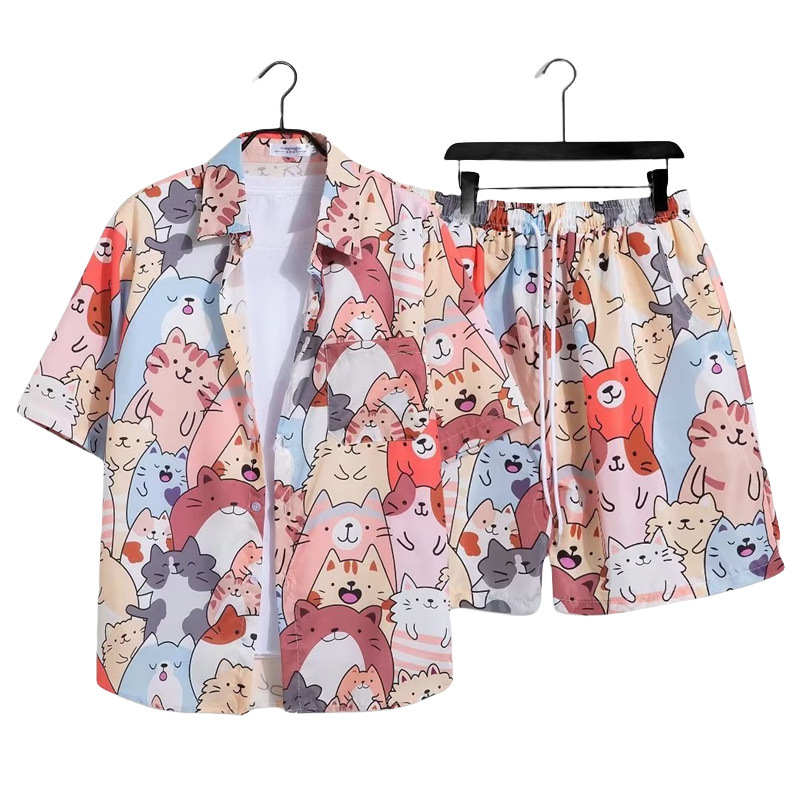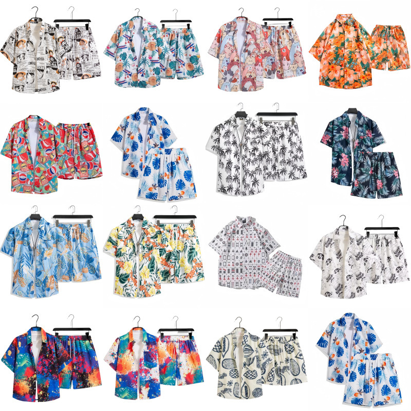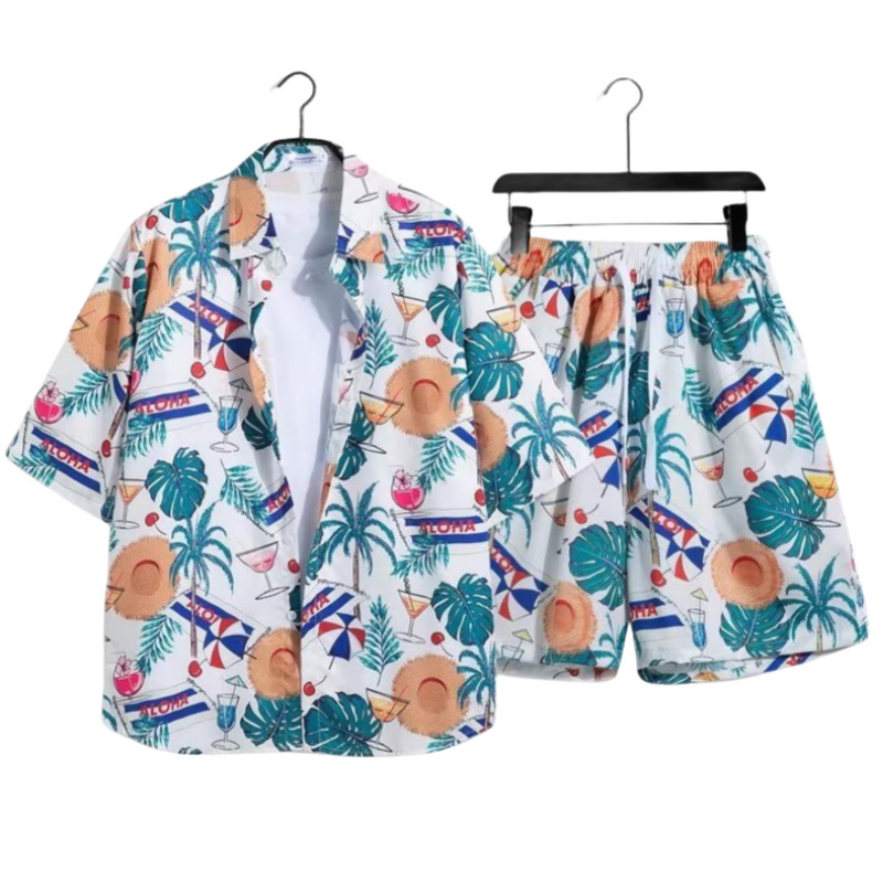 하와이 부모-자식 꽃무늬 셔츠 반팔 소년 소녀 느슨한 복고풍 녹색 해변 어머니-자식 복장 홍콩 스타일 복고풍