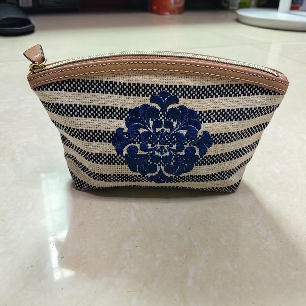 제조업체 맞춤형 무광택 f 캔버스 가로 스트립 소재 사각형 가방 편리한 클러치 백 여행용 수납 가방 야외 화장품 가방스토어 가기