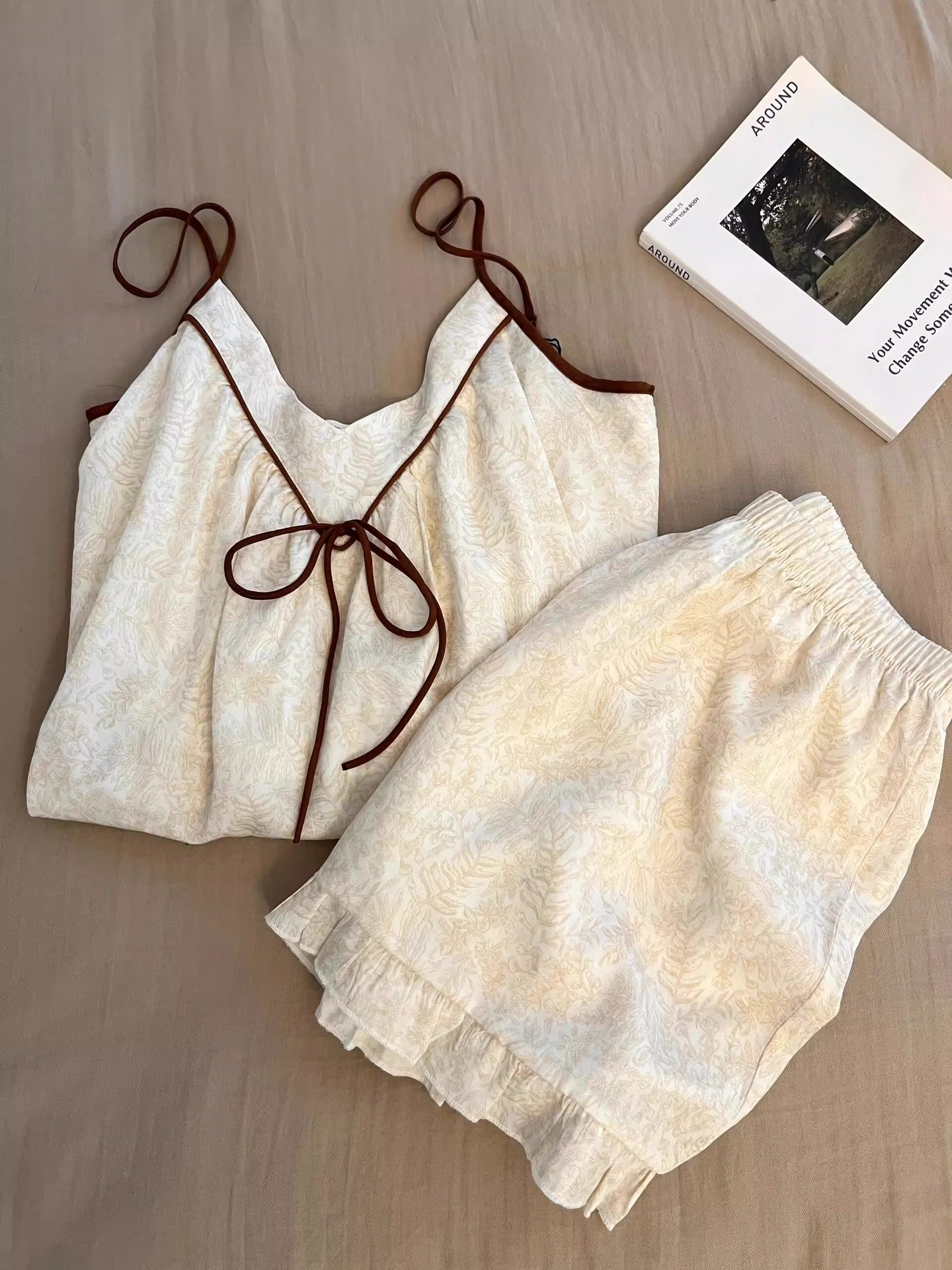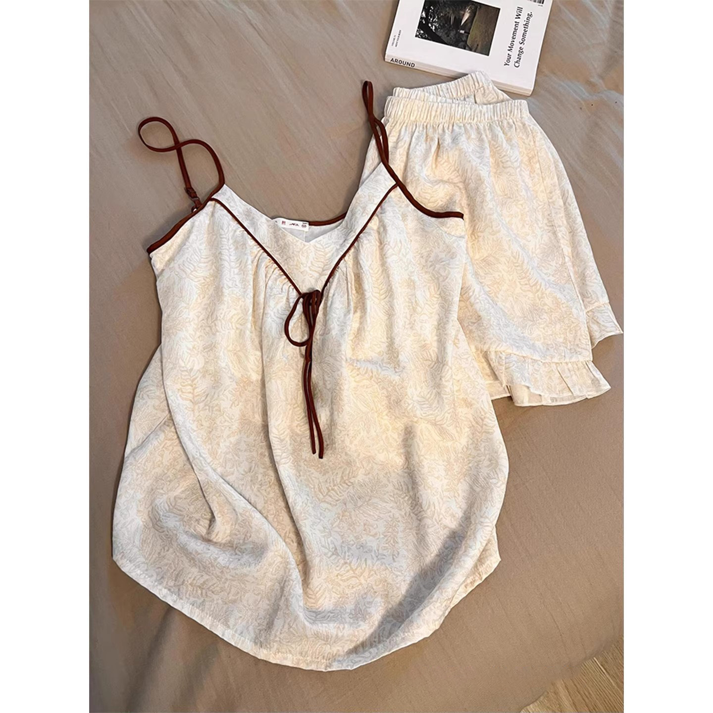 여성을 위한 새로운 중국 스타일의 중국 스타일 잠옷, 가슴 패드와 멜빵이 있는 여름 얇은 슈트, 고급 크로스보더 홈웨어, 야외에서 착용 가능