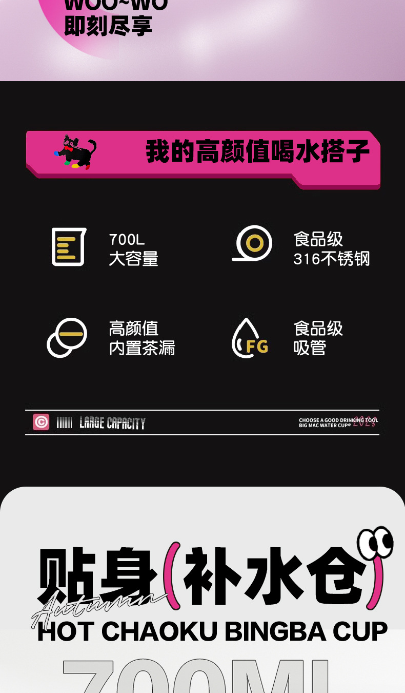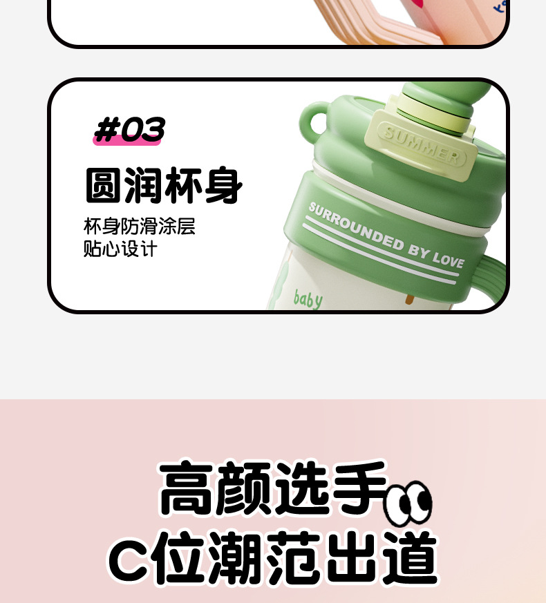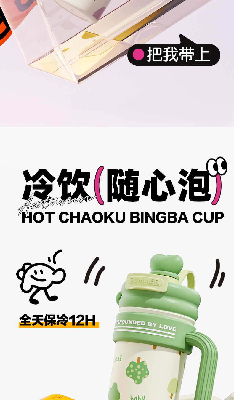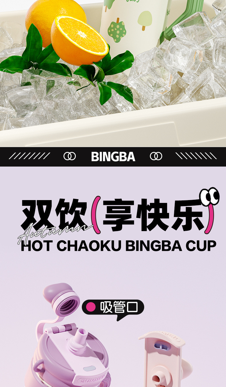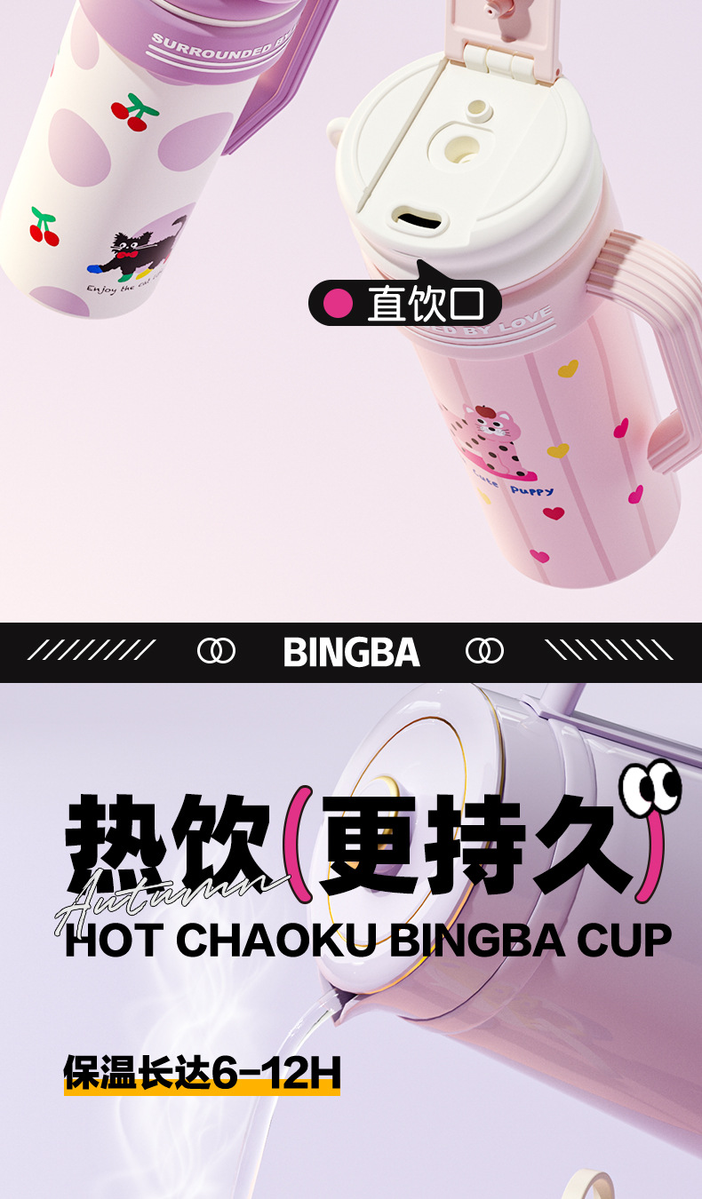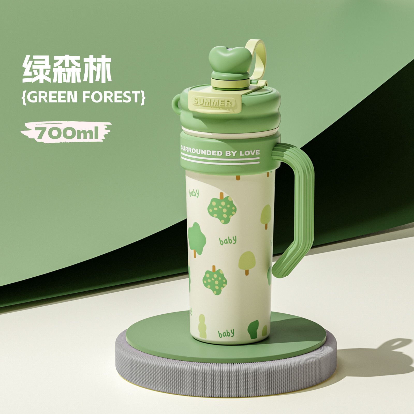 여성용 멋진 만화 더블 빨대 보온병 컵, 대용량 워터 컵, 자동차 휴대용 아이스 컵
