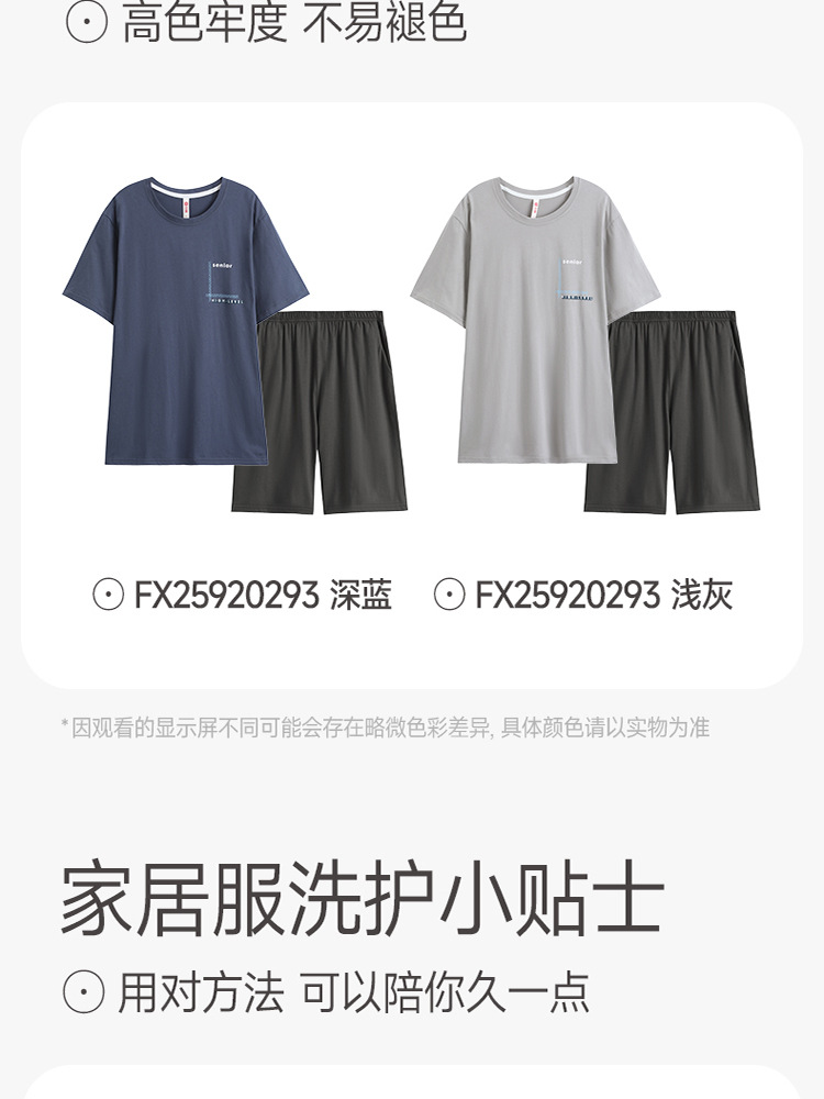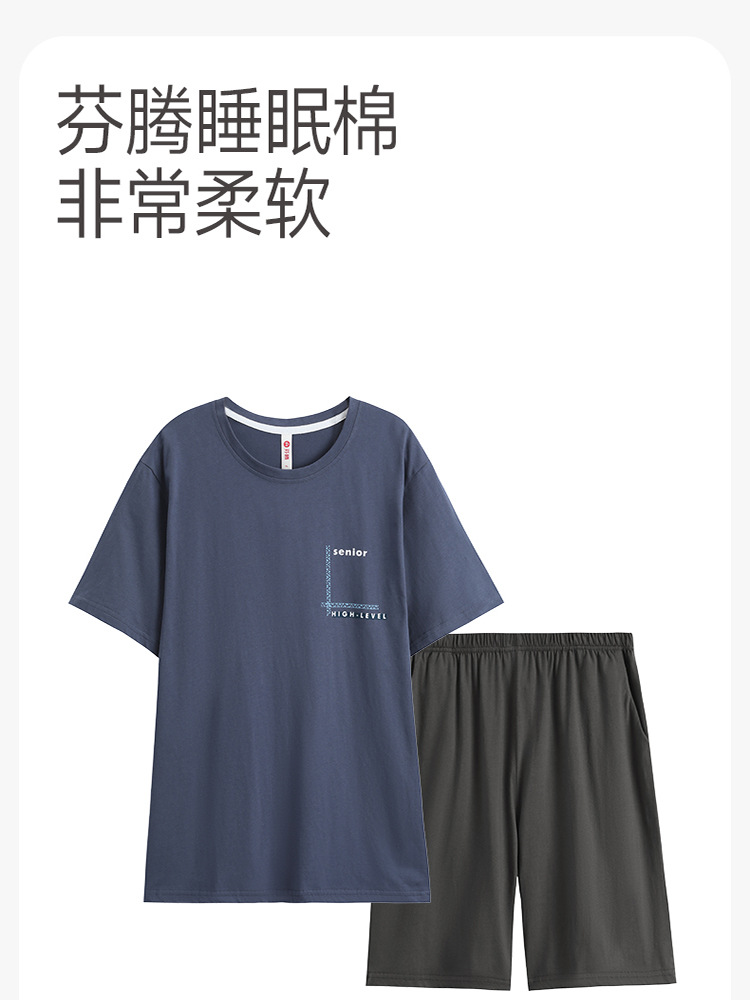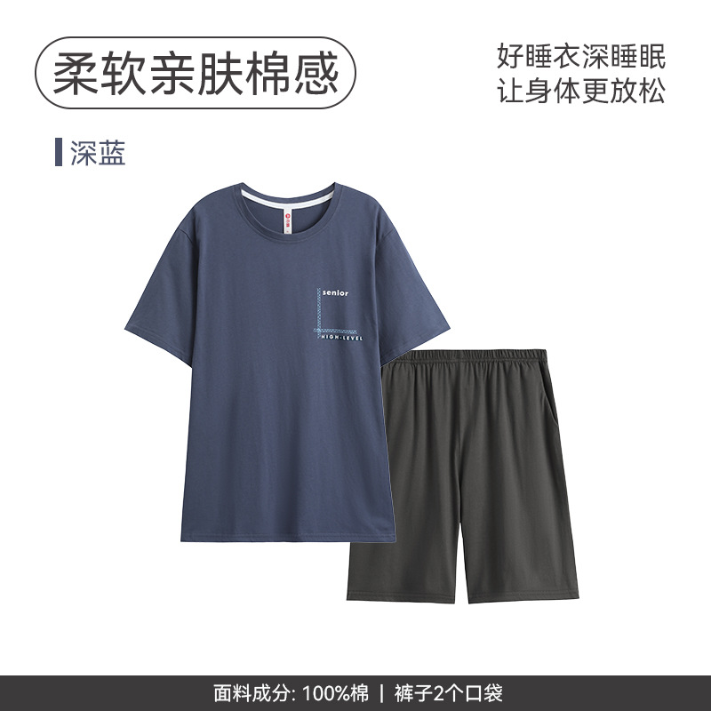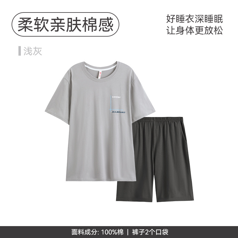 [슬립 코튼] 남성 잠옷 여름 순면 반팔 라운드 넥 슈트 젊은 남성 캐주얼 대형 사이즈 외부 착용 가능스토어 가기
