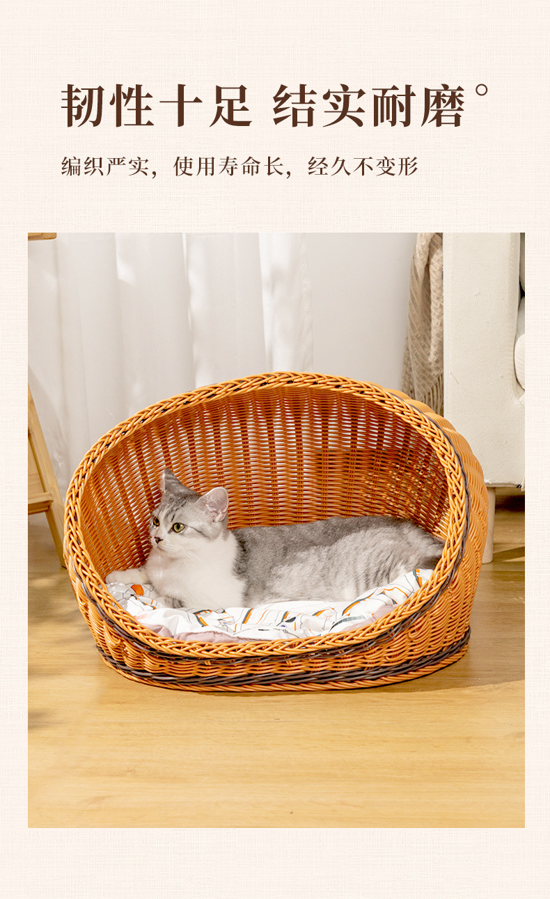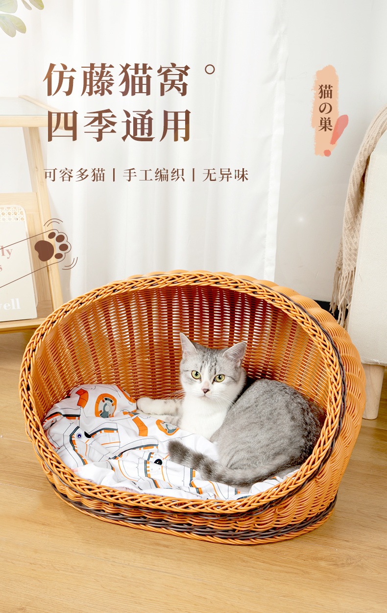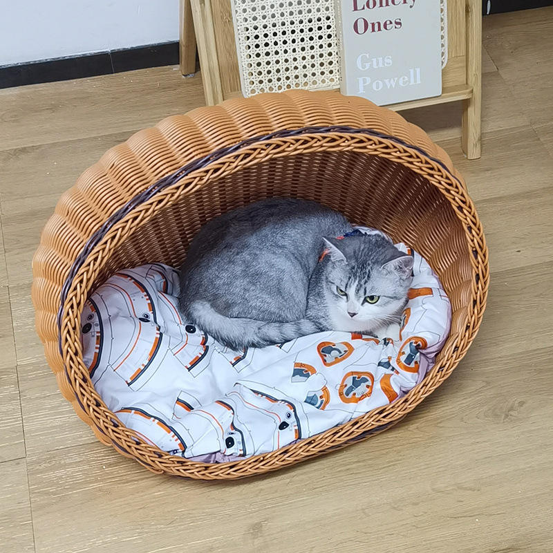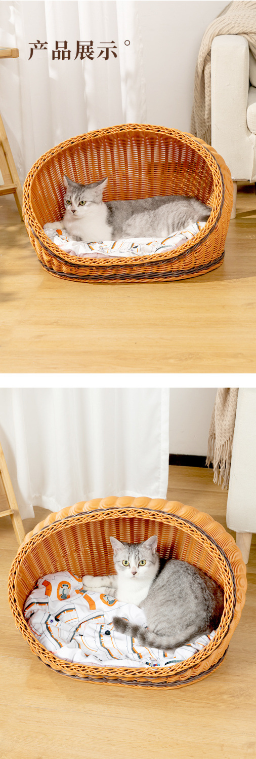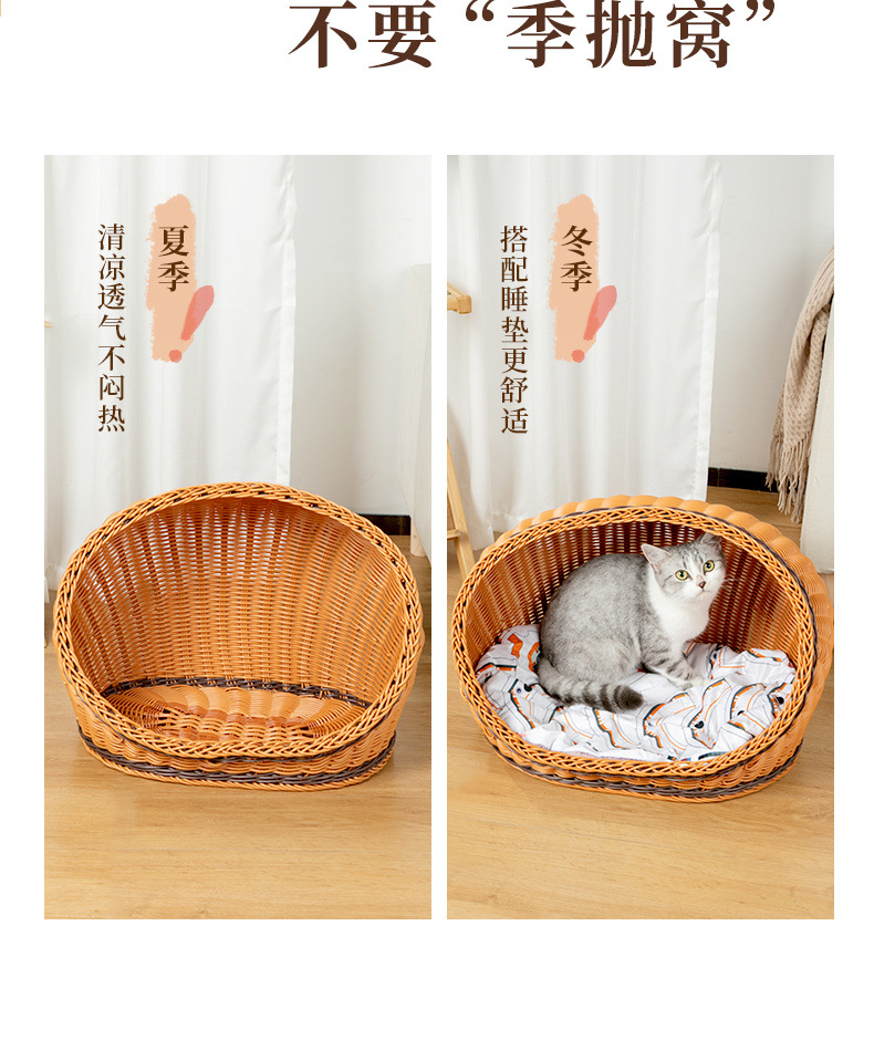 고양이 개집, 등나무 개 개집, 반밀폐형, 사계절 모두 사용 가능, 세탁 가능한 고양이 침대, 여름 시원하고 냉각되는 개 침대, 봄과 가을스토어 가기