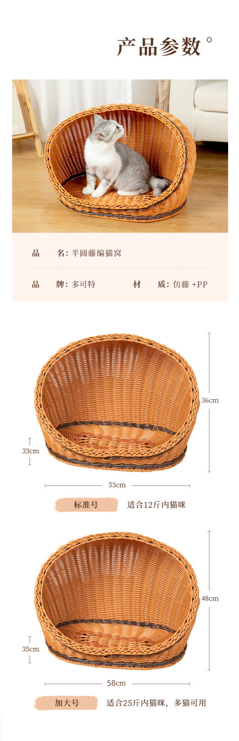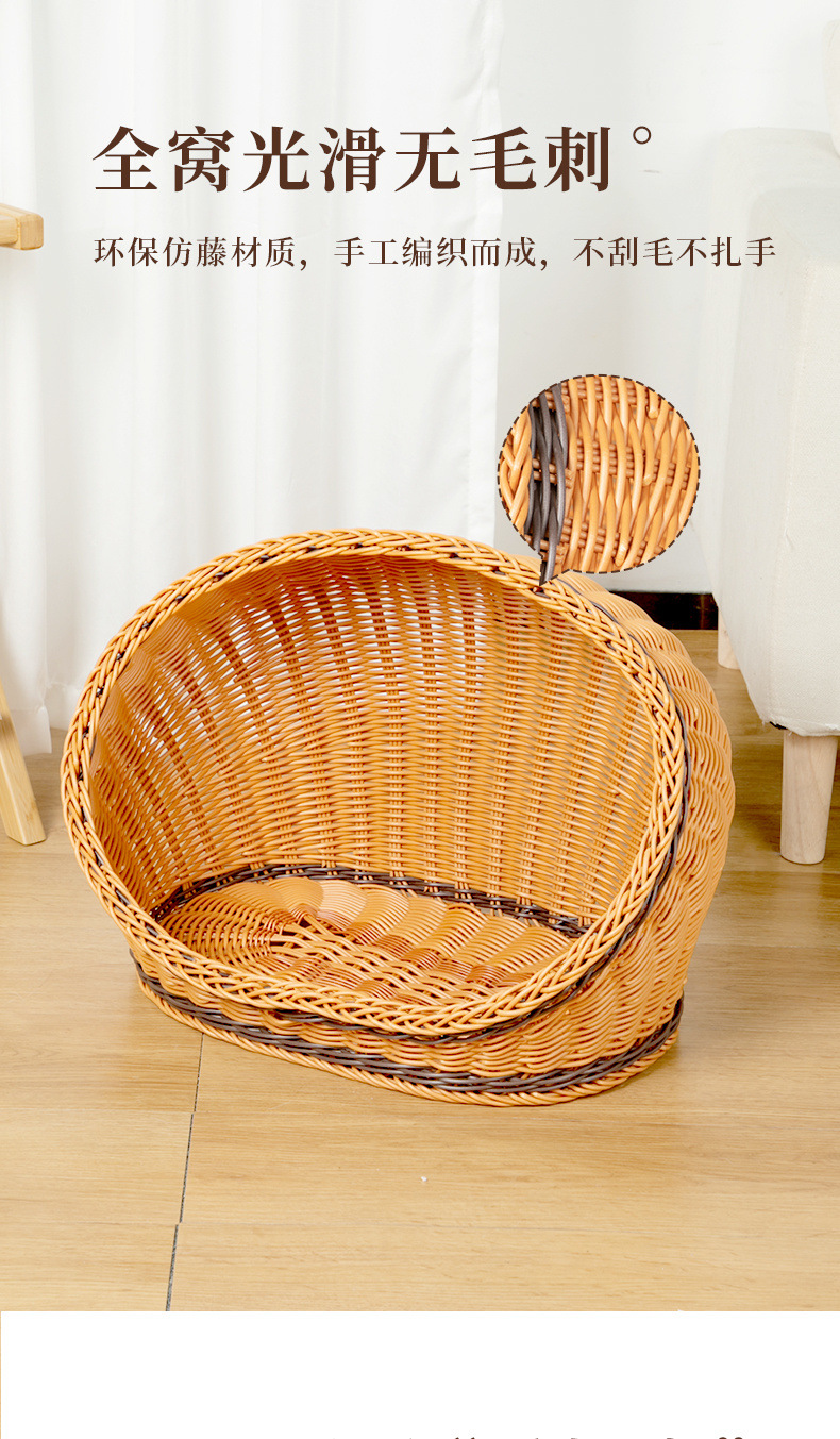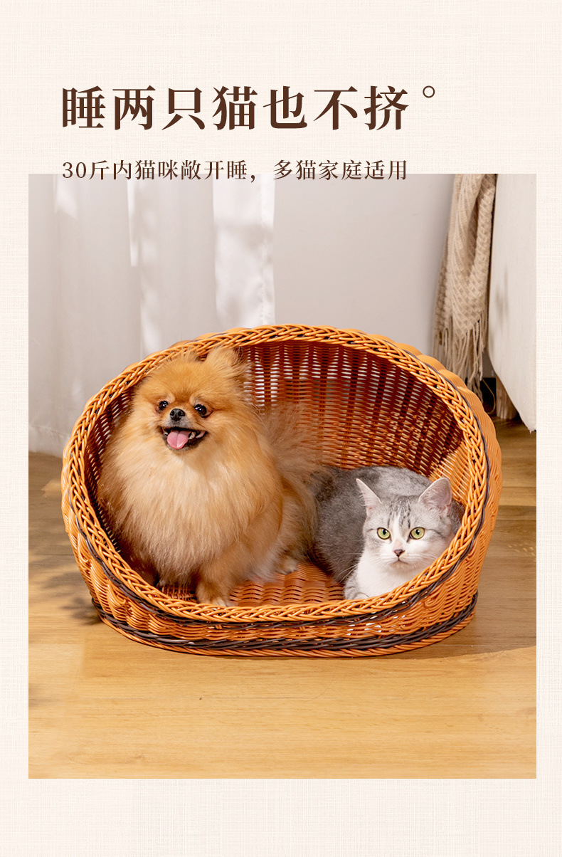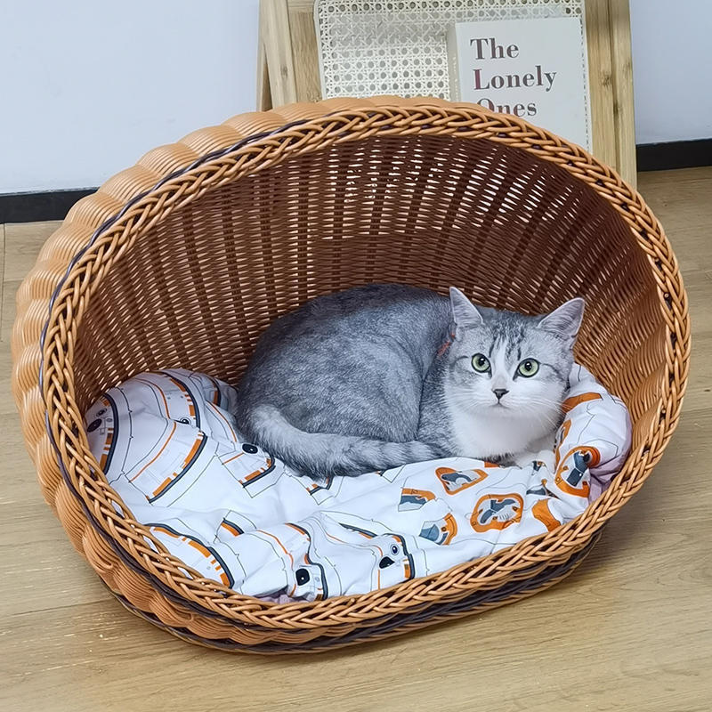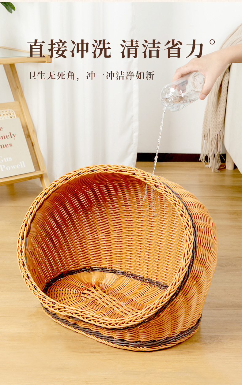 고양이 개집, 등나무 개 개집, 반밀폐형, 사계절 모두 사용 가능, 세탁 가능한 고양이 침대, 여름 시원하고 냉각되는 개 침대, 봄과 가을스토어 가기