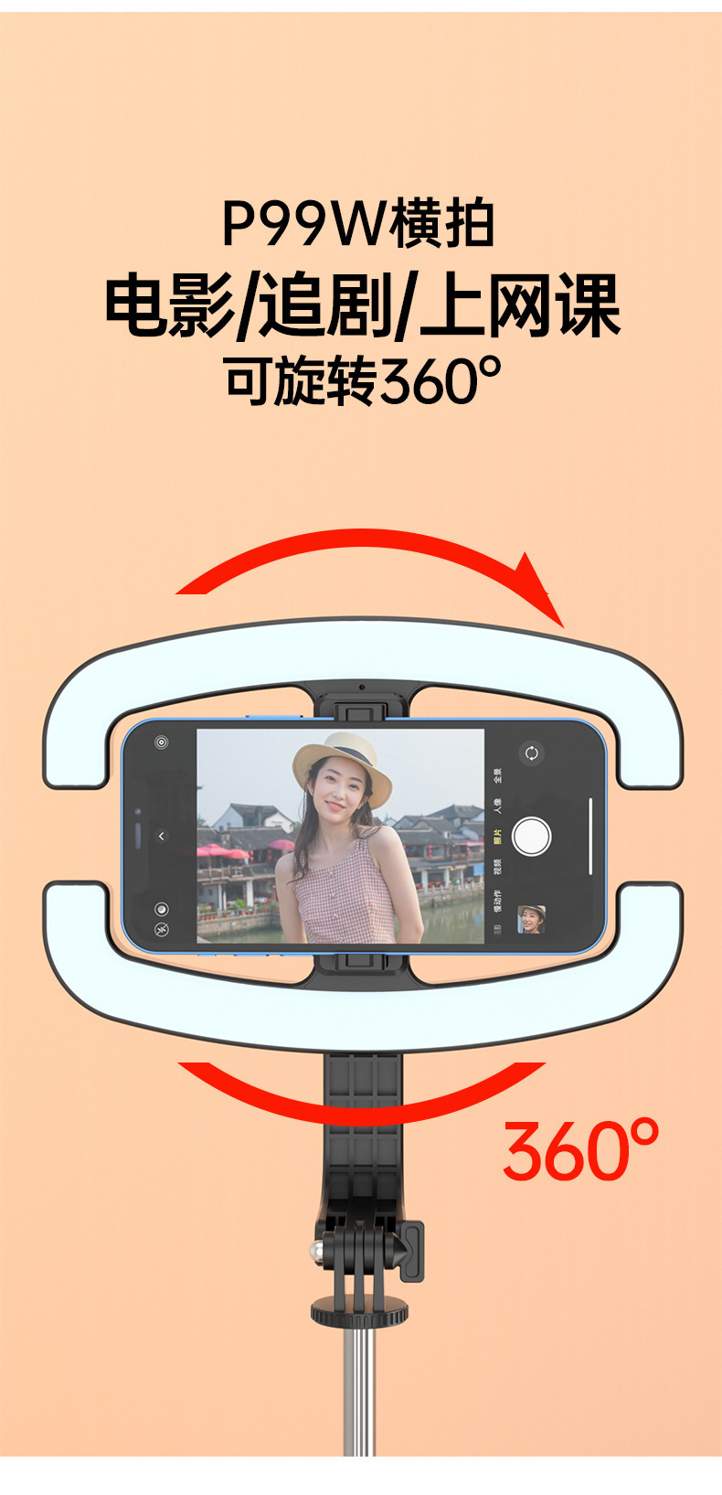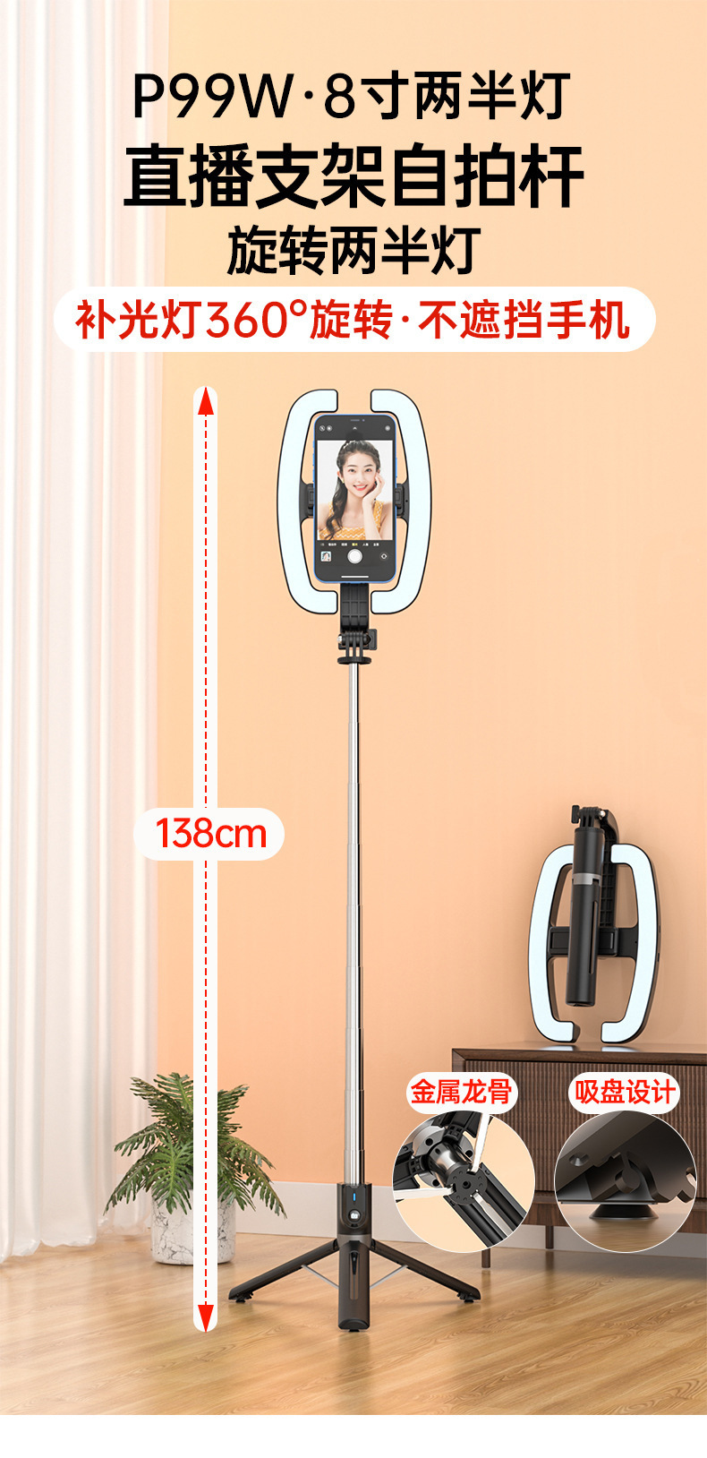 국경 간 새로운 P99W 셀카봉 회전 반쪽 조명 휴대 전화 라이브 방송 보조 조명 데스크탑 텔레스코픽 플로어 스탠딩 삼각대스토어 가기