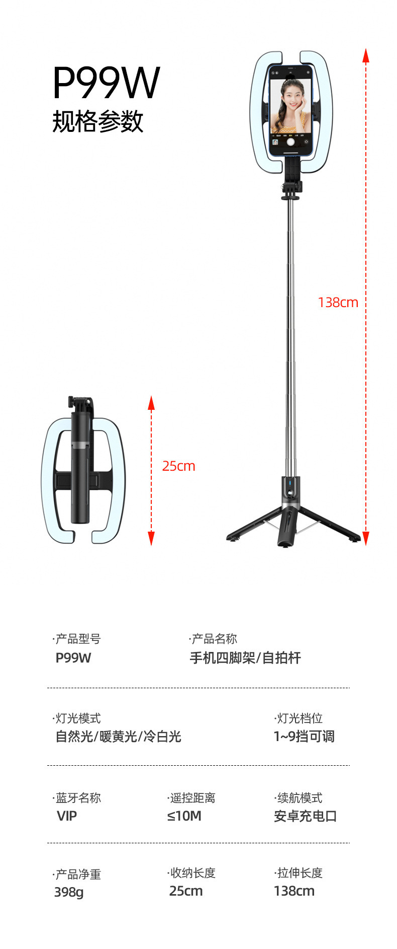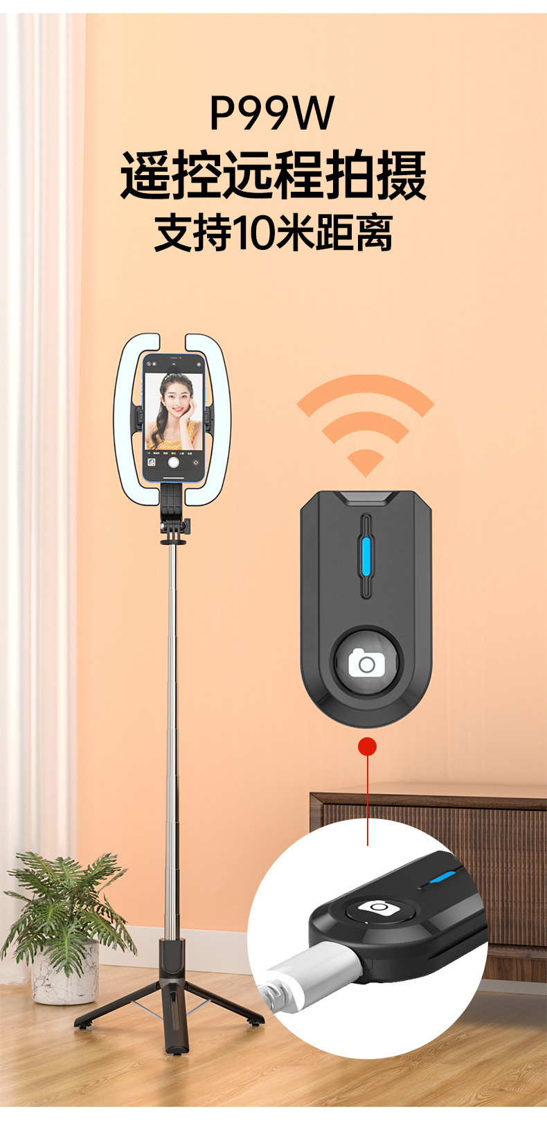국경 간 새로운 P99W 셀카봉 회전 반쪽 조명 휴대 전화 라이브 방송 보조 조명 데스크탑 텔레스코픽 플로어 스탠딩 삼각대