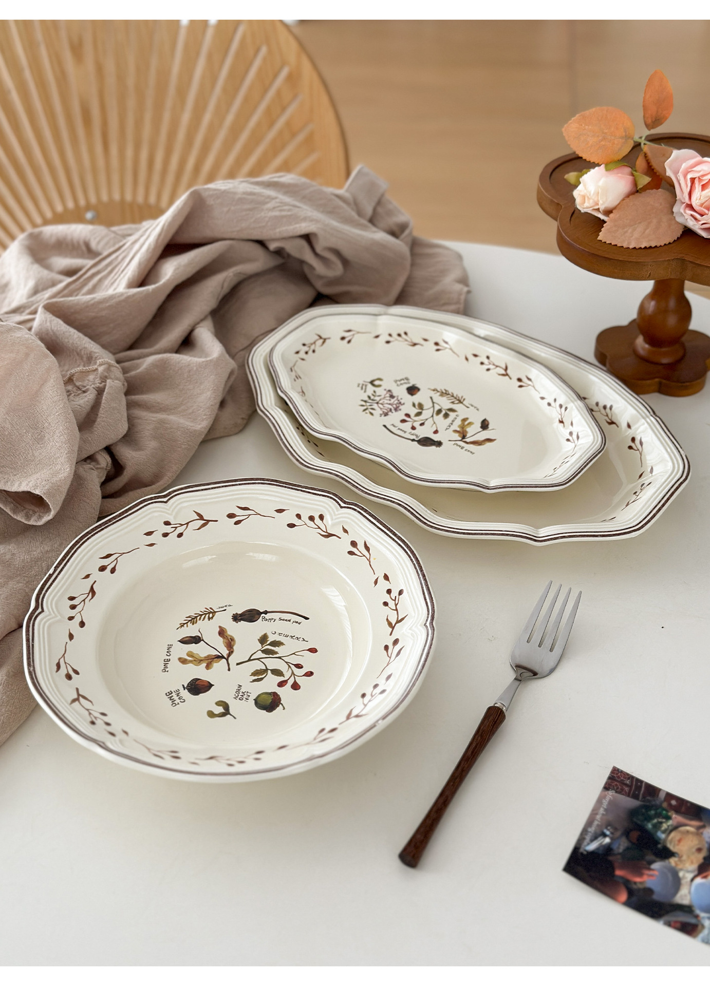 무니 프렌치 레트로 디너 플레이트, 아름다운 식기, 세라믹 깊은 접시, 수프 접시, 생선 접시, 디저트 스낵 접시, 파스타 접시