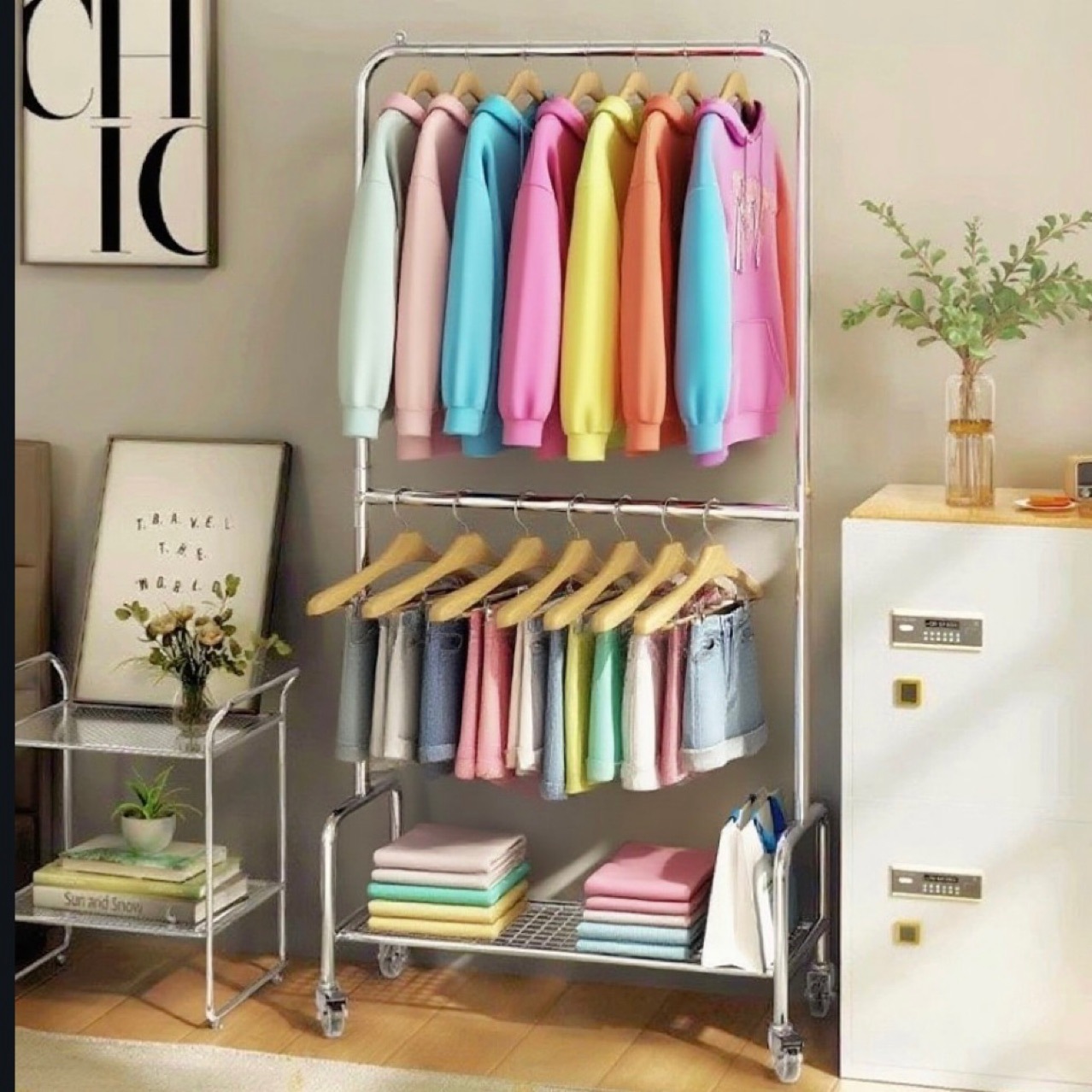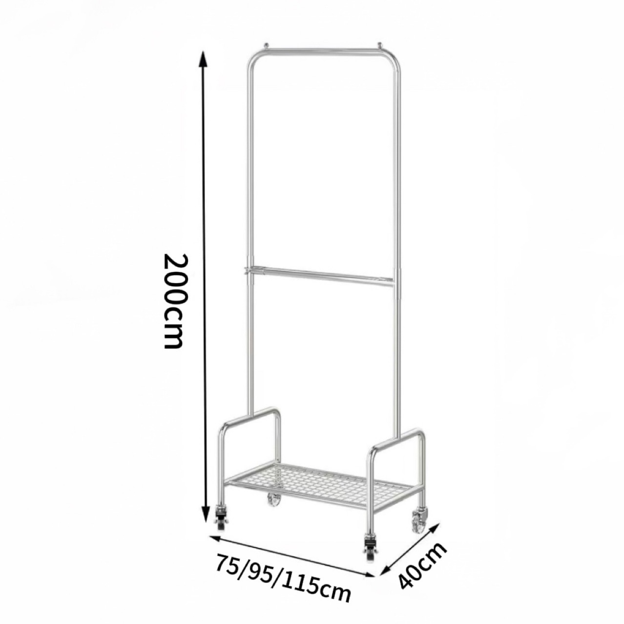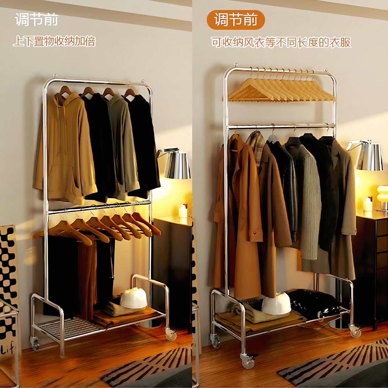 전기 도금 밝은 은색 두꺼운 내하중 이중층 바닥에서 천장까지 옷걸이 옷 건조대 조절 가능한 옷가게 옷 건조 디스플레이 랙
