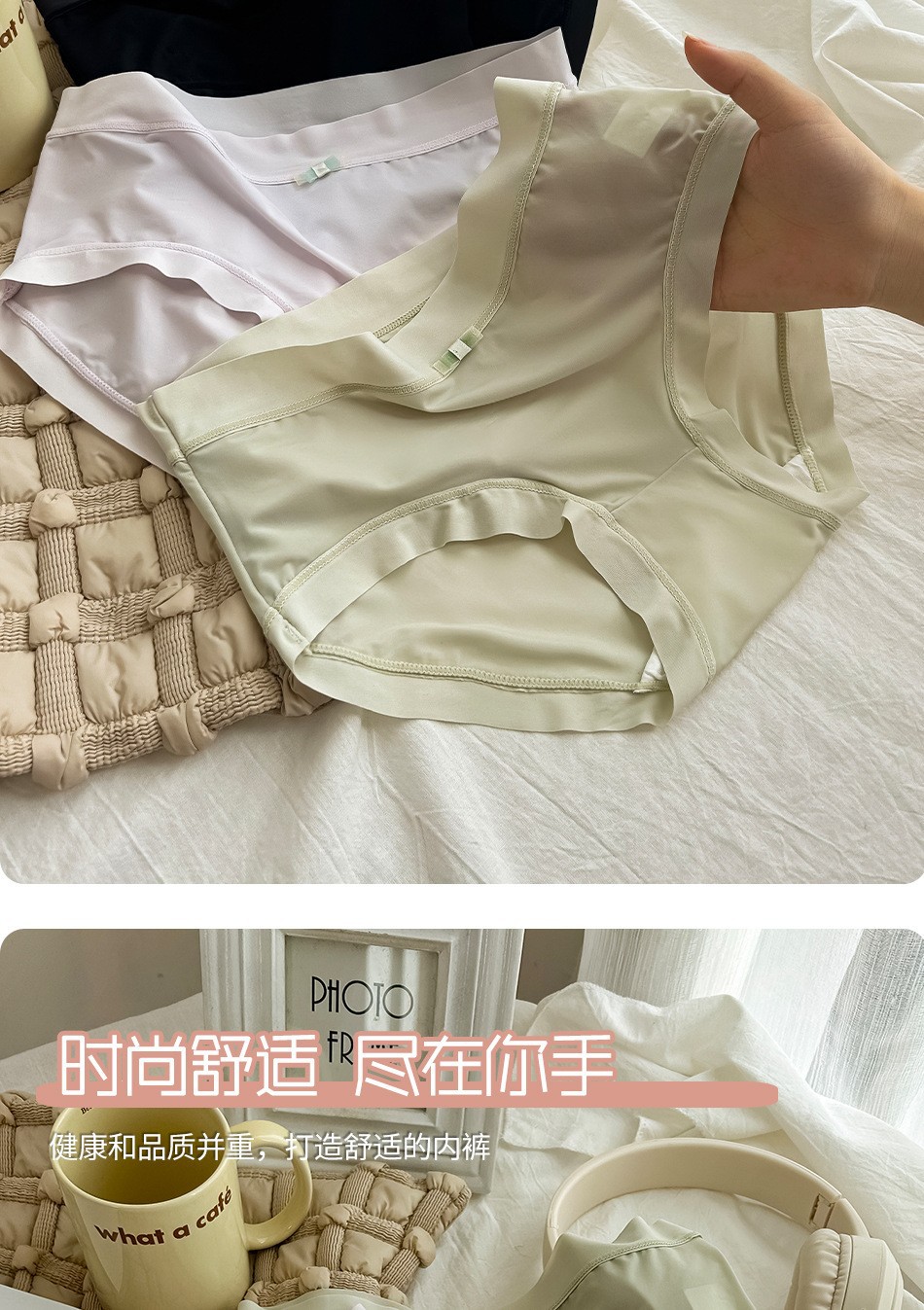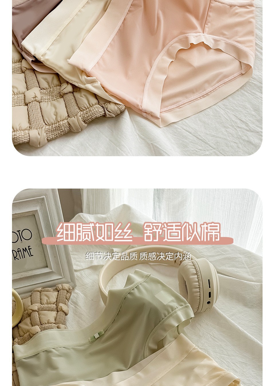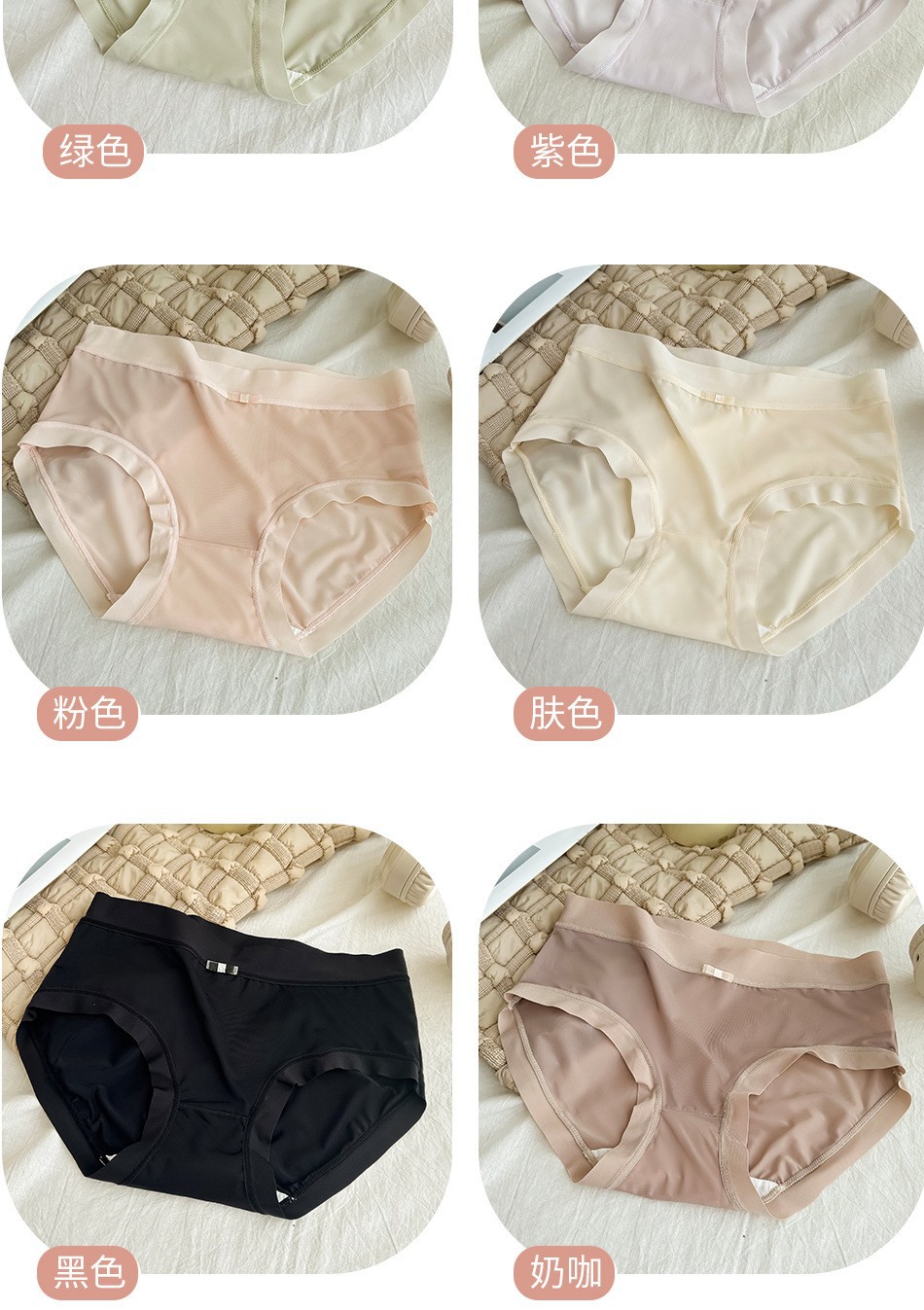 일본 달콤한 속옷 여름 얇은 얼음 실크 원활한 속옷 여성 중간 허리 통기성 섹시한 소녀 레이스 팬티스토어 가기