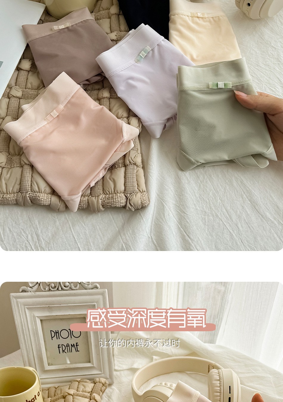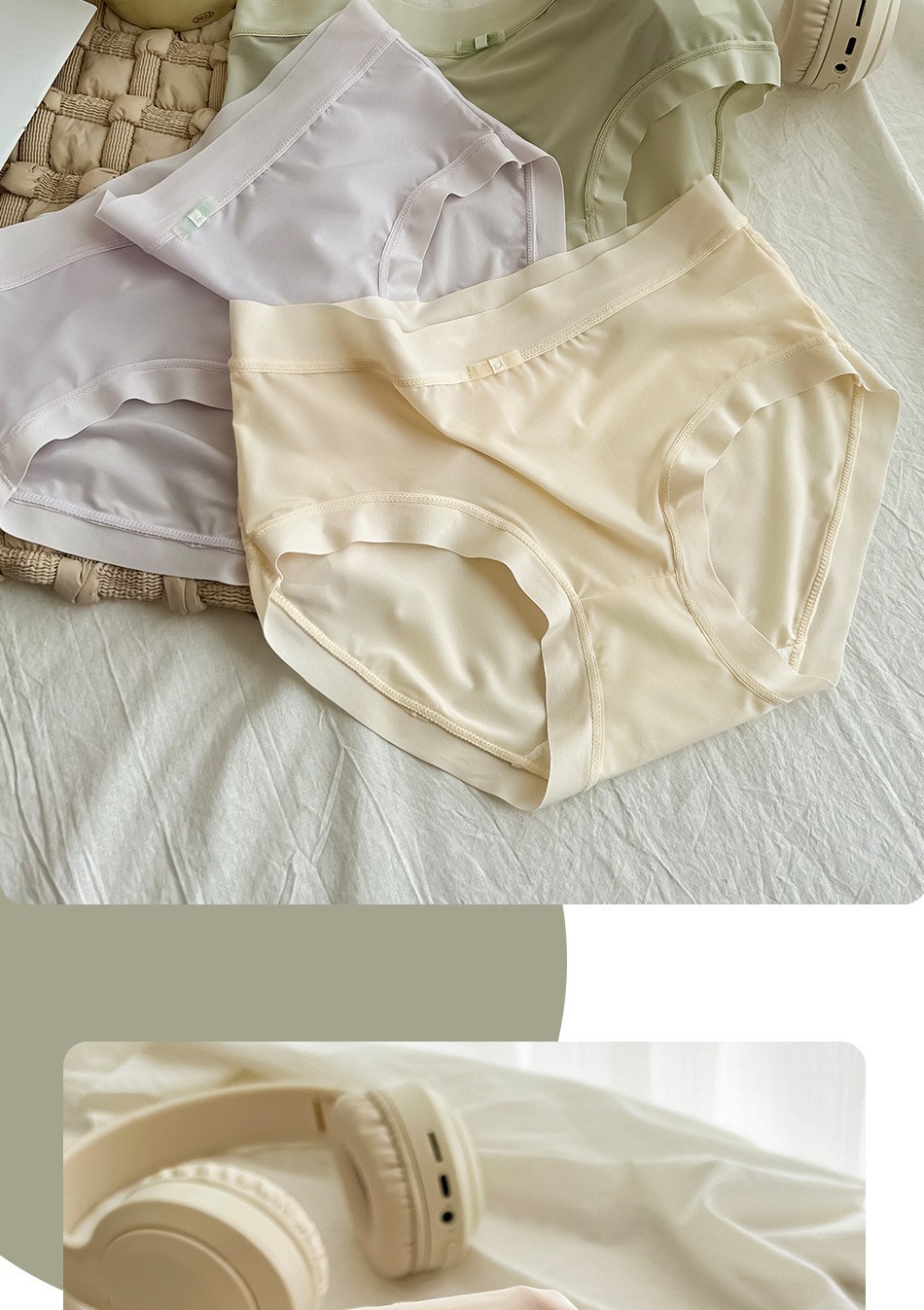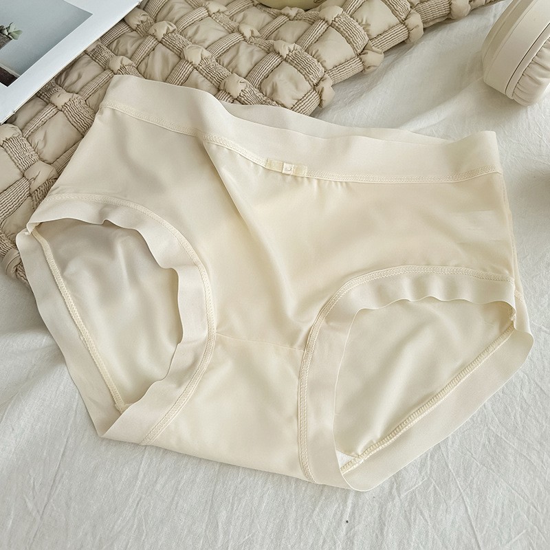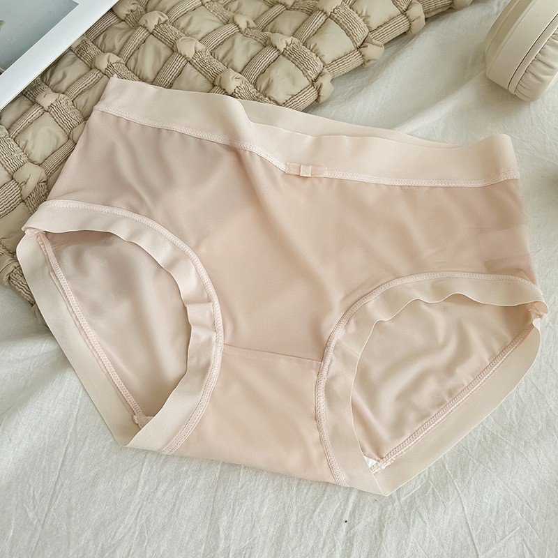 일본 달콤한 속옷 여름 얇은 얼음 실크 원활한 속옷 여성 중간 허리 통기성 섹시한 소녀 레이스 팬티