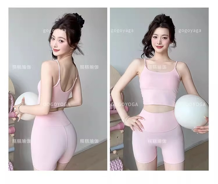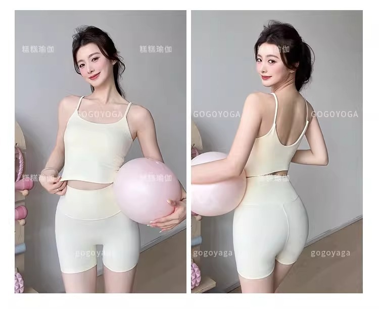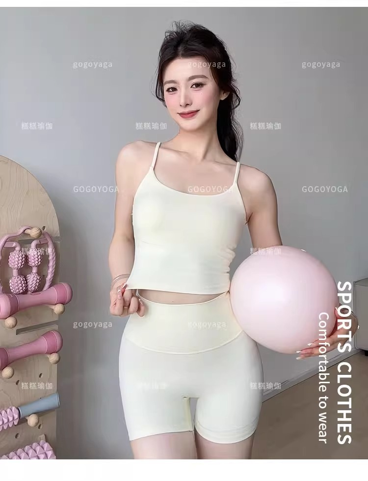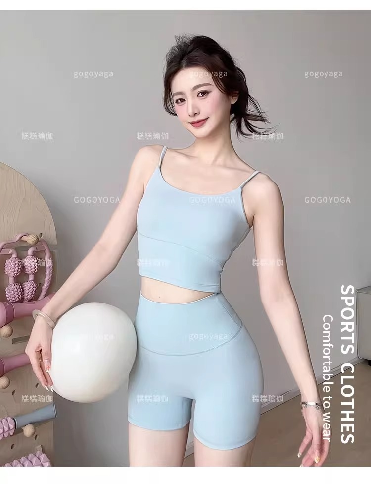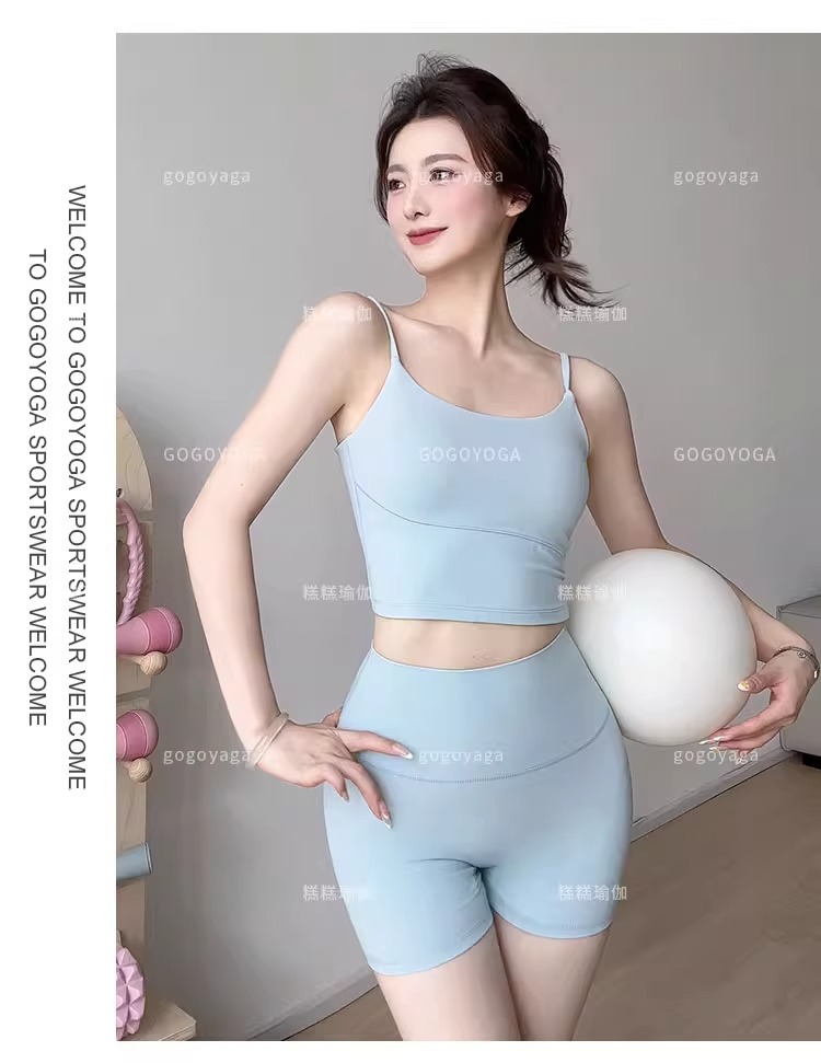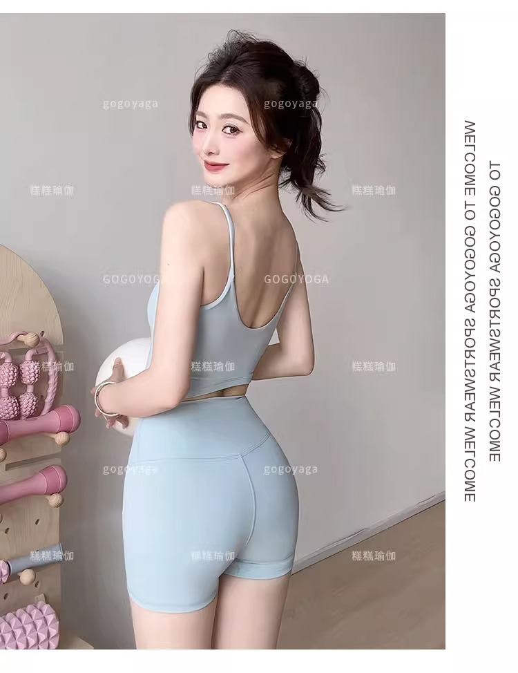 여성을 위한 새로운 스타일의 요가복, 누드 느낌, 고강도 충격 방지 푸쉬업 조끼, 고탄성, 하이웨이스트, 엉덩이 리프팅 요가 반바지, 여름스토어 가기