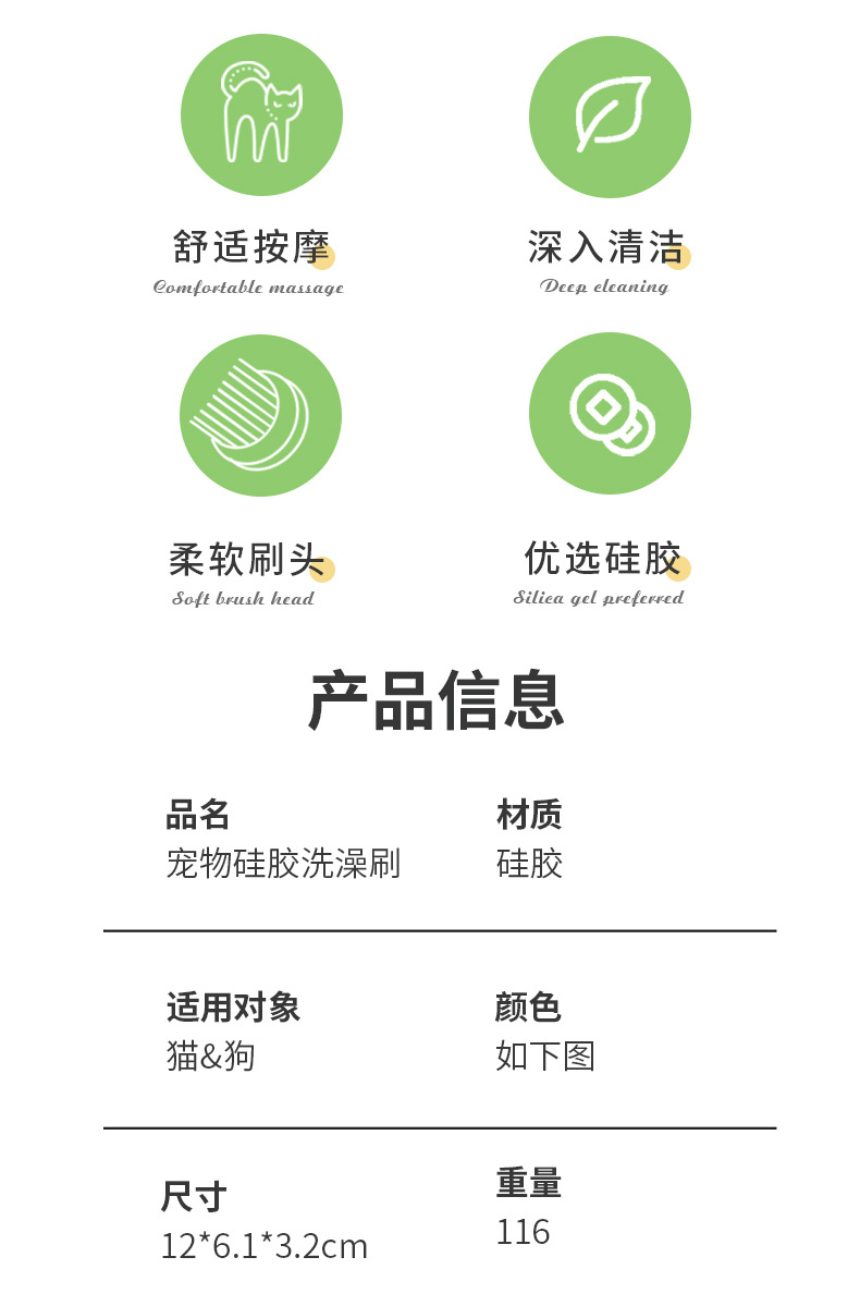 실리콘 애완동물 목욕 브러시, 특수 개 목욕 마사지 브러시, 청소 도구, 고양이 및 개 용품, 고양이 목욕 브러시스토어 가기