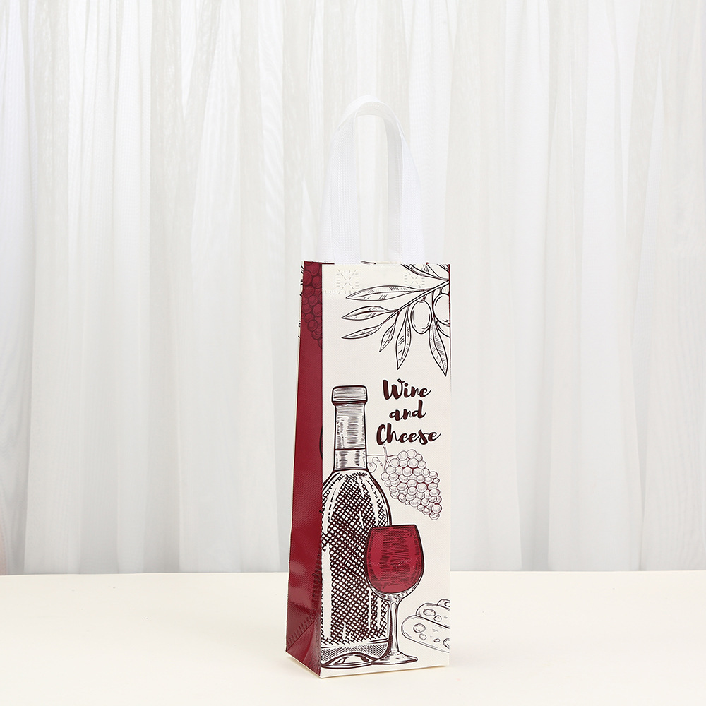 베이지 레드 와인 가방 창조적 인 간단한 부직포 적층 선물 가방 비즈니스 친척과 친구 선물 와인 병 포장 가방
