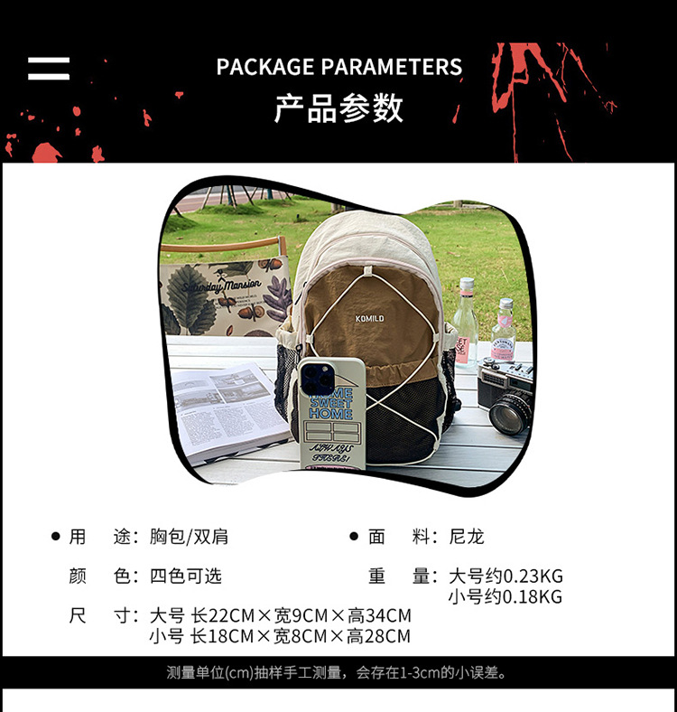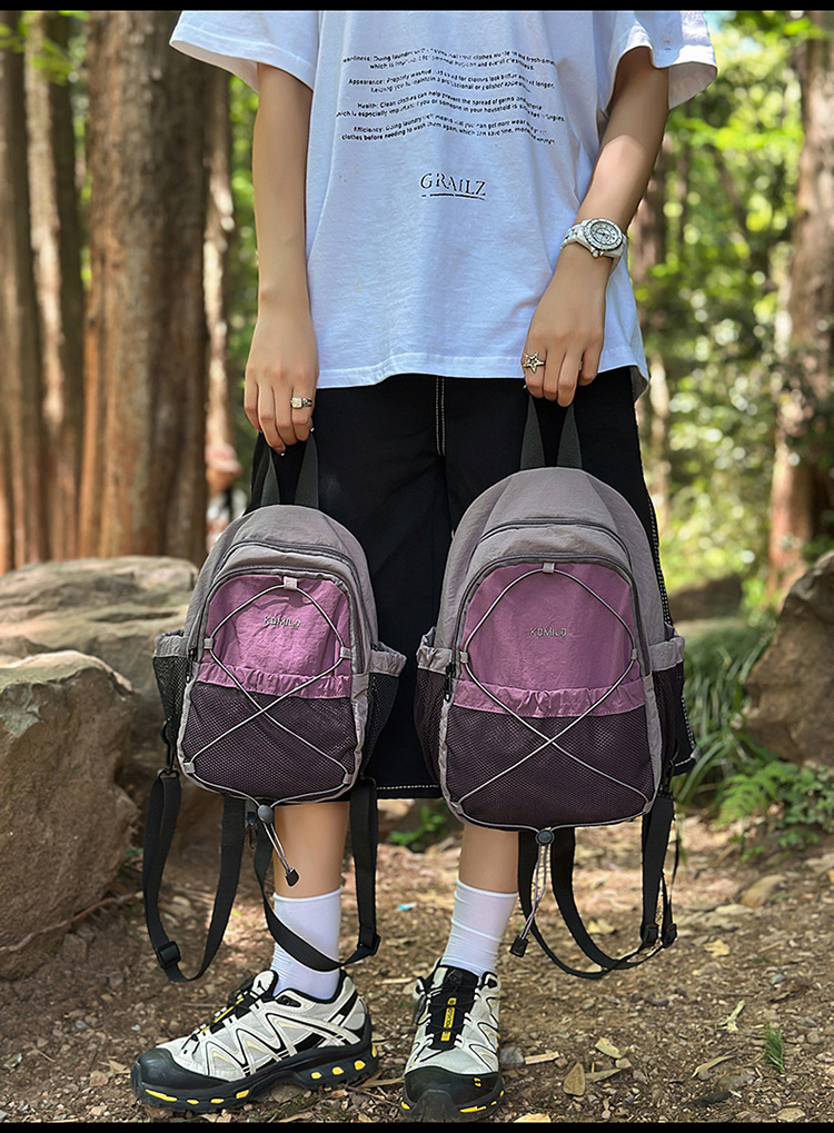 산 스타일 새로운 스타일의 고급스럽고 신선한 대비 색상 스플 라이스 배낭 여성 경량 여행 등산 대용량 배낭