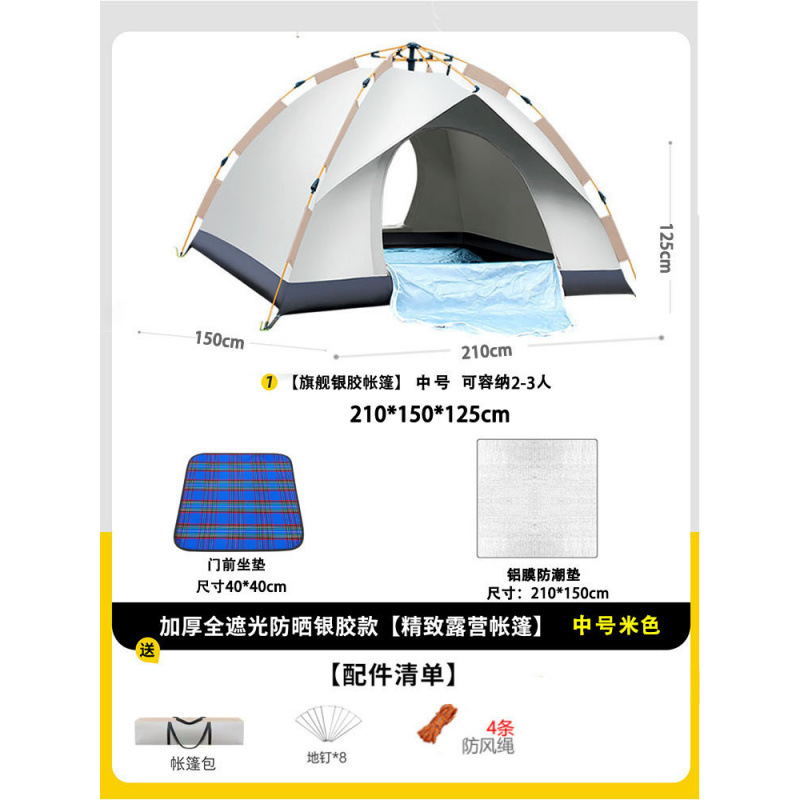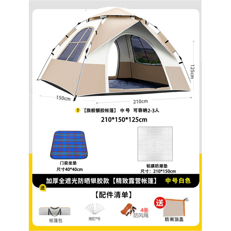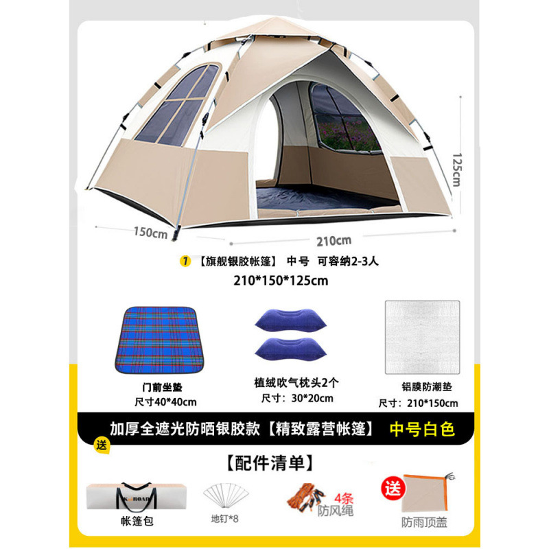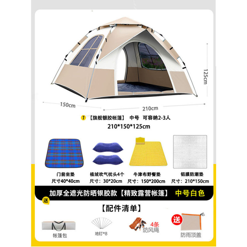 • 텐트+피크닉매트+베개*2+방습알루미늄매트 [2인, 문 1개, 창문 1개] 베이지